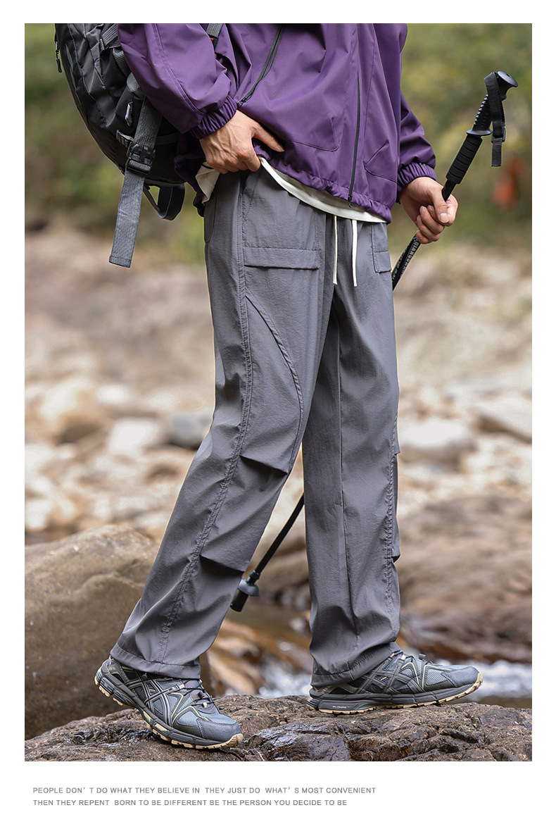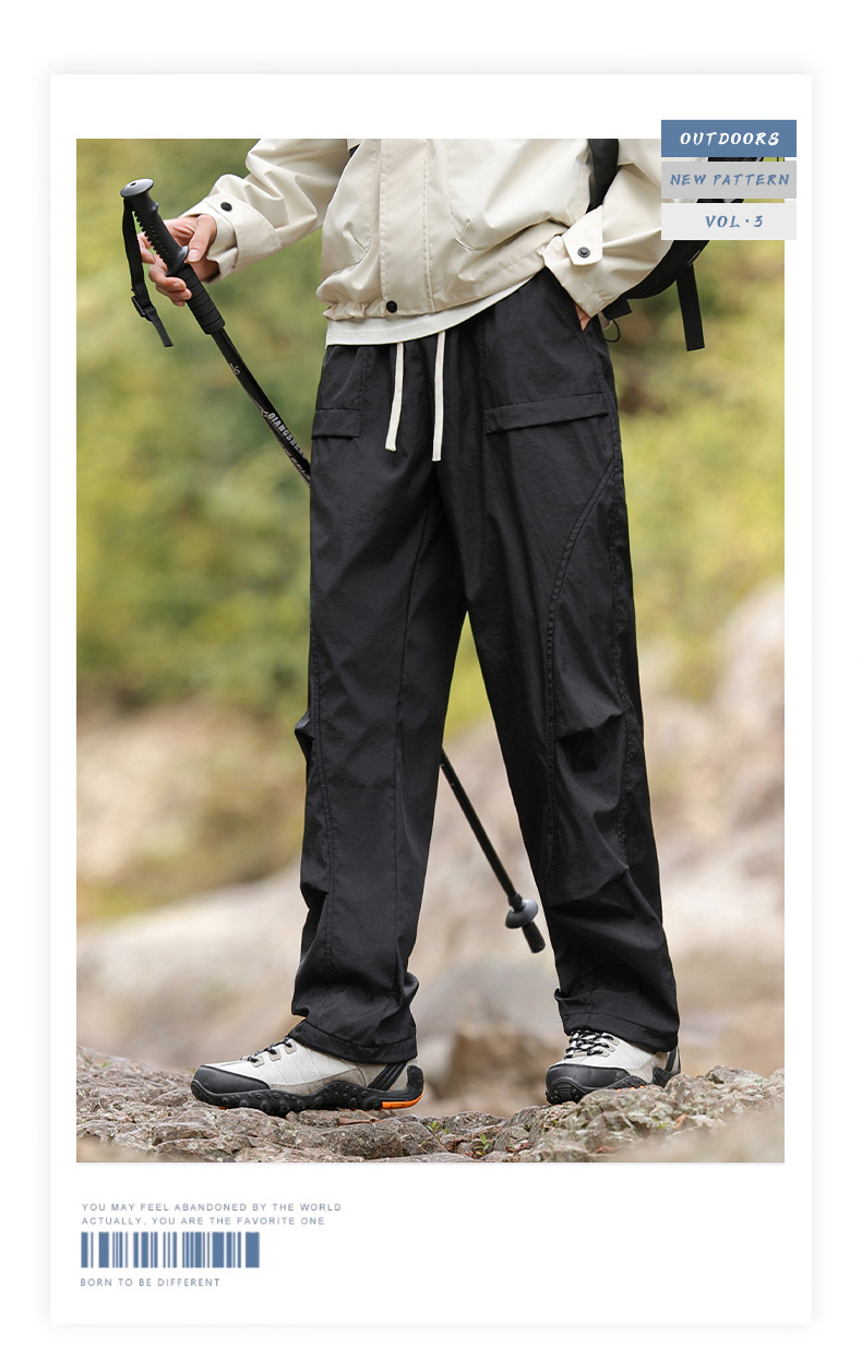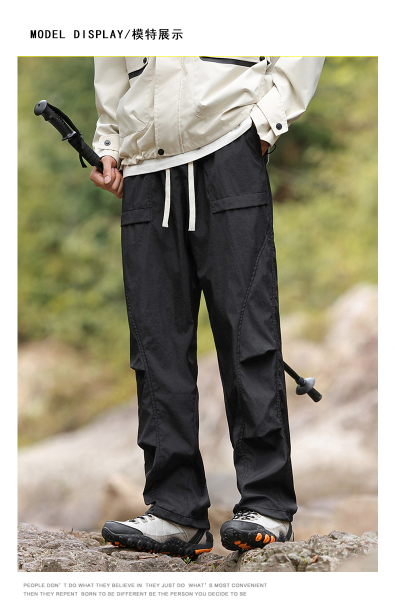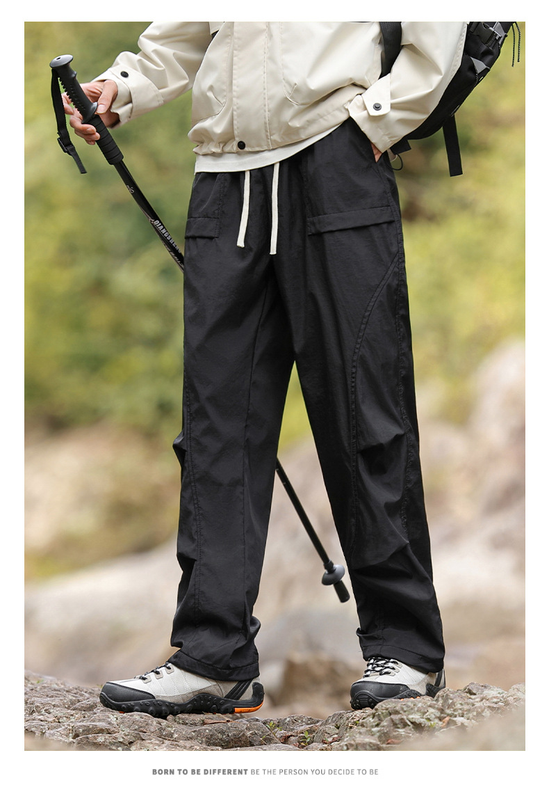 봄과 가을 얇은 미국 스타일 작업 바지 남성용 느슨한 넓은 다리 낙하산 바지 바지 스포츠 캐주얼 바지 커플 스트레이트스토어 가기