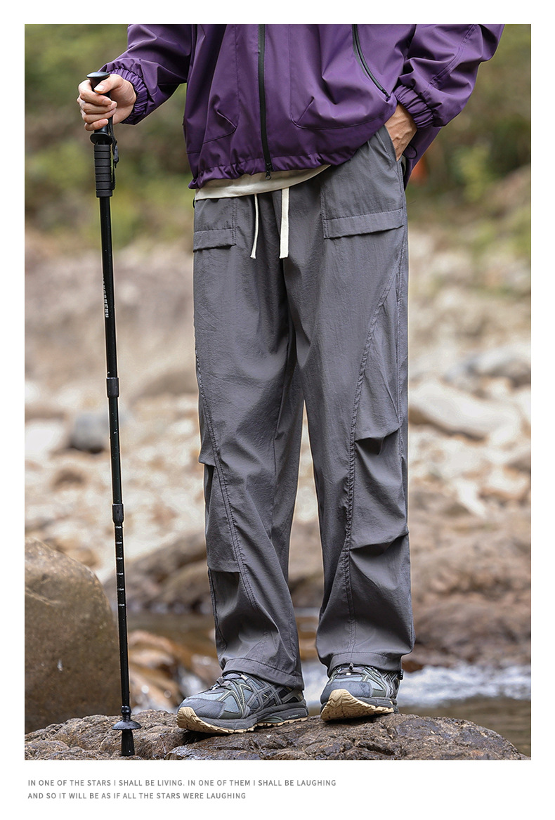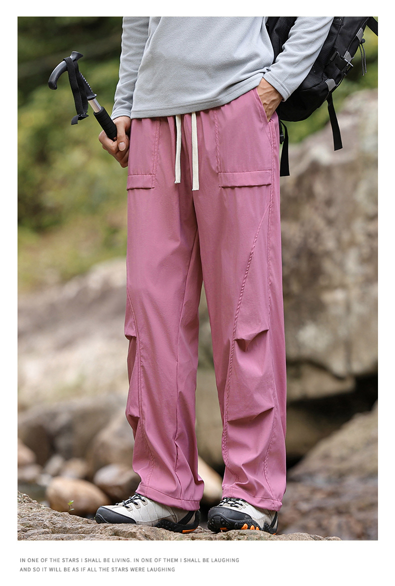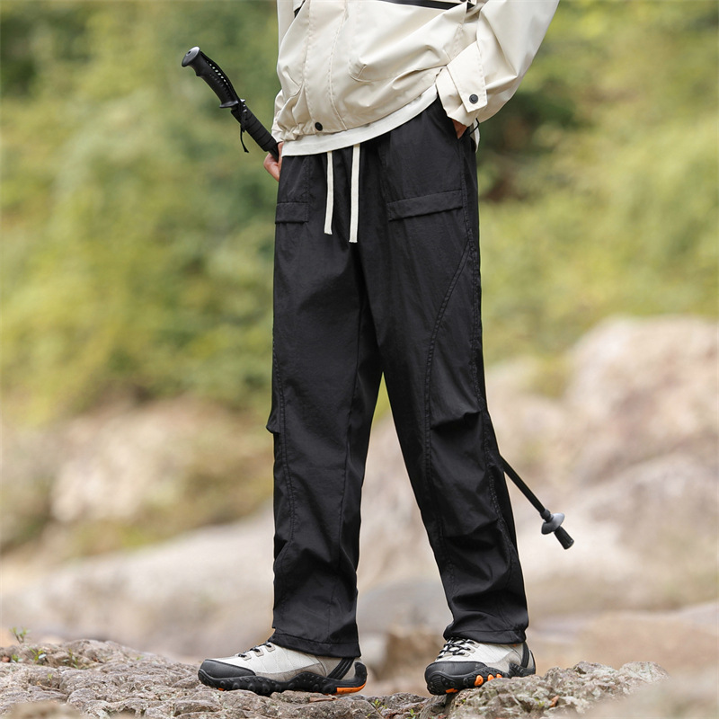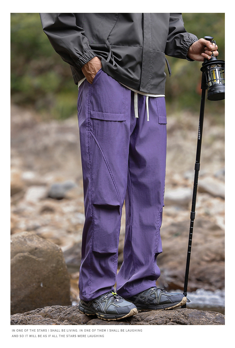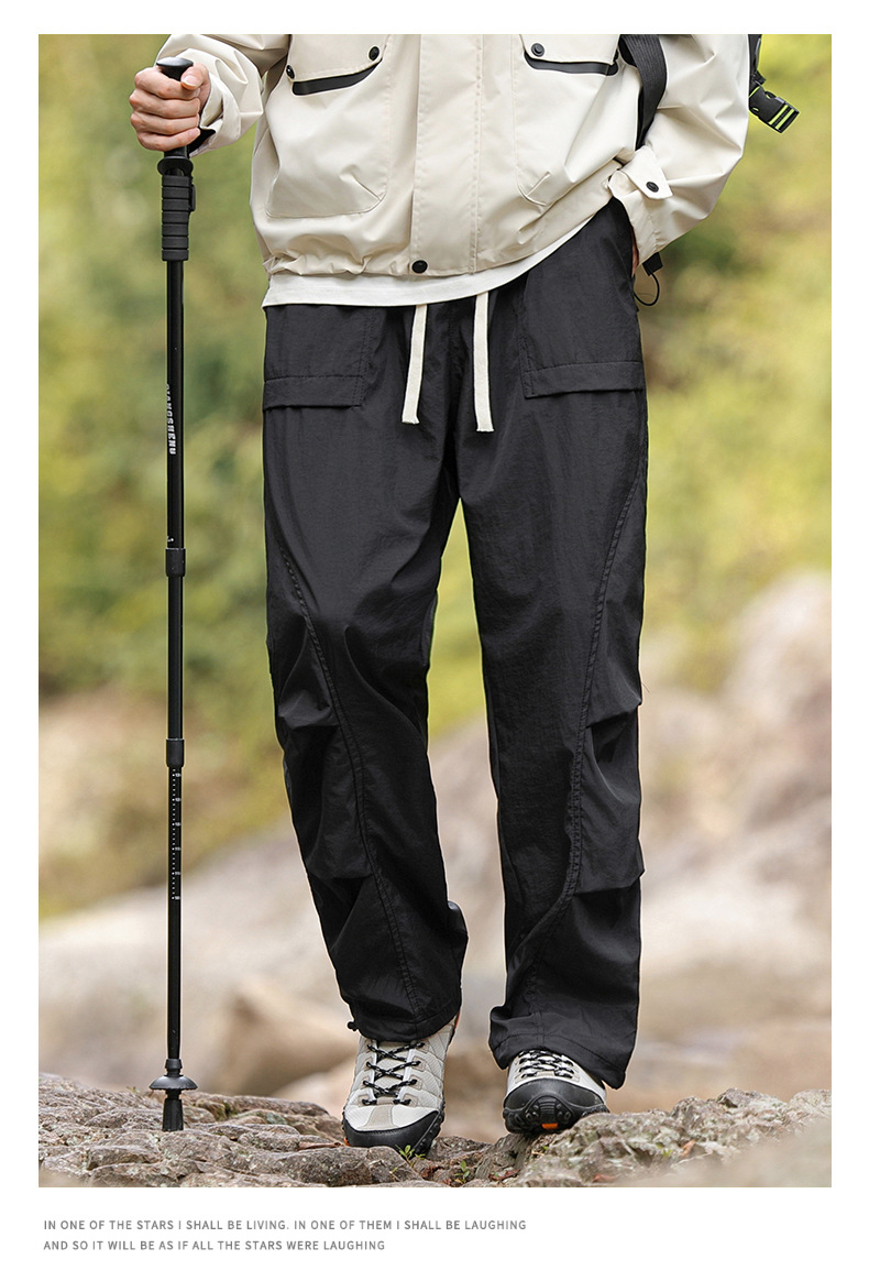 봄과 가을 얇은 미국 스타일 작업 바지 남성용 느슨한 넓은 다리 낙하산 바지 바지 스포츠 캐주얼 바지 커플 스트레이트스토어 가기