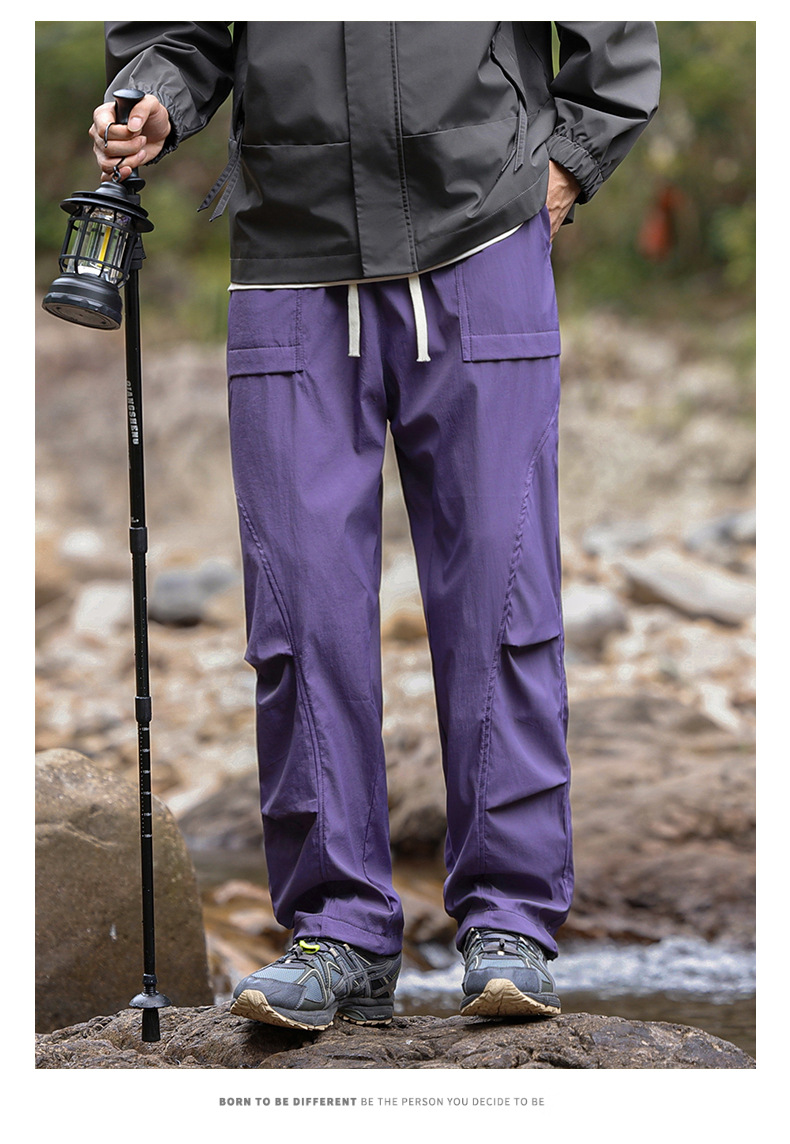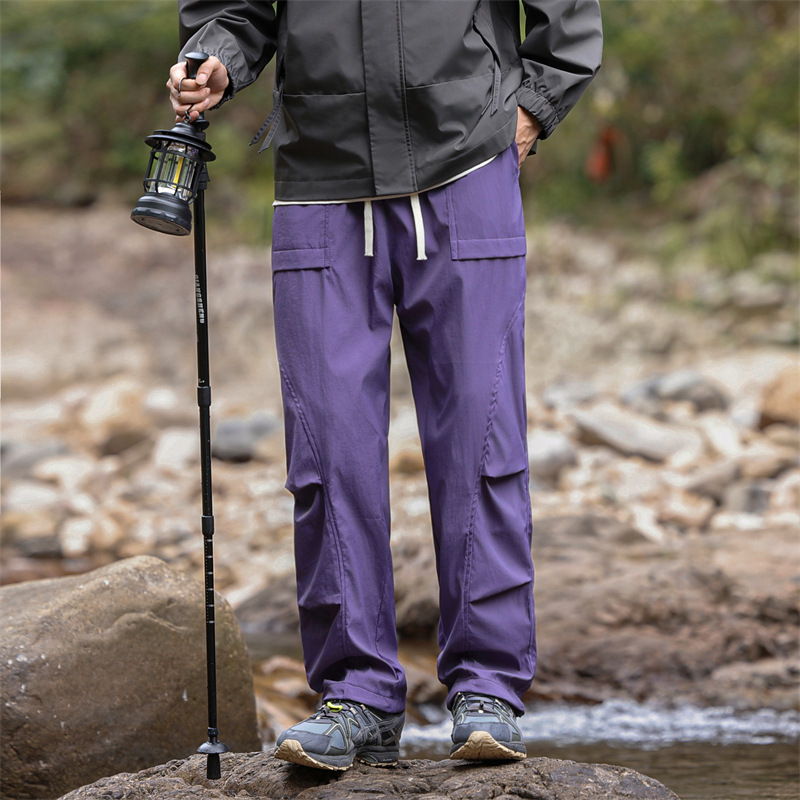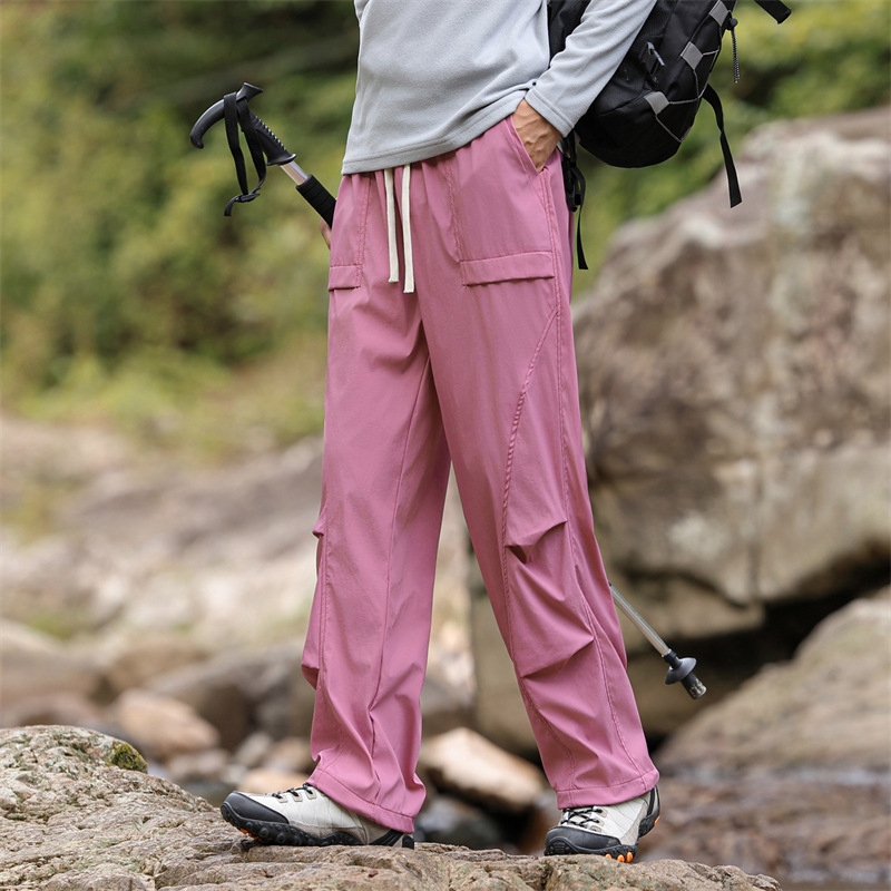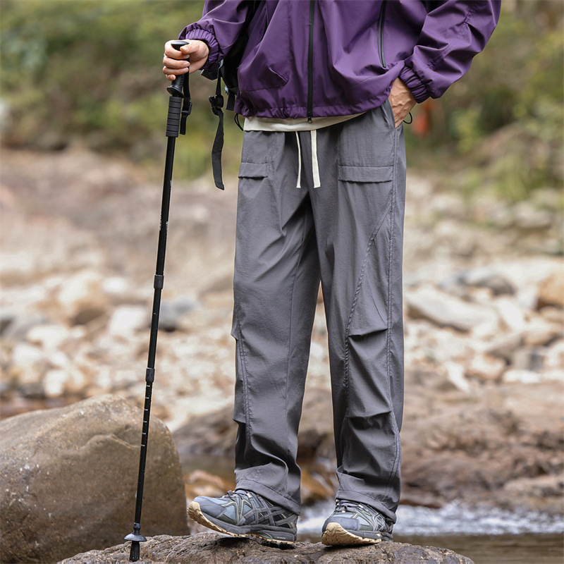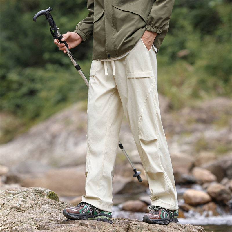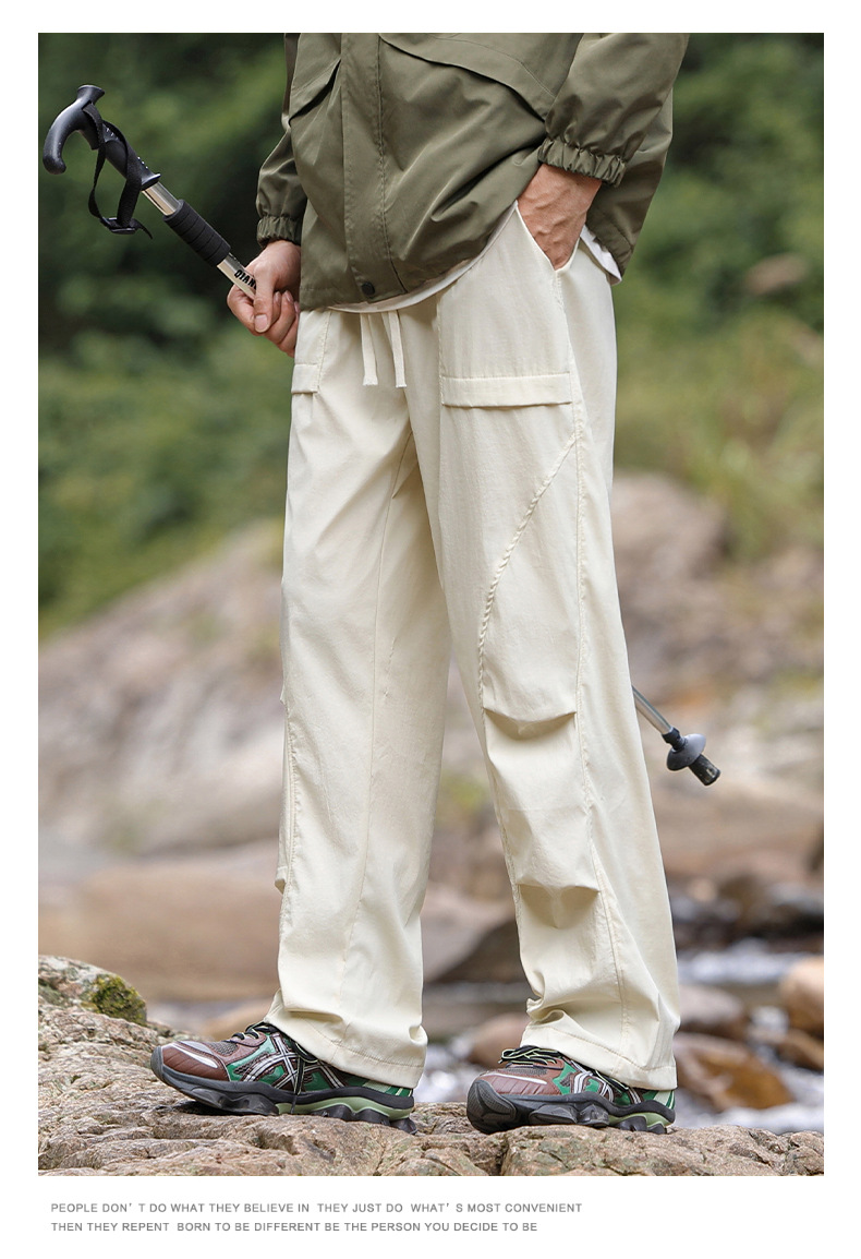 봄과 가을 얇은 미국 스타일 작업 바지 남성용 느슨한 넓은 다리 낙하산 바지 바지 스포츠 캐주얼 바지 커플 스트레이트스토어 가기