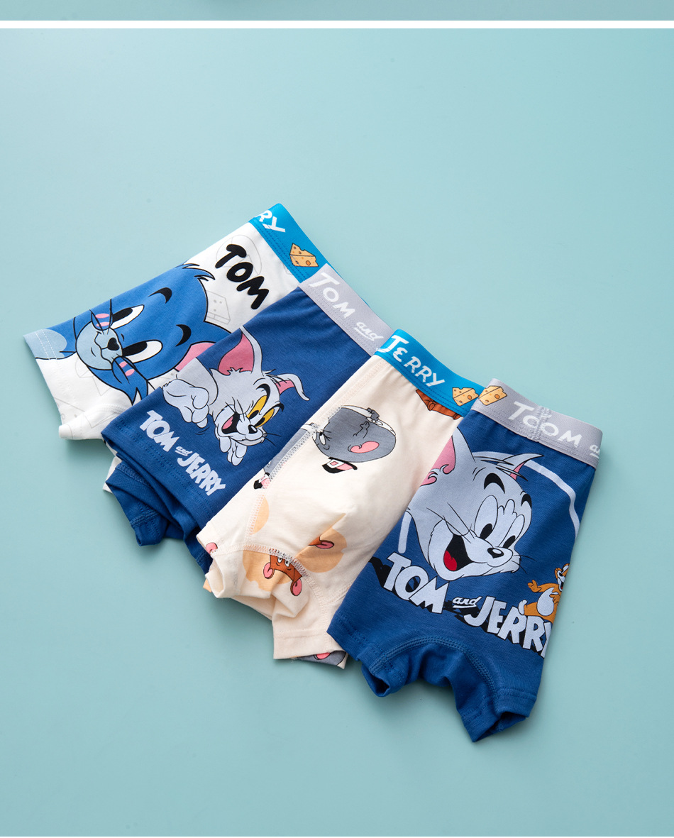 어린이 속옷 면화 소년 중 · 대형 어린이 4 코너 반바지 소년 고양이 · 마우스 만화 코튼 박서 반바지 키즈