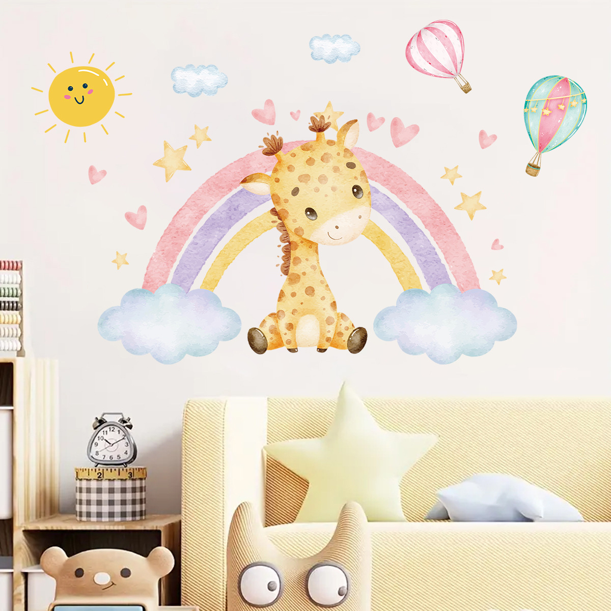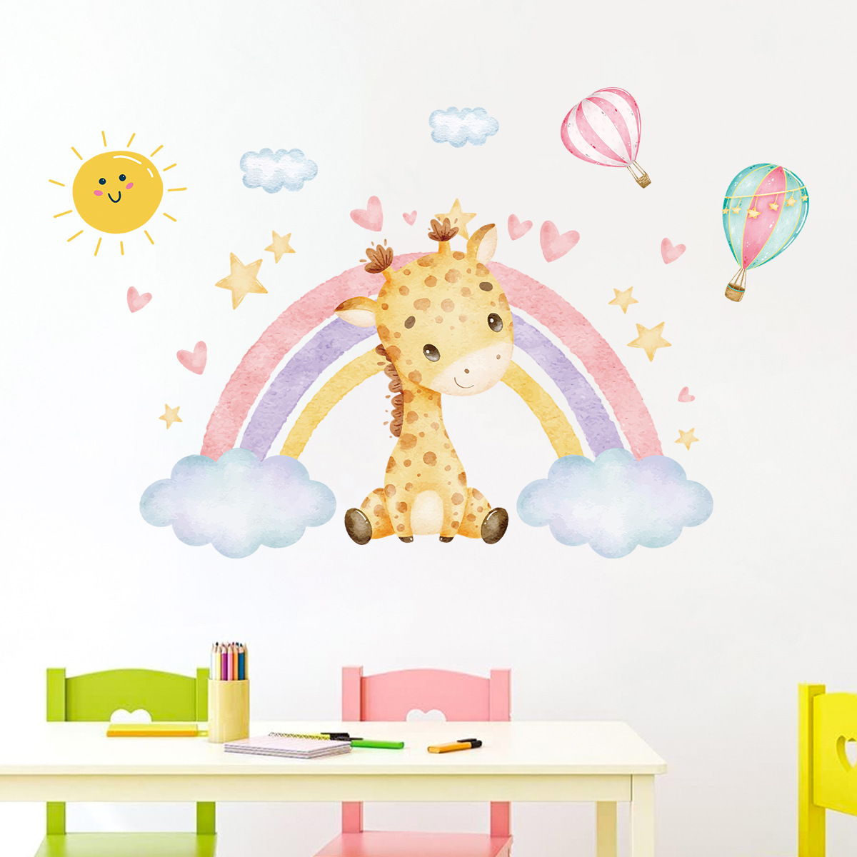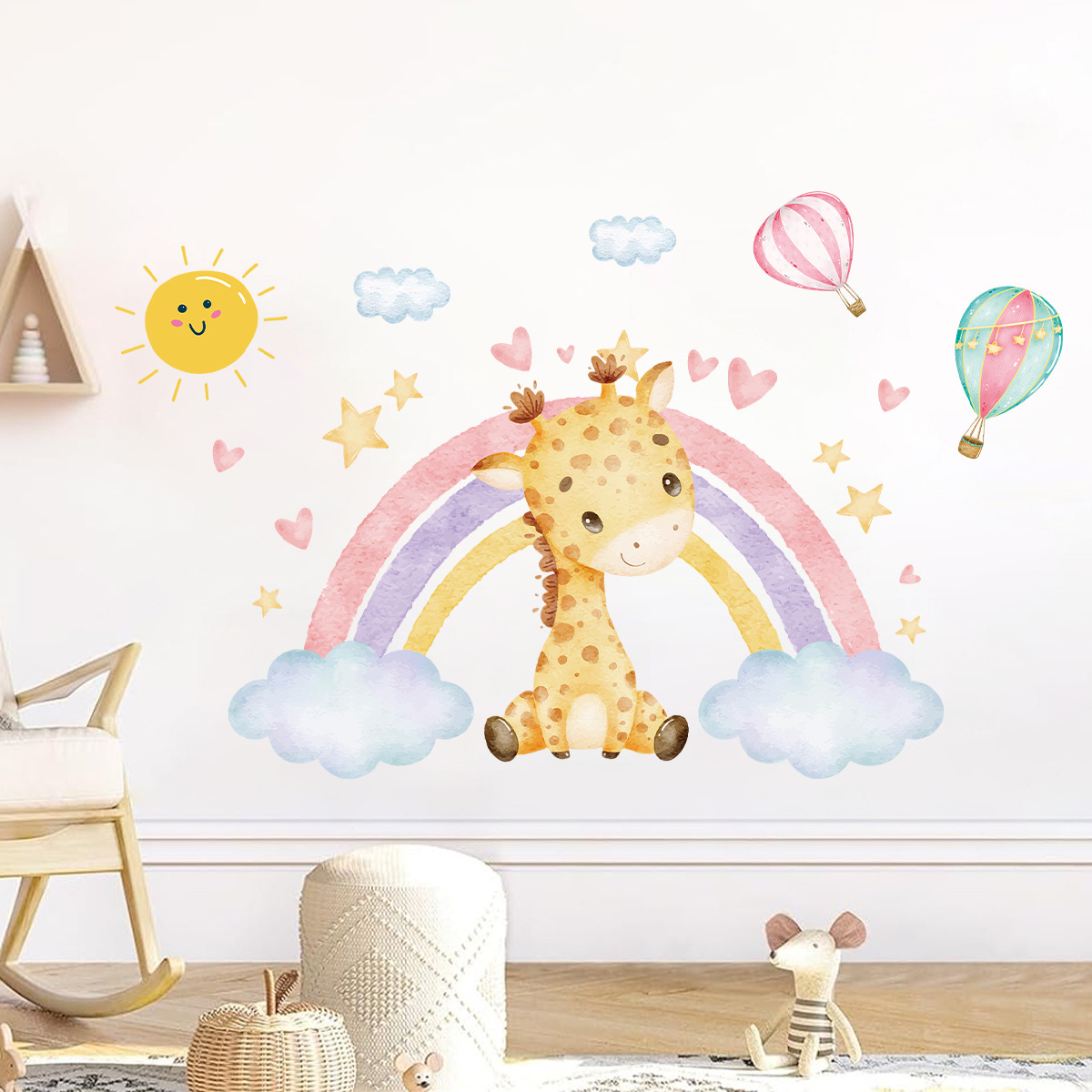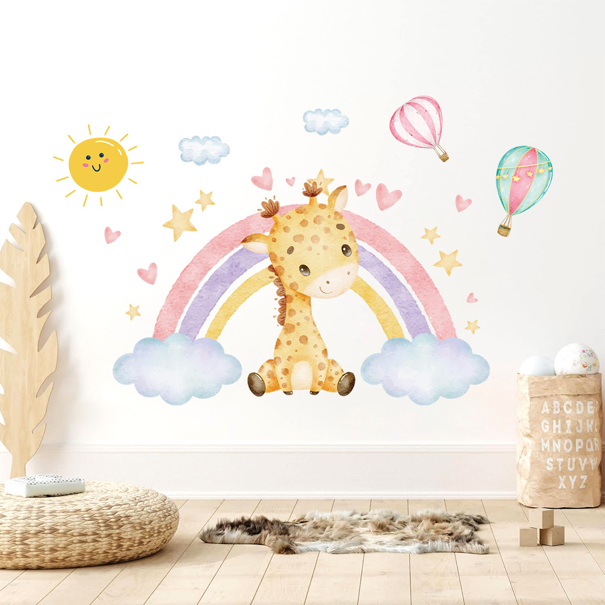 만화 무지개 태양 귀여운 기린 자기 접착 벽 스티커 어린이 방 배경 벽 장식 스티커 BR0818H