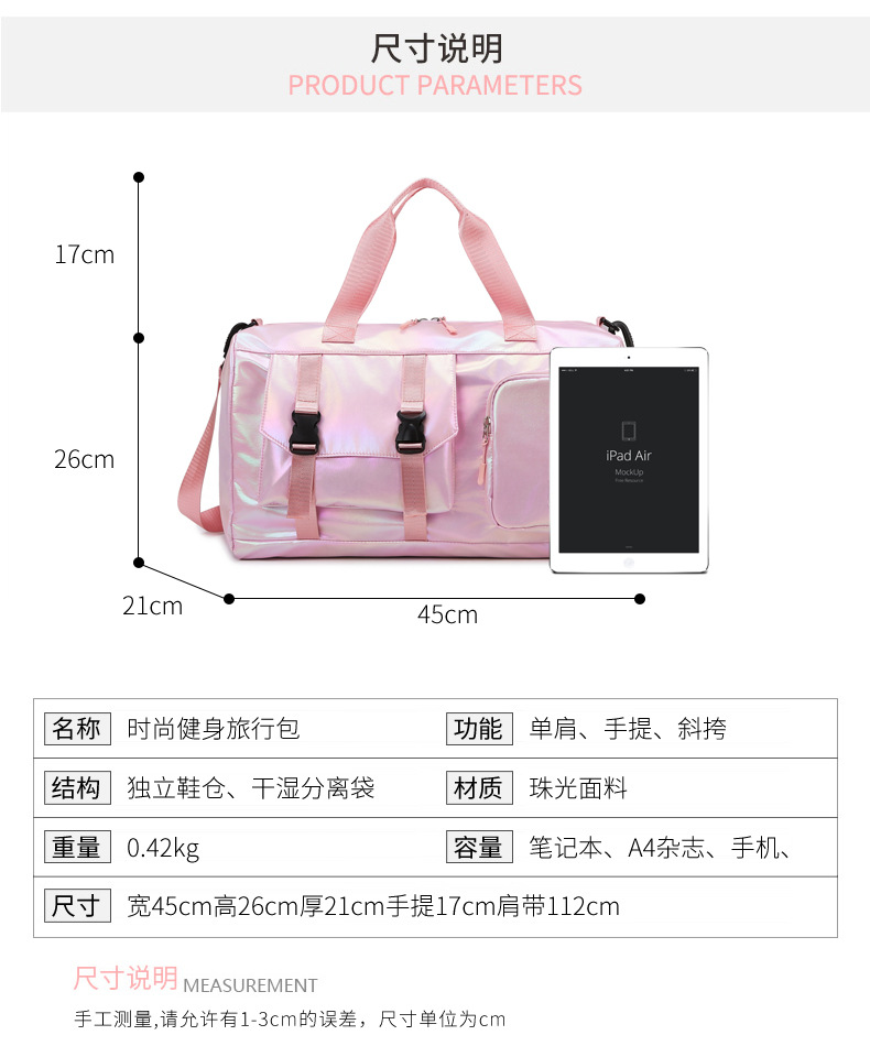 다채로운 진주 빛 피트니스 가방 대용량 스포츠 수영 훈련 가방 건조하고 젖은 분리 된 휴대용 도매 여행 가방