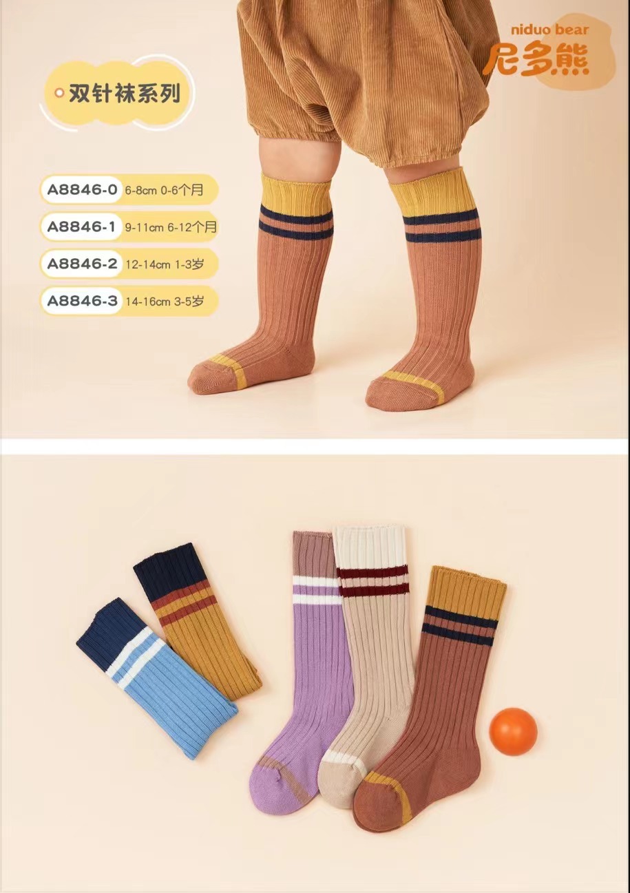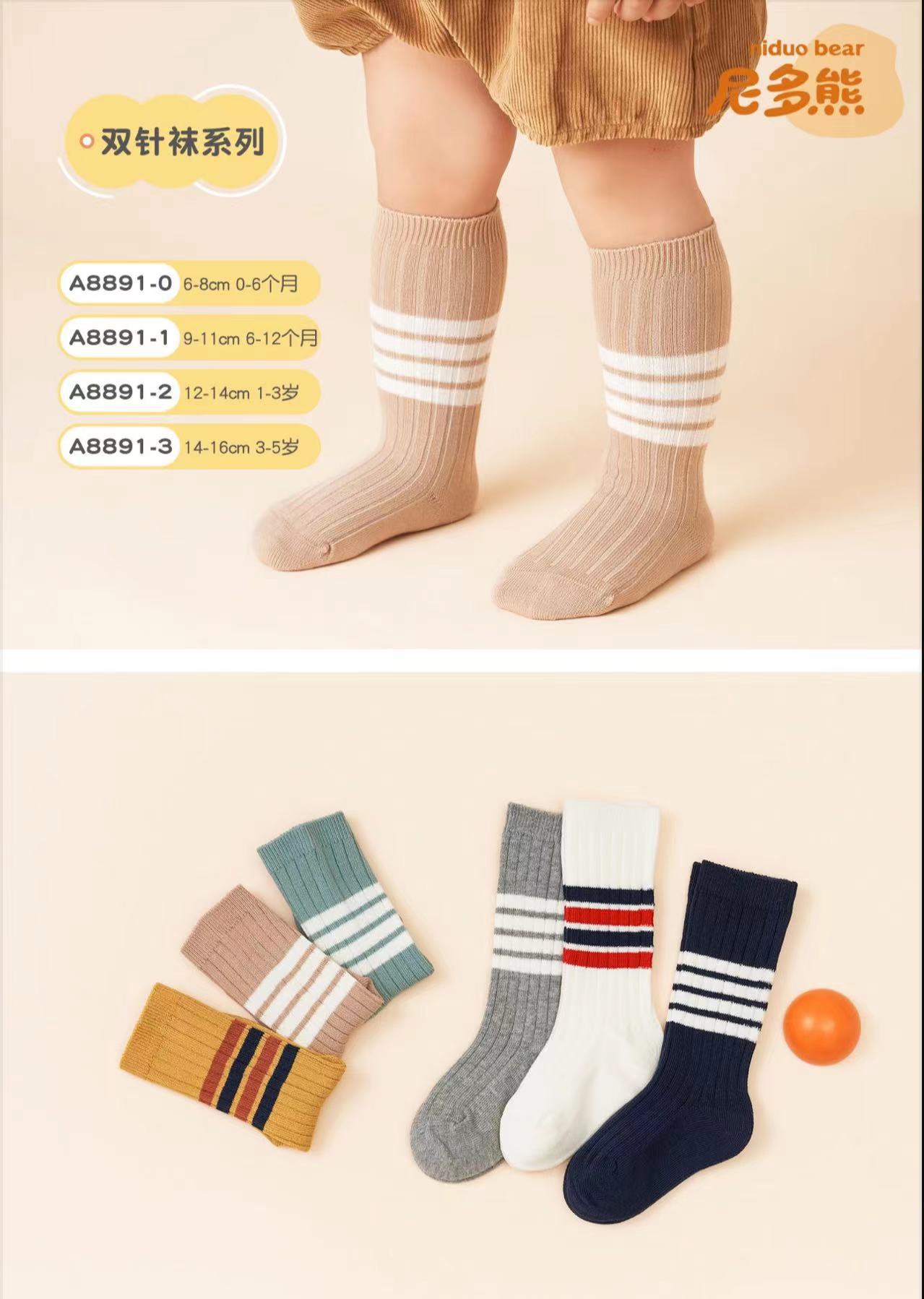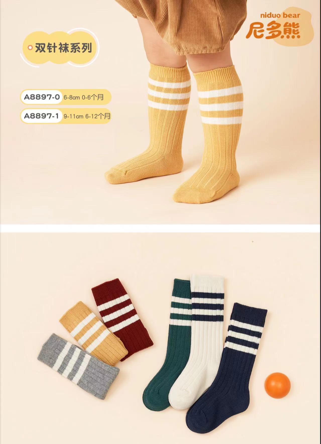 Nido bear 2024 가을과 겨울 더블 바늘 양말 Nido 곰 소년과 소녀 아기 양말 긴 튜브 다리가 아닌 학업 스타일 12 쌍