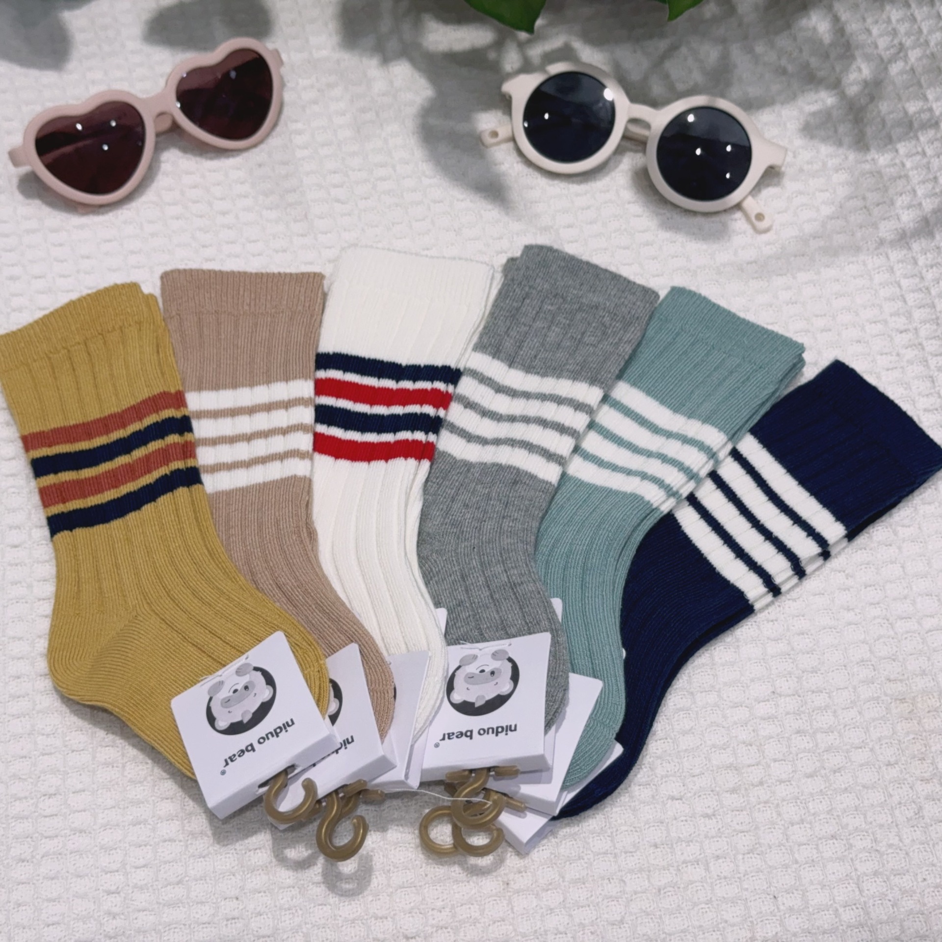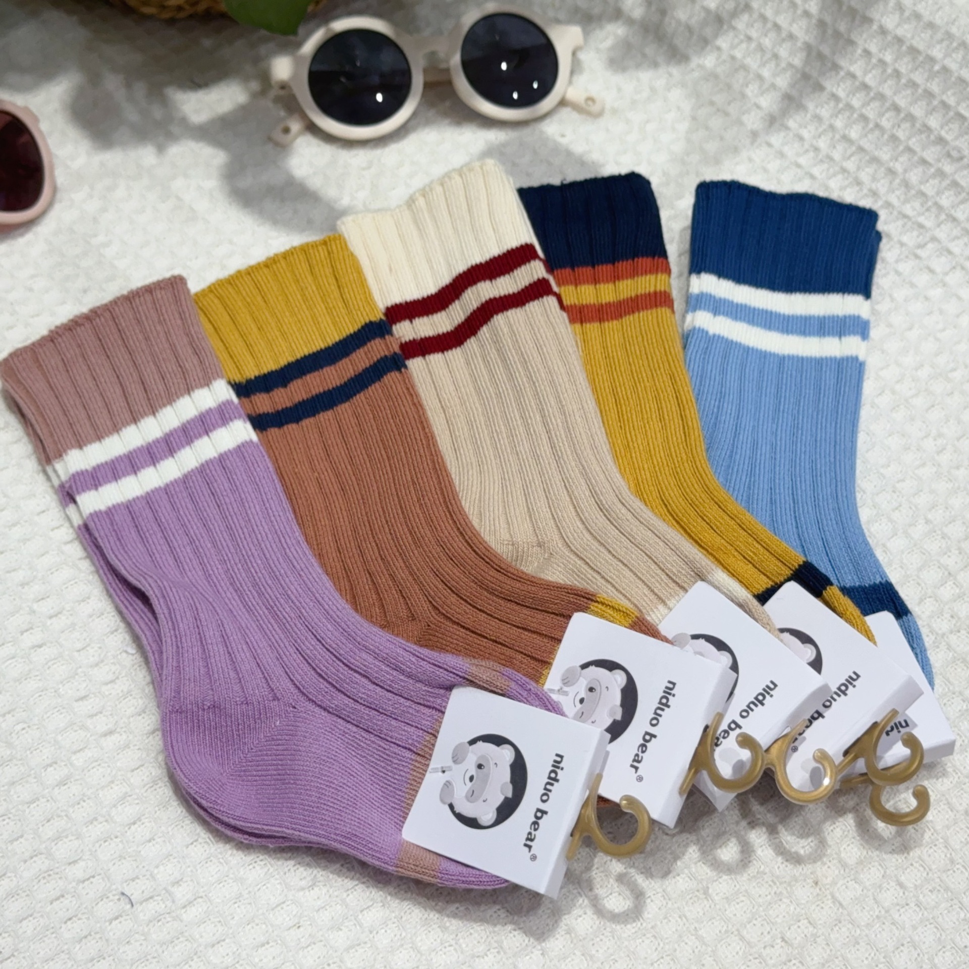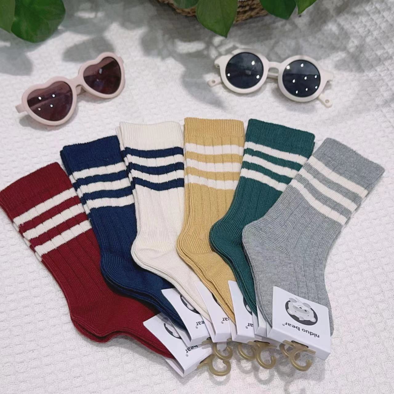 Nido bear 2024 가을과 겨울 더블 바늘 양말 Nido 곰 소년과 소녀 아기 양말 긴 튜브 다리가 아닌 학업 스타일 12 쌍
