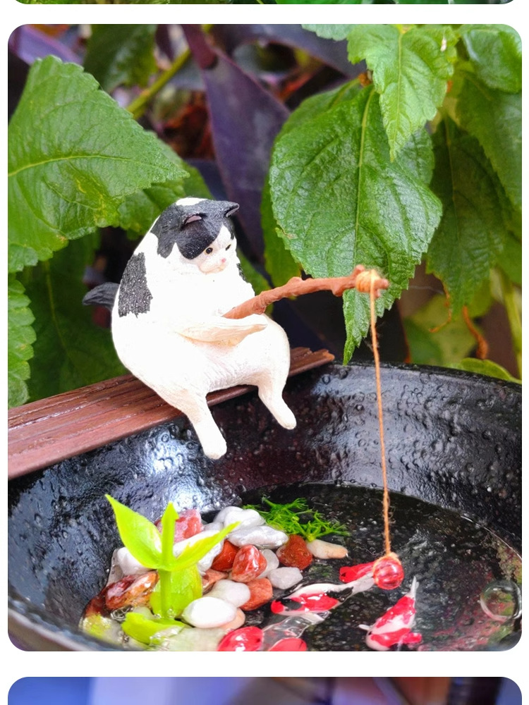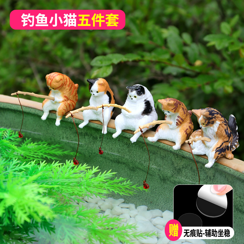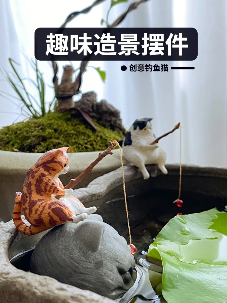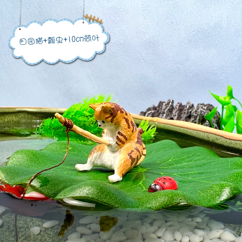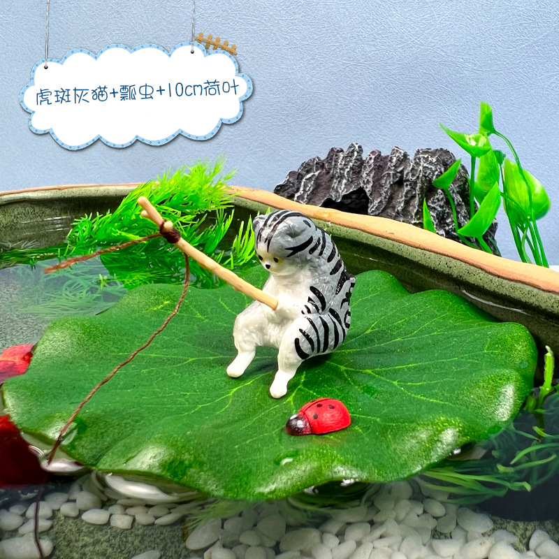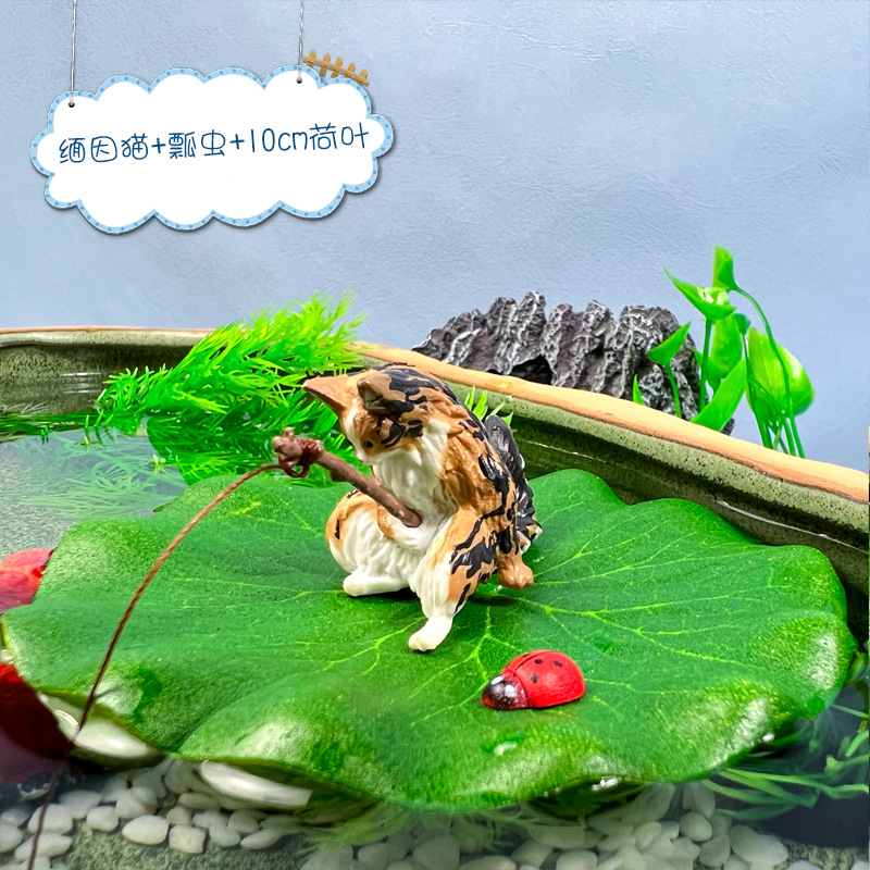 물고기 탱크 낚시 고양이 창조적 인 조경 패키지 한 잎 연꽃 잎 고양이 장식품 데스크탑 미니 장식 마이크로 풍경스토어 가기