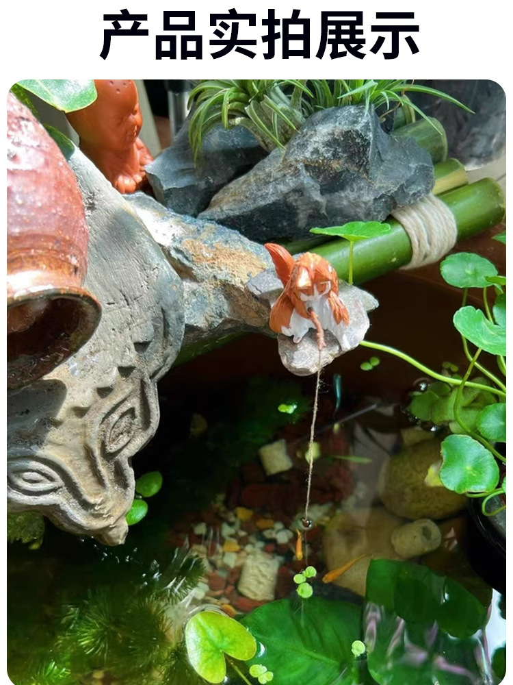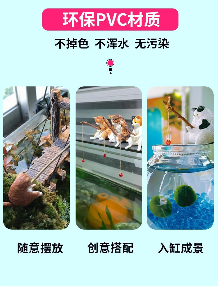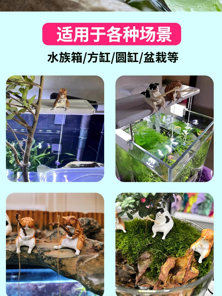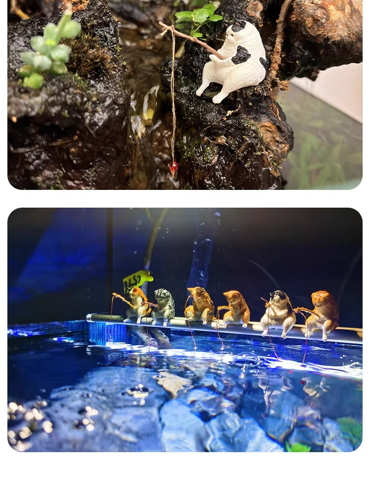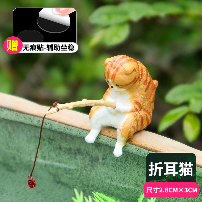 물고기 탱크 낚시 고양이 창조적 인 조경 패키지 한 잎 연꽃 잎 고양이 장식품 데스크탑 미니 장식 마이크로 풍경스토어 가기