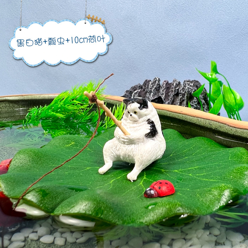 물고기 탱크 낚시 고양이 창조적 인 조경 패키지 한 잎 연꽃 잎 고양이 장식품 데스크탑 미니 장식 마이크로 풍경