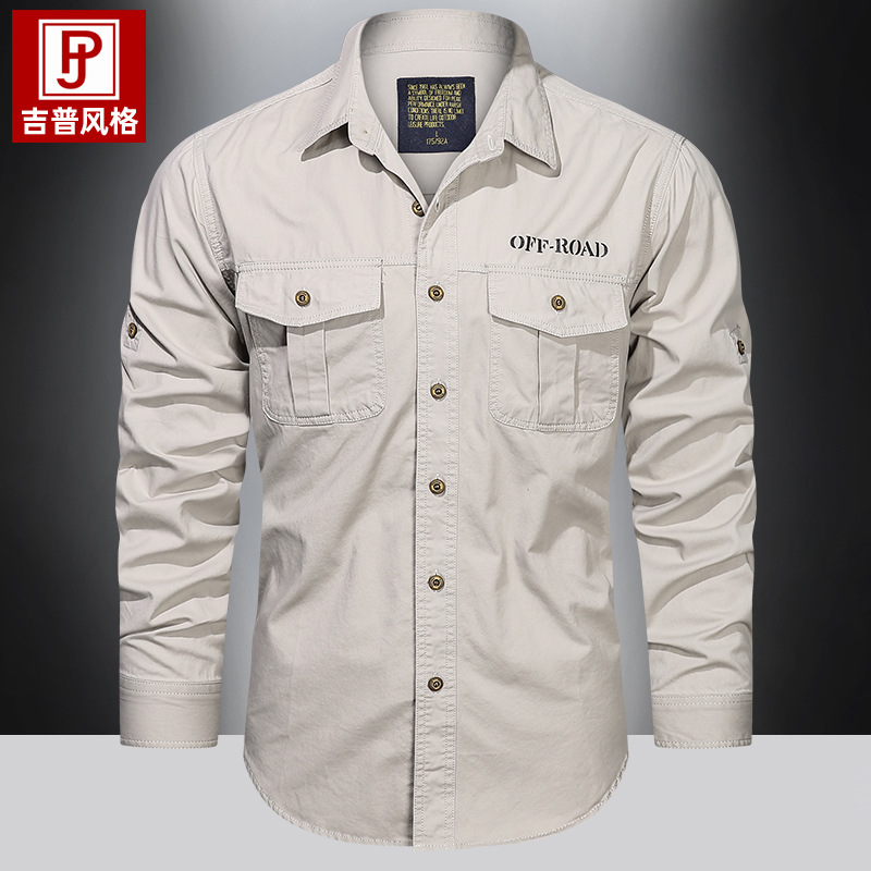 가을 새로운 멀티 포켓 군사 긴팔 셔츠 남자 플러스 사이즈 캐주얼 순면 작업 셔츠 젊고 중년 재킷스토어 가기