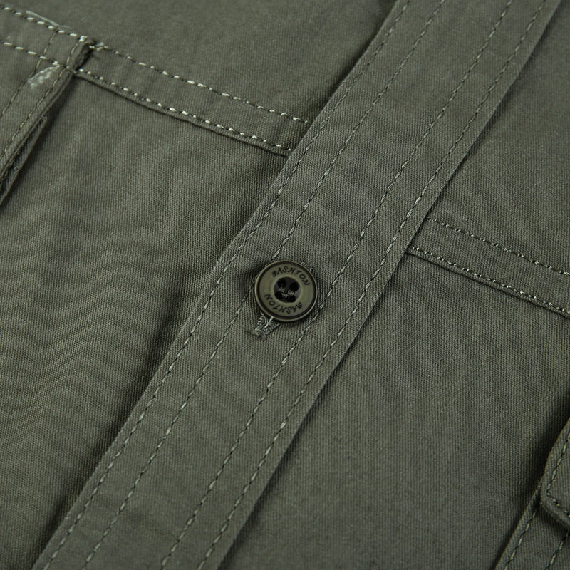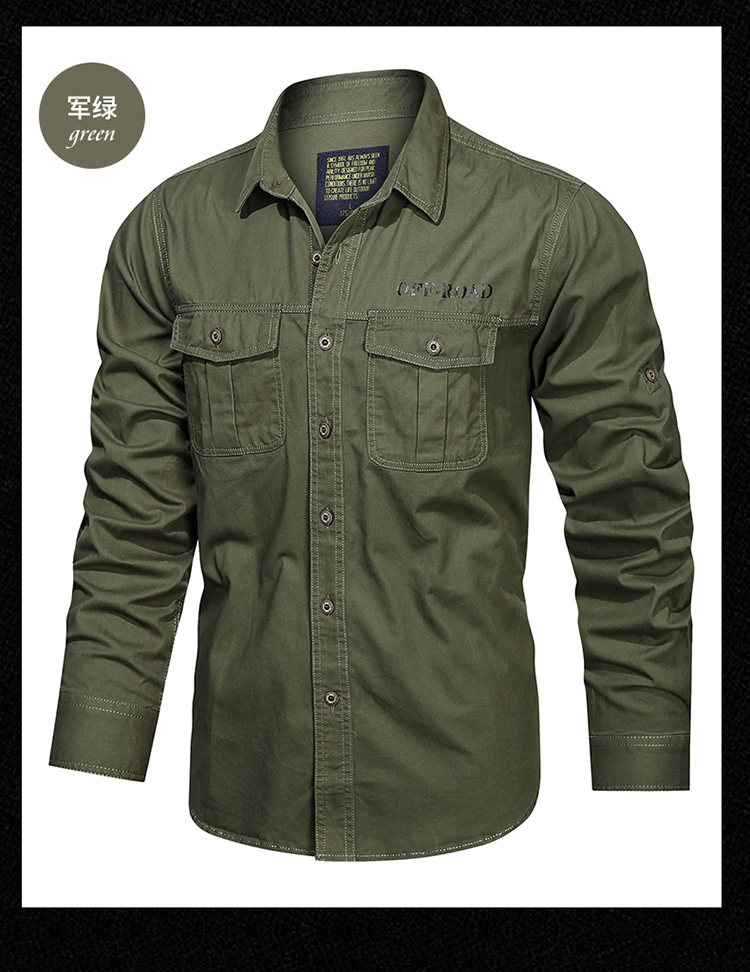 가을 새로운 멀티 포켓 군사 긴팔 셔츠 남자 플러스 사이즈 캐주얼 순면 작업 셔츠 젊고 중년 재킷