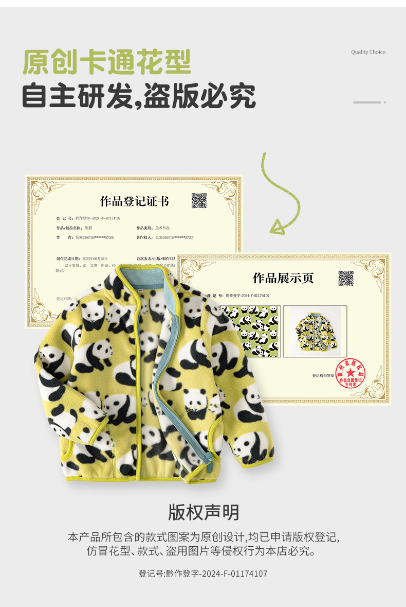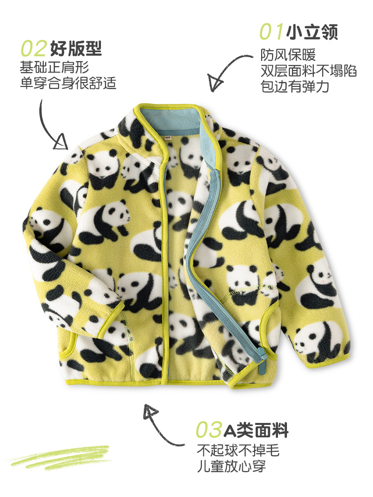 "팬더" 2024 가을 어린이 양털 재킷 만화 녹색 남자와 여자 아기 양털 재킷 wy1599스토어 가기