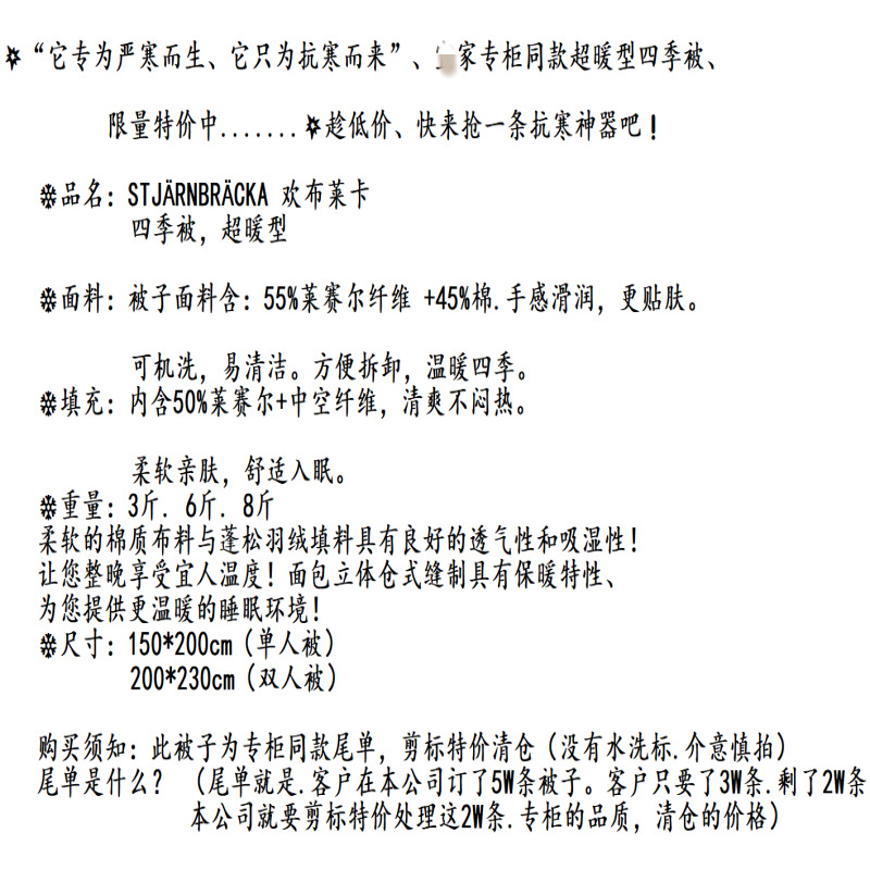 Yijia 같은 따뜻한 퀼트 코어 사계절 퀼트 겨울 두꺼운 봄과 가을 퀼트 싱글 더블 테일 제품 컷 라벨