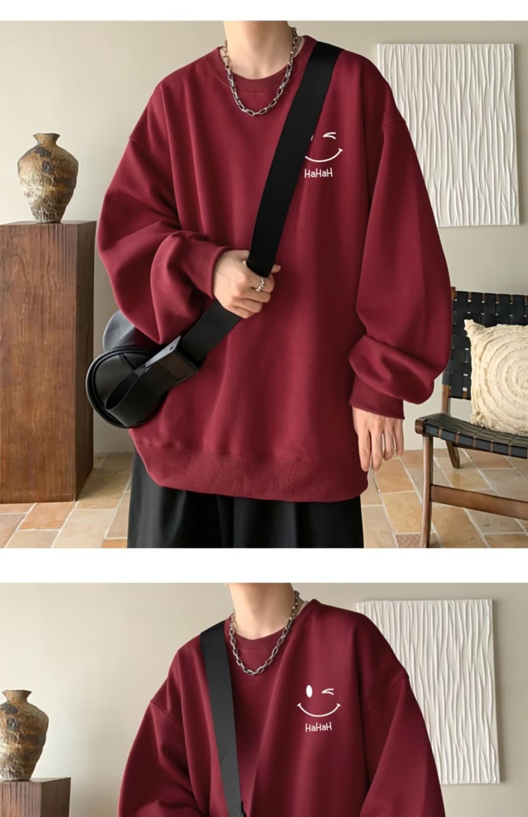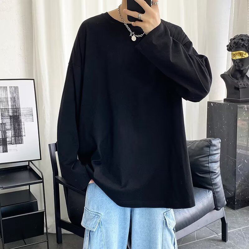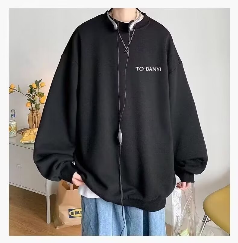 스웨터 남자의 봄과 가을 둥근 목 스마일리 인쇄 긴 소매 티셔츠 남자의 한국 스타일 유행 십대베이스 셔츠 풀오버