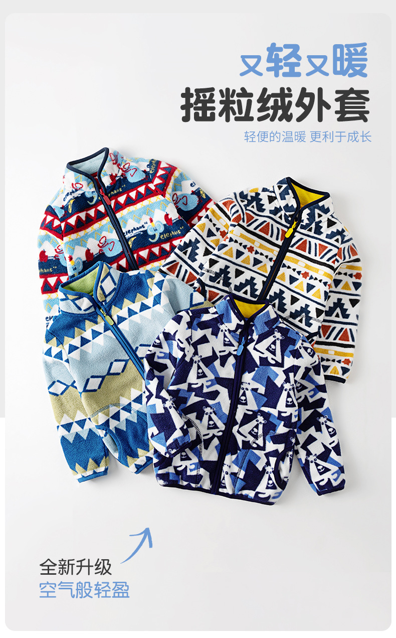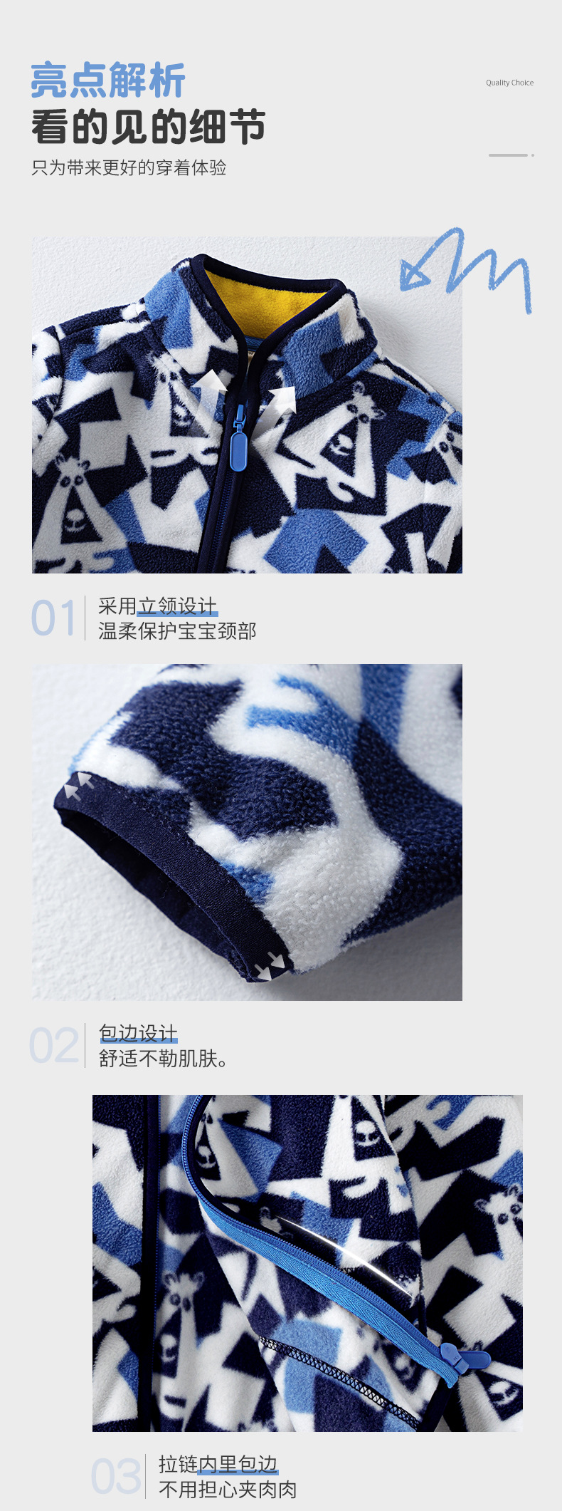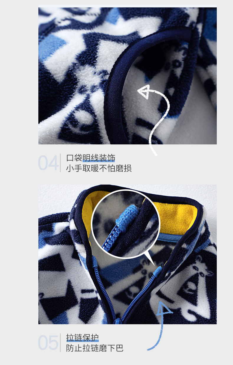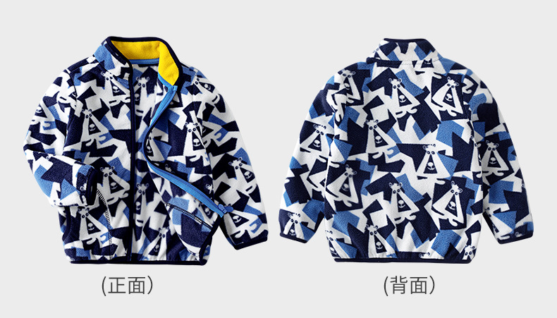 "파란색 바닥 삼각형 곰" 어린이 스탠드 칼라 양털 재킷 2024 가을 아기 파란색 양털 재킷 wy1599스토어 가기