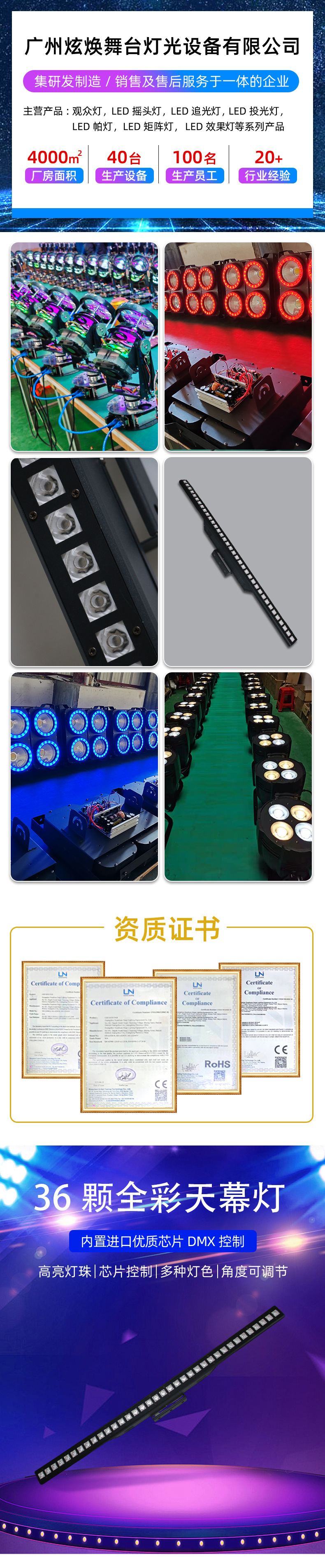 36 풀 컬러 스카이 커튼 램프 파이 램프 결혼식 자동차 쇼 바 무대 조명 장비 완전한 세트