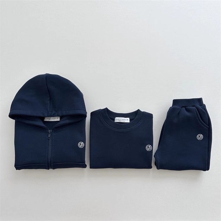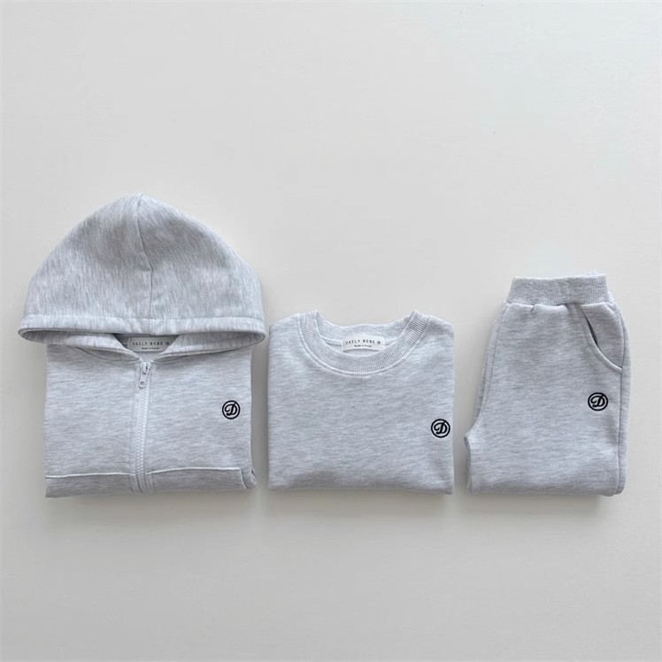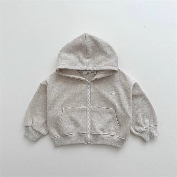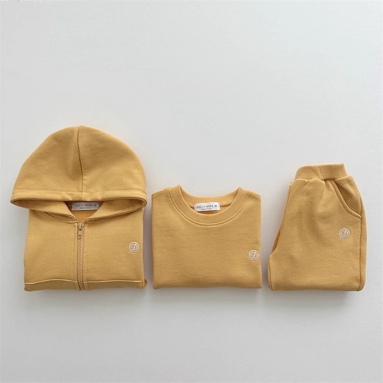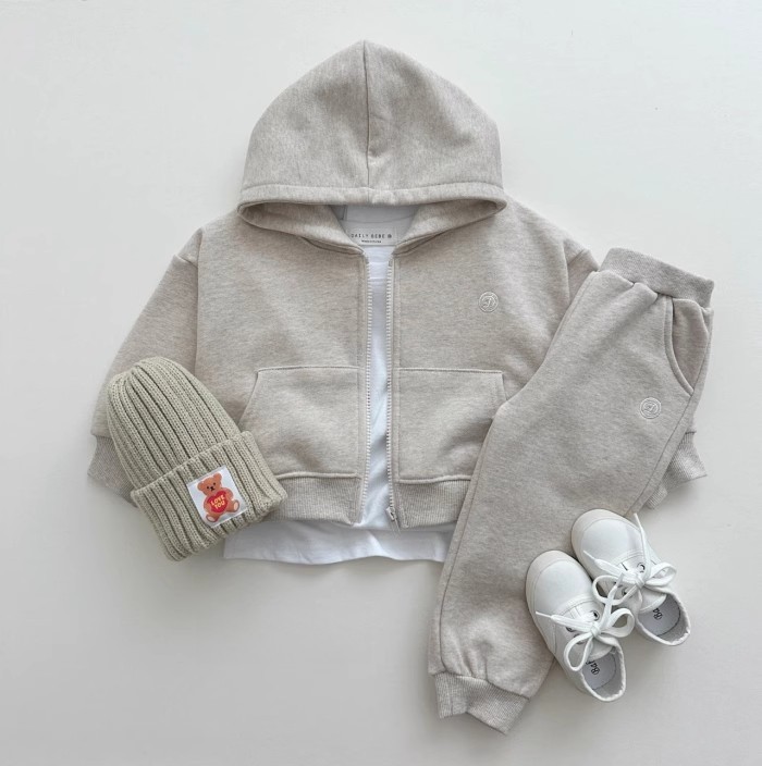 In Korean Style Boys and Girls Baby Pure Cotton 봄과 가을 후드 지퍼 자수 카디건 스웨터 2 피스 세트