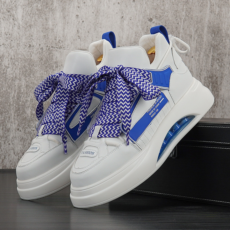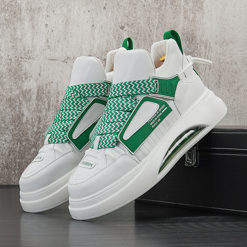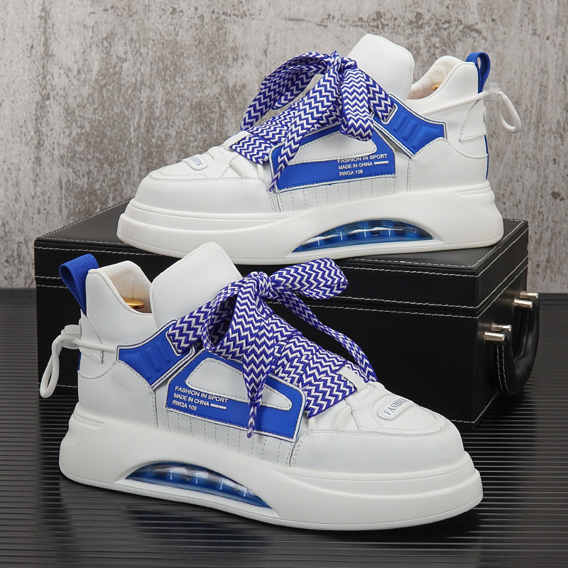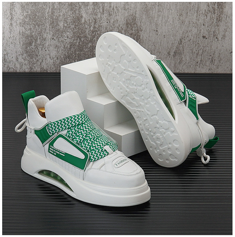 에어 쿠션 신발 남자의 2024 새로운 미드 탑 화이트 신발 유행 브랜드 두꺼운 단독 내부 높이 증가 캐주얼 신발 남성 스포츠 운동화스토어 가기