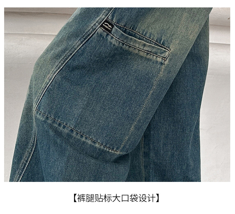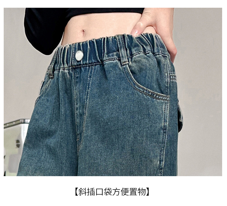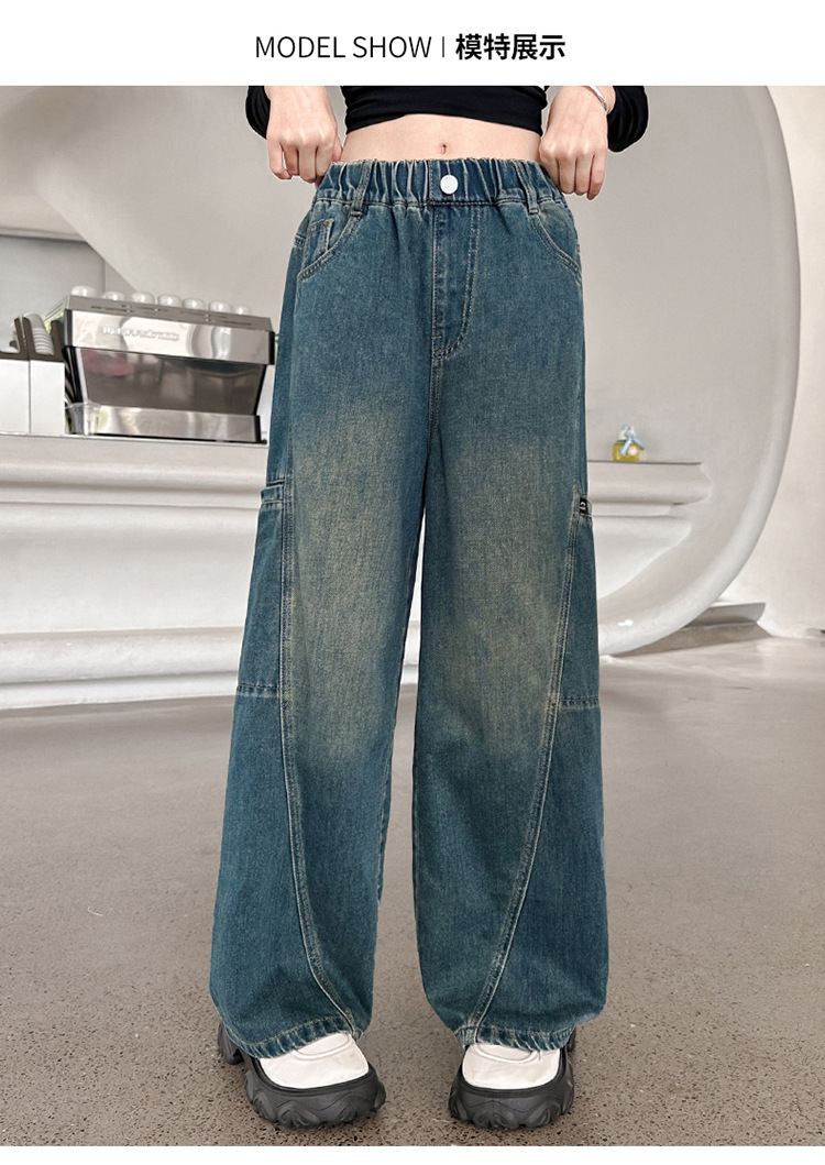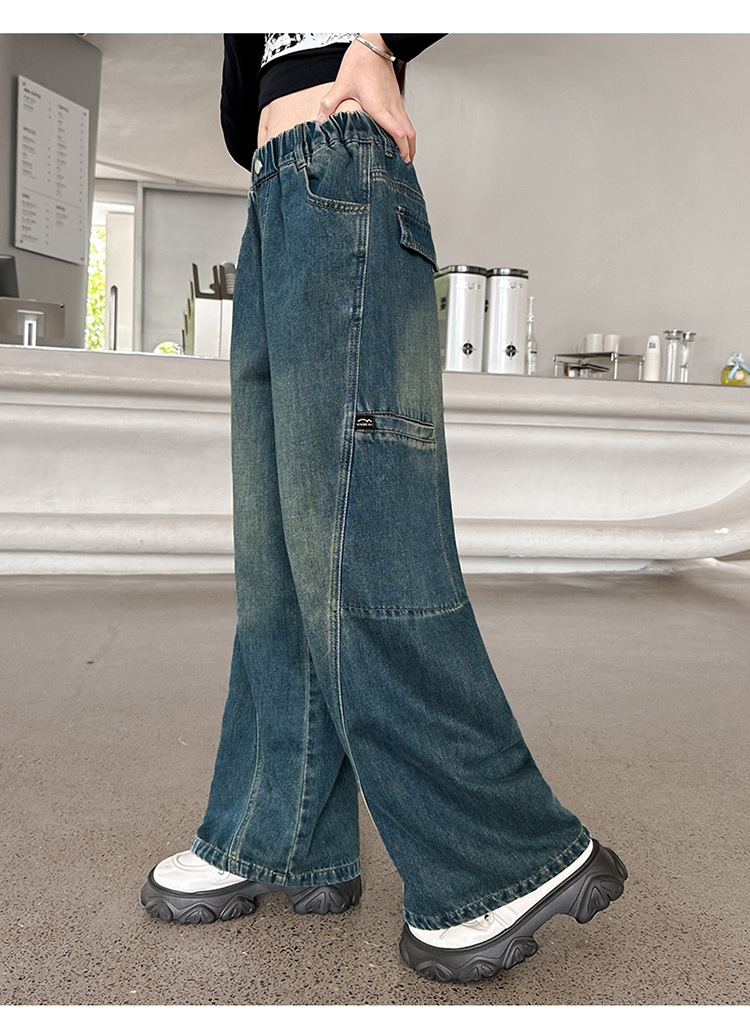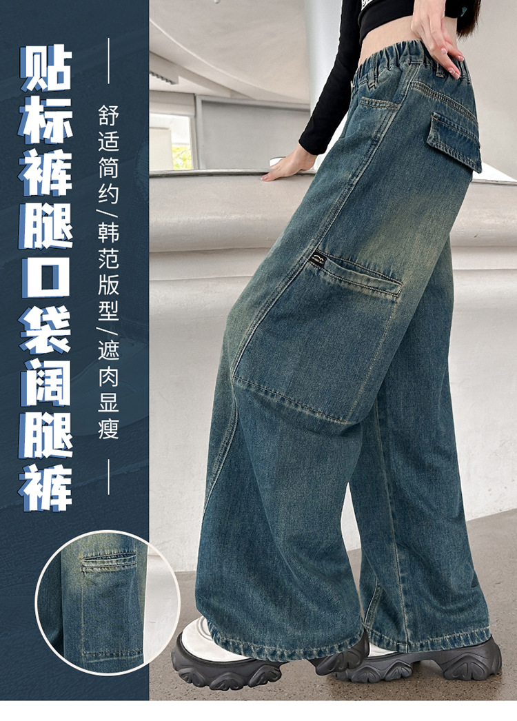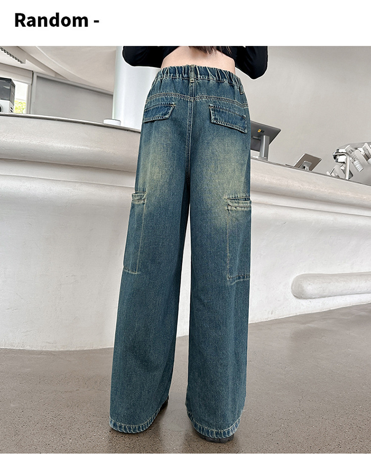 2024 아동복 소녀 가을 새 청바지 대형 포켓 와이드 다리 바지 힙합 서양식 캐주얼 바지스토어 가기
