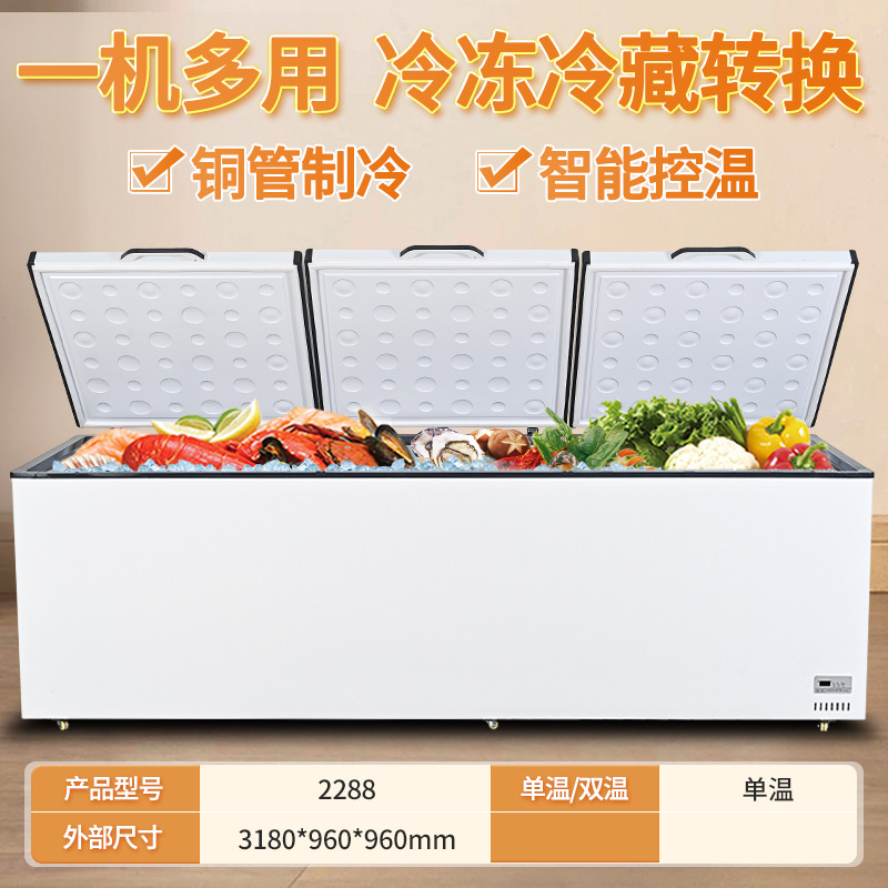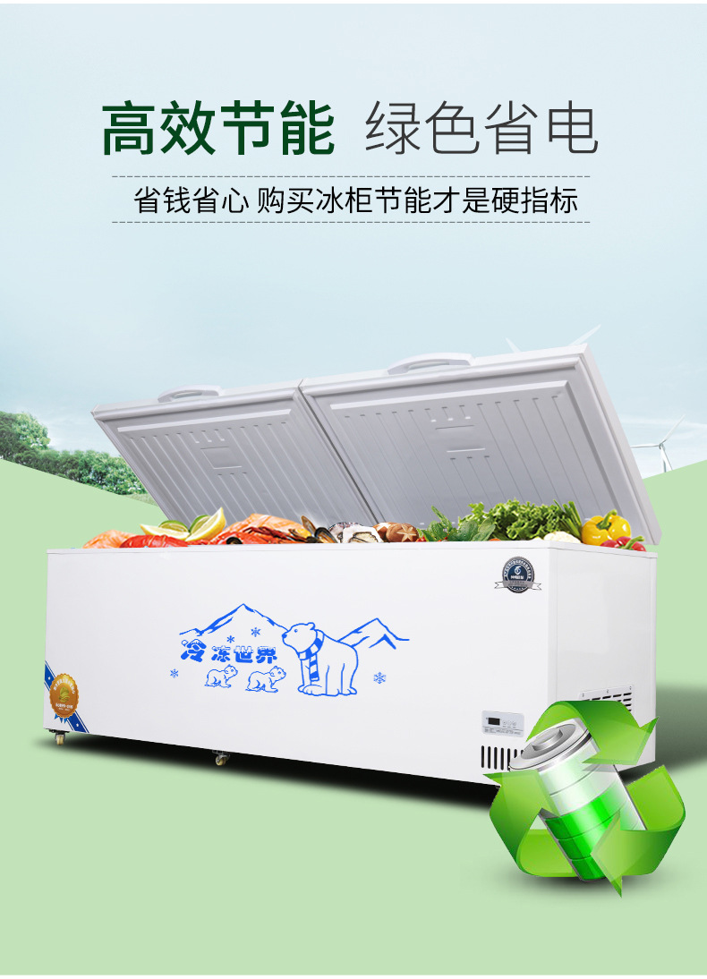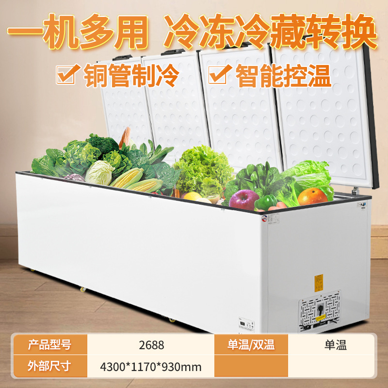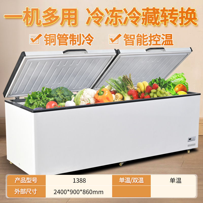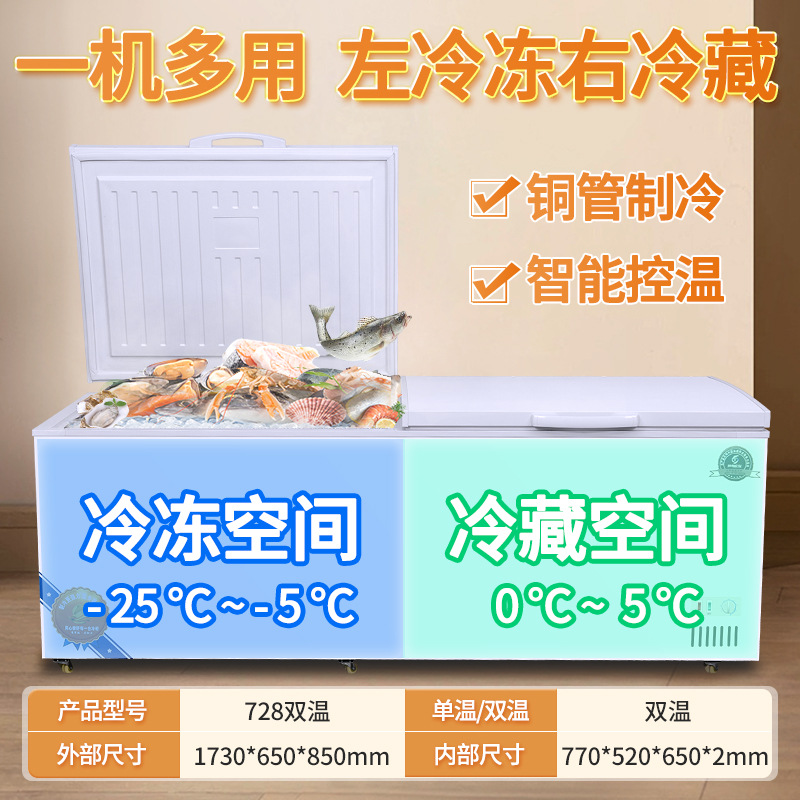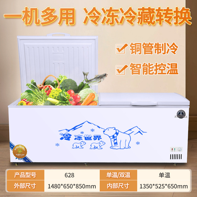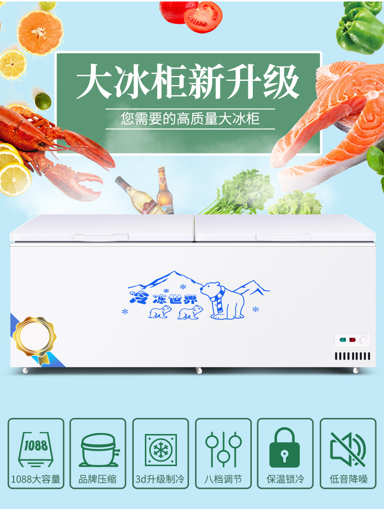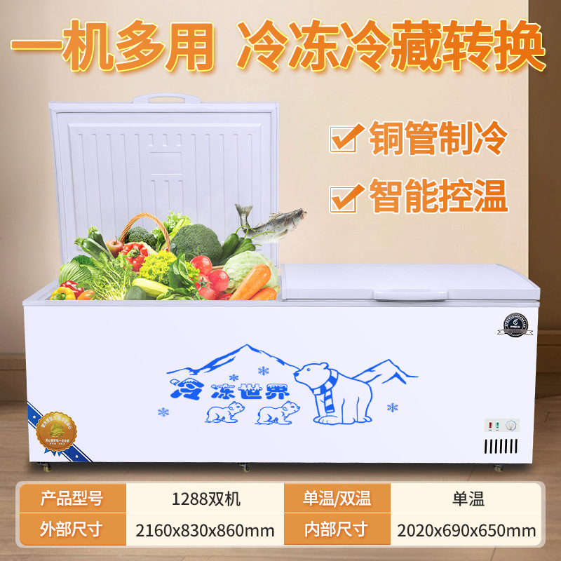 냉동고 상업용 대용량 수평 냉장고 가정용 냉동 냉동 신선한 두 배 온도 냉동고 디스플레이 냉장고 눈