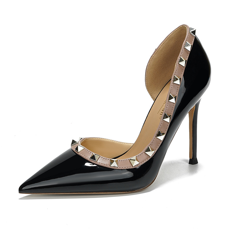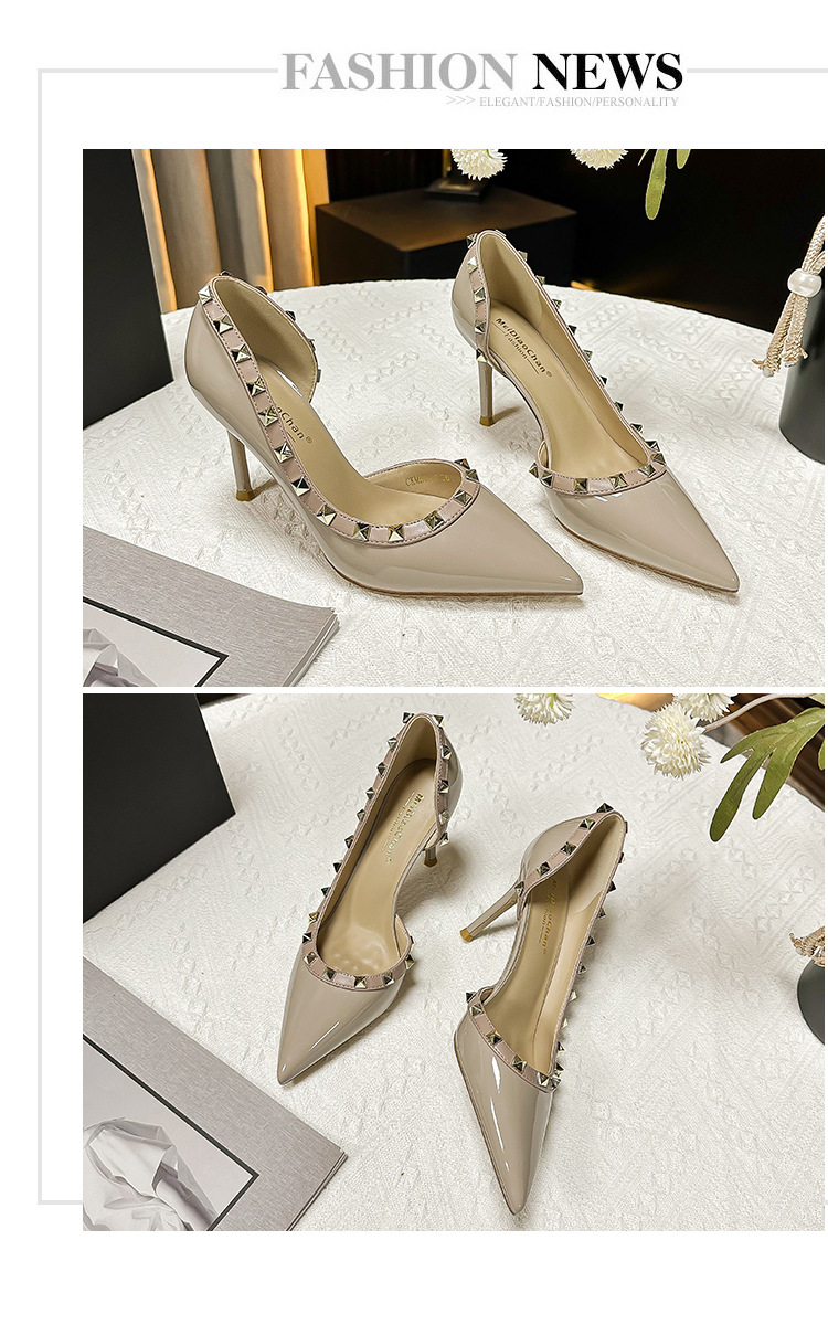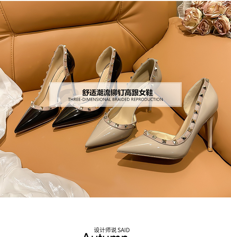 화가족과 같은 스타일의 리벳 장식 사이드 오픈 스틸레토 힐 여성용 편안한 뾰족코 구두 고급스러운 분위기와 패셔너블한 스타일스토어 가기