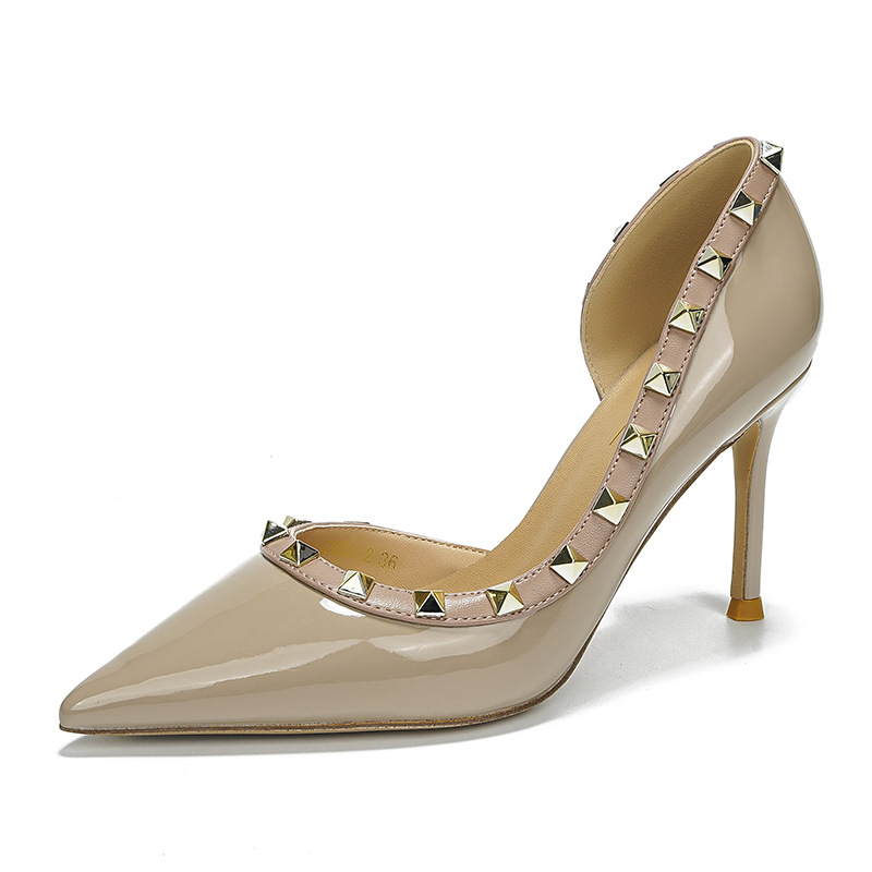 화가족과 같은 스타일의 리벳 장식 사이드 오픈 스틸레토 힐 여성용 편안한 뾰족코 구두 고급스러운 분위기와 패셔너블한 스타일