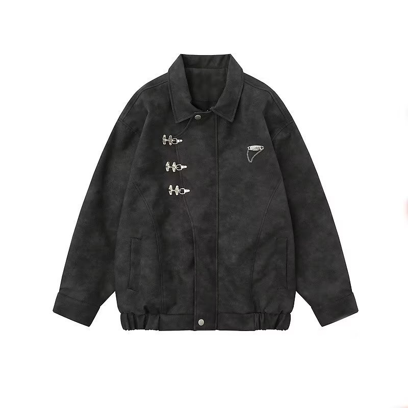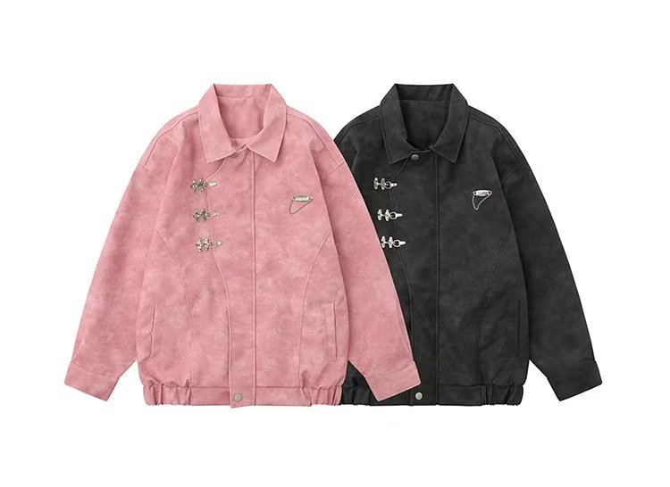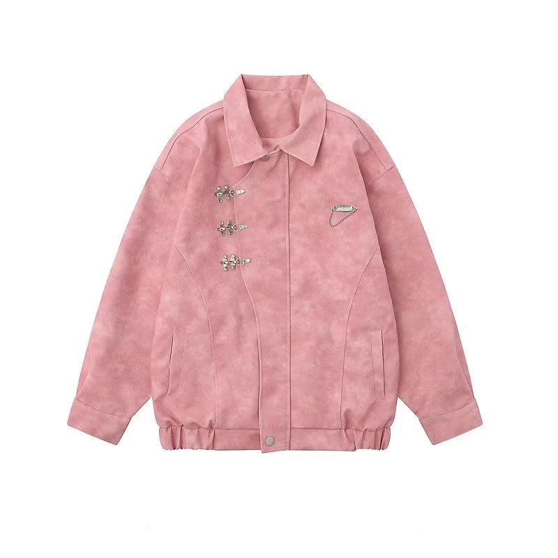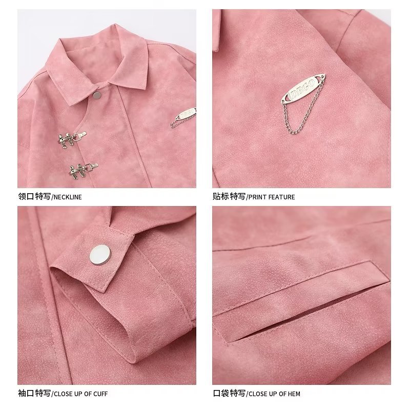 아메리칸 스타일 프라이드 아케이드 자동차 스타일 옷깃 PU 가죽 자켓 남성 핑크 하이 엔드 바이브 루즈 캐주얼 커플 재킷스토어 가기
