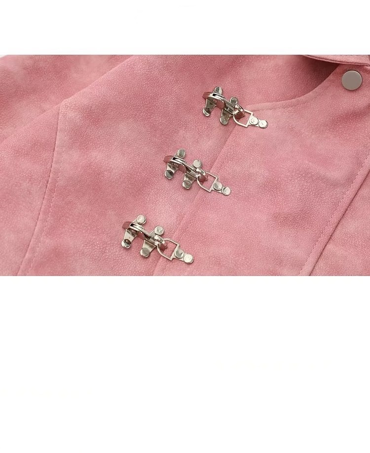 아메리칸 스타일 프라이드 아케이드 자동차 스타일 옷깃 PU 가죽 자켓 남성 핑크 하이 엔드 바이브 루즈 캐주얼 커플 재킷