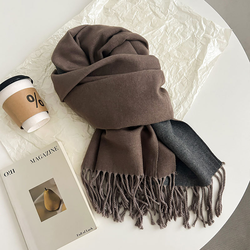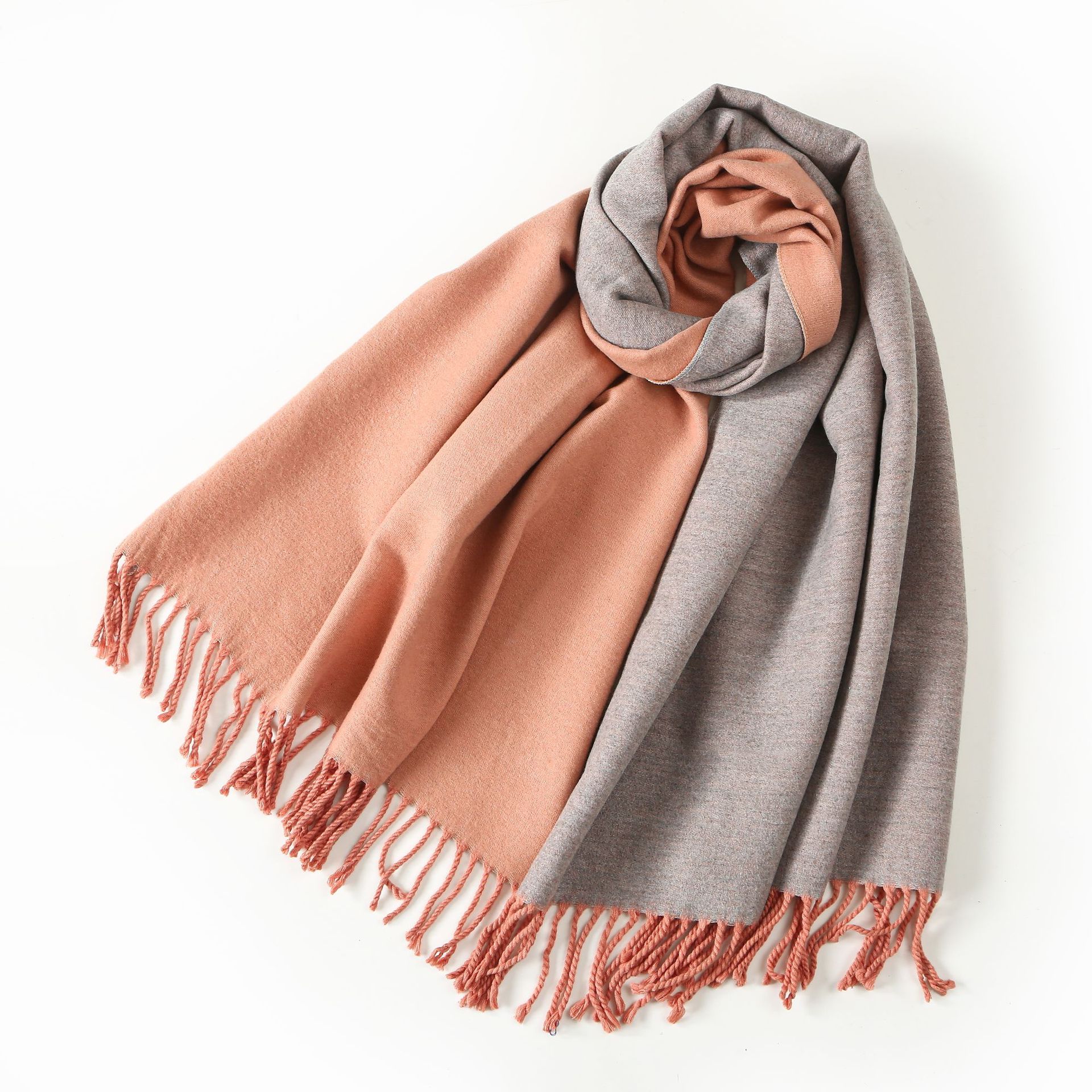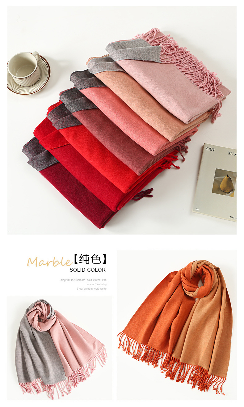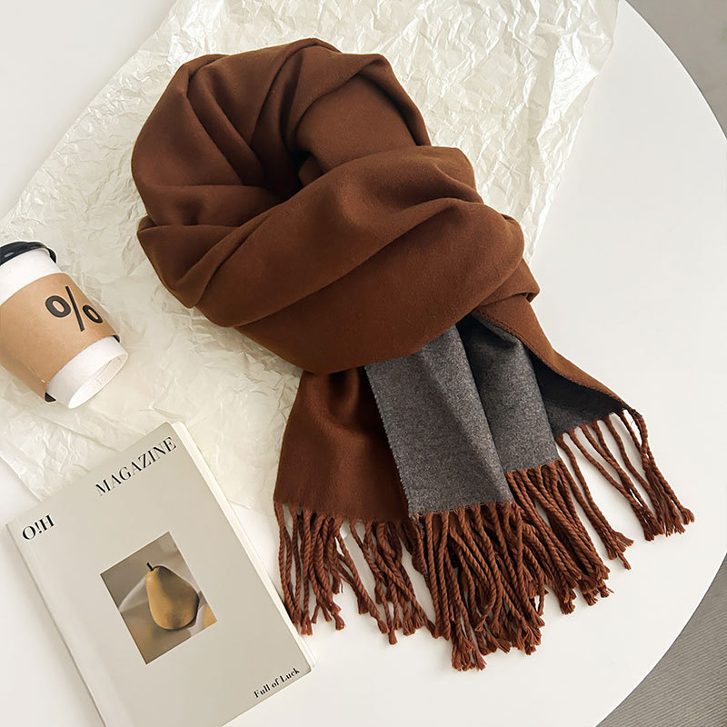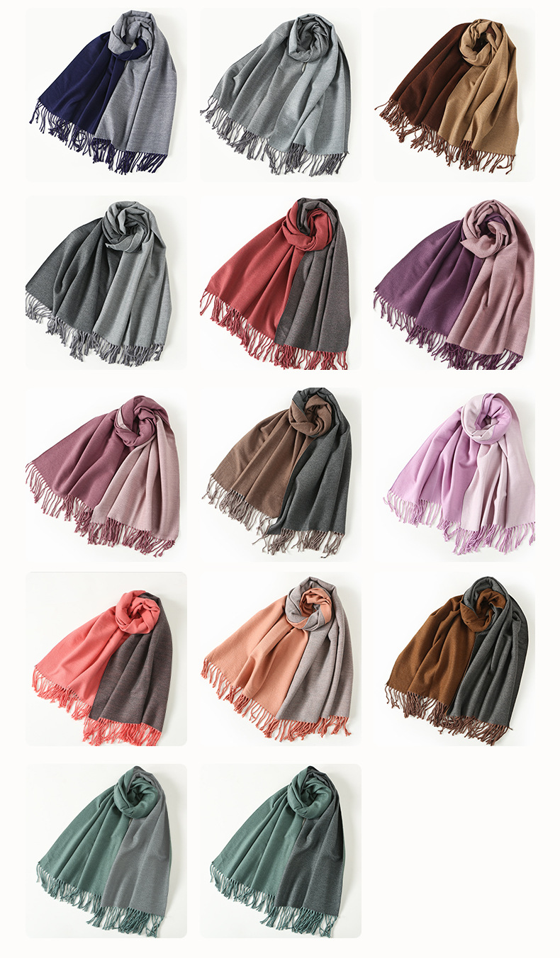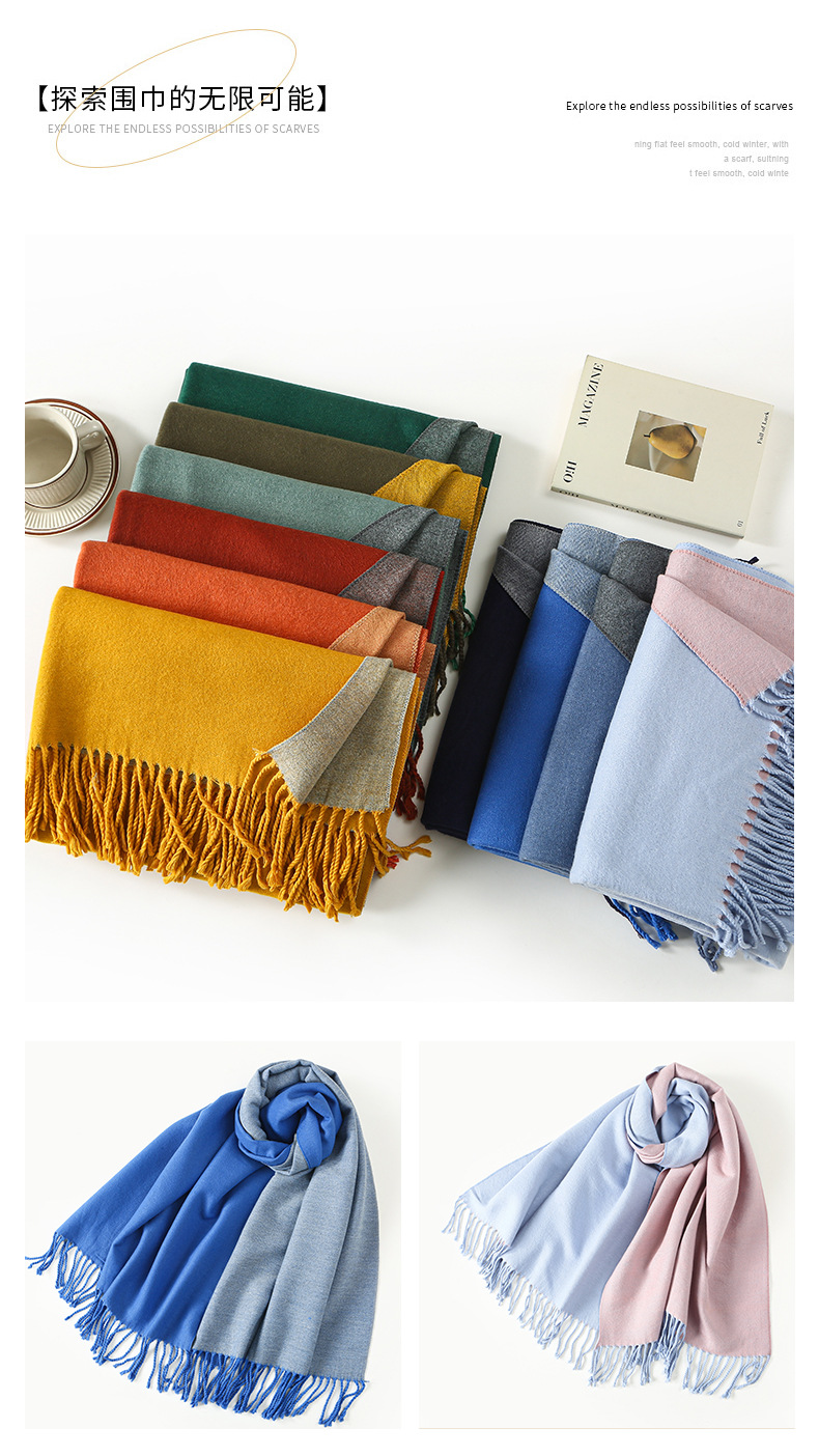 고급 양면 다른 색상 모조 토끼 벨벳 스카프 스타일 품질 좋은 겨울 따뜻한 두꺼운 술 목도리 조수
