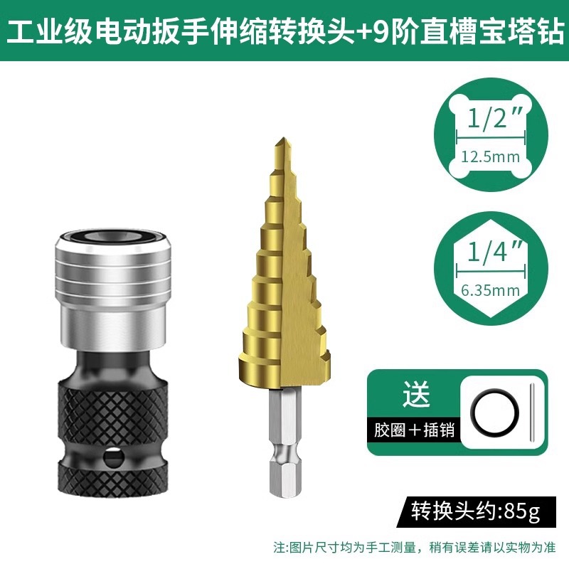 • 산업용 등급 전기 렌치 텔레스코픽 어댑터 + 9단 직선 홈 파고다 드릴