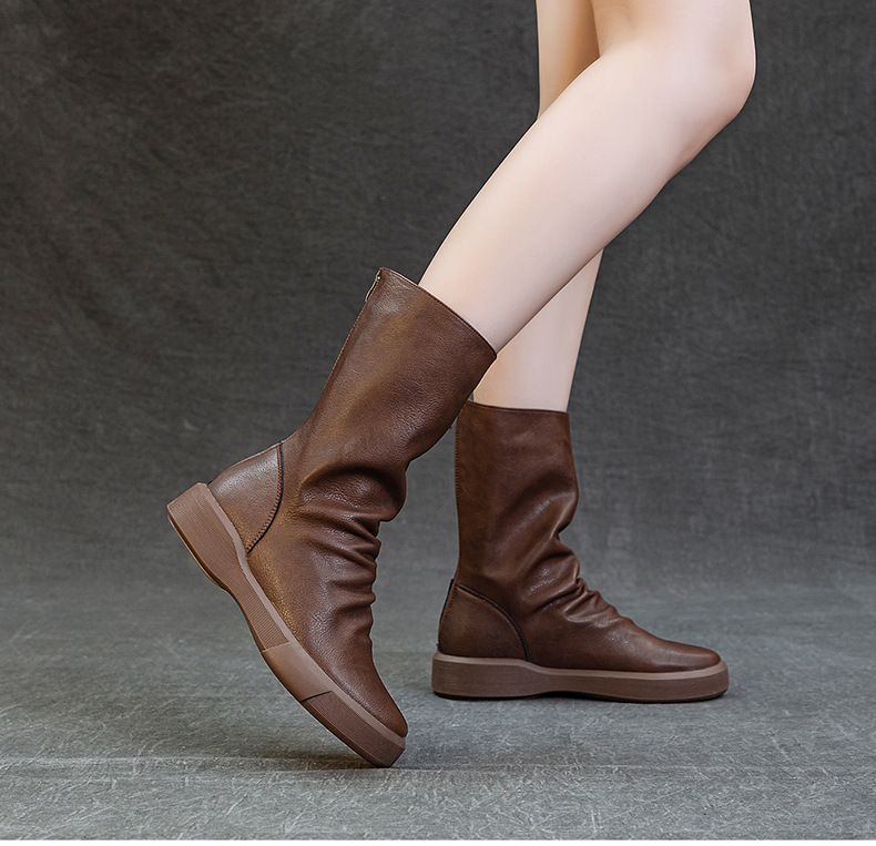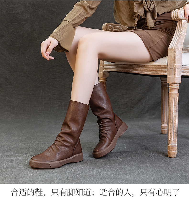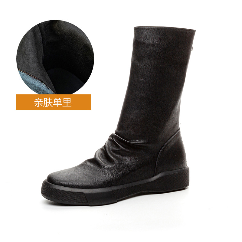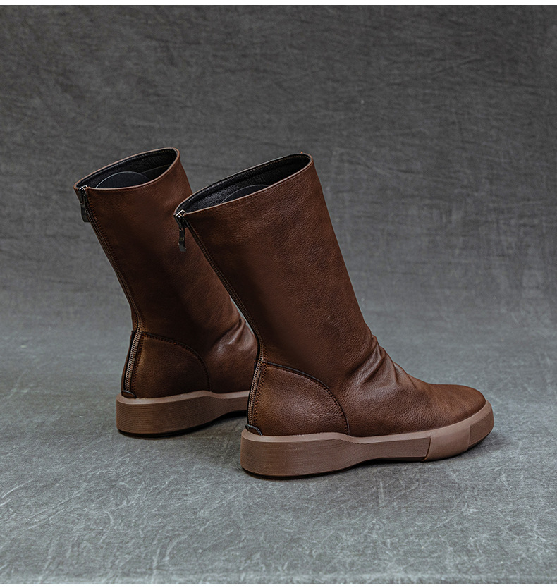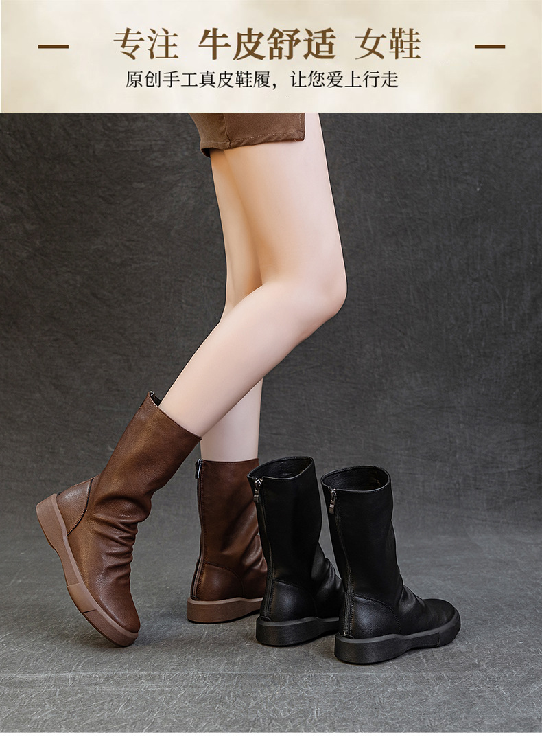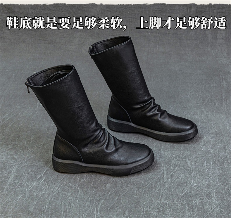 가을 새로운 바닥 폭발 Cowhide Martin 부츠 여성 라운드 헤드 미들 부츠 리어 지퍼 반전 부츠 레트로 싱글 부츠 도매스토어 가기