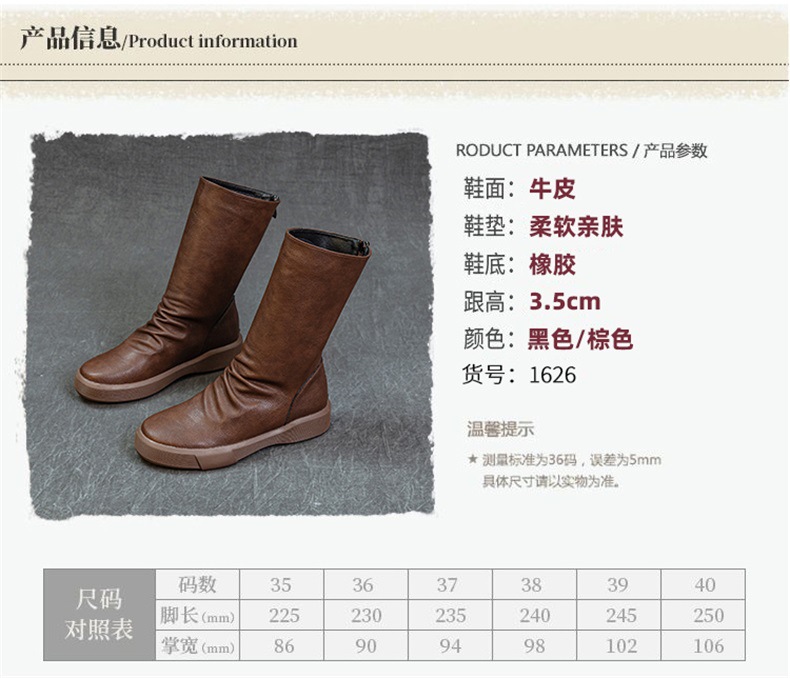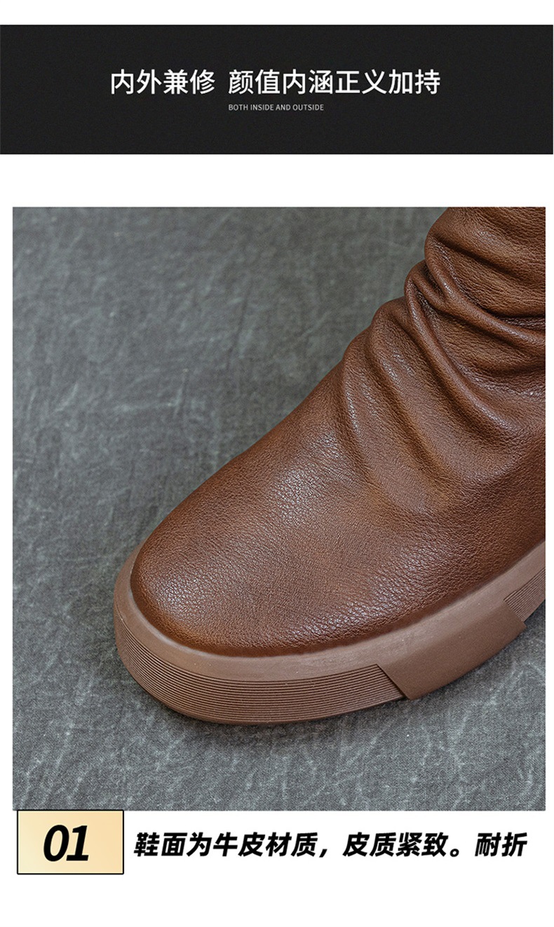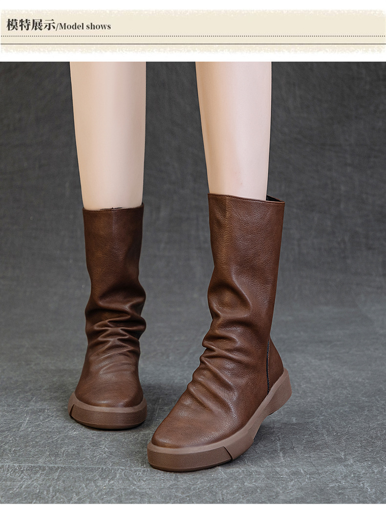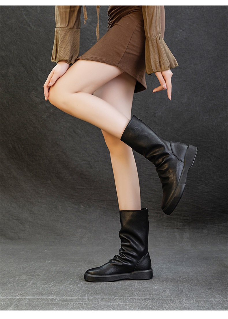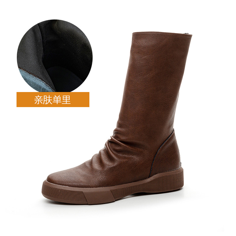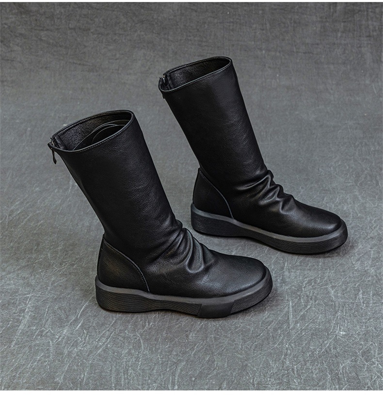 가을 새로운 바닥 폭발 Cowhide Martin 부츠 여성 라운드 헤드 미들 부츠 리어 지퍼 반전 부츠 레트로 싱글 부츠 도매스토어 가기