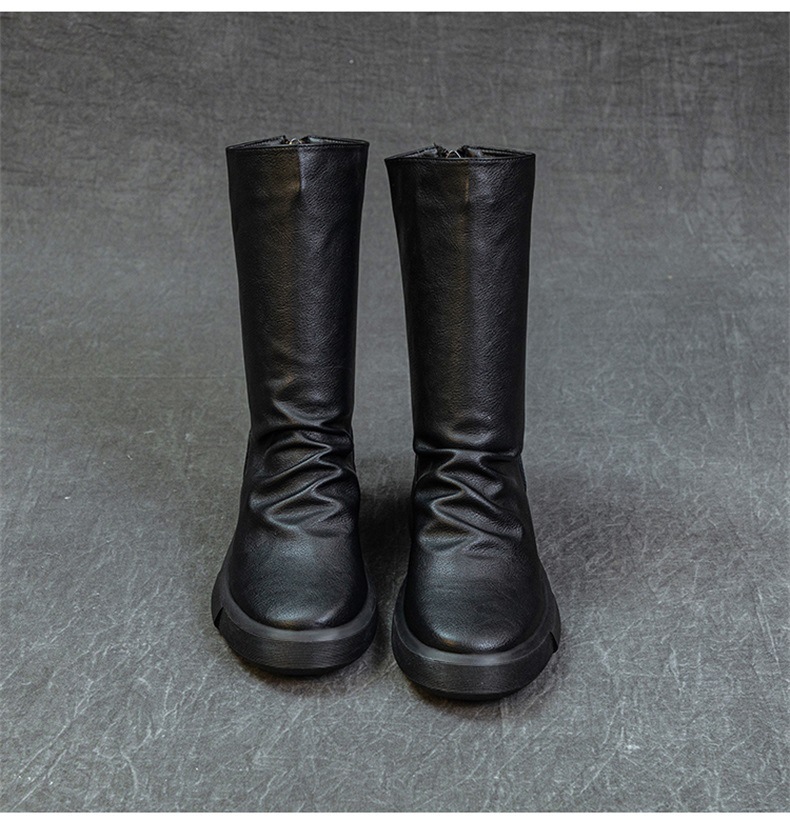 가을 새로운 바닥 폭발 Cowhide Martin 부츠 여성 라운드 헤드 미들 부츠 리어 지퍼 반전 부츠 레트로 싱글 부츠 도매