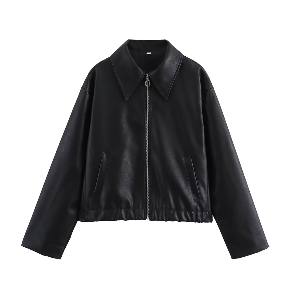 2024 새로운 가을 캐주얼 다목적 유럽과 미국 스타일의 솔리드 컬러 가죽 자켓 여성 pu 자켓 루즈 탑