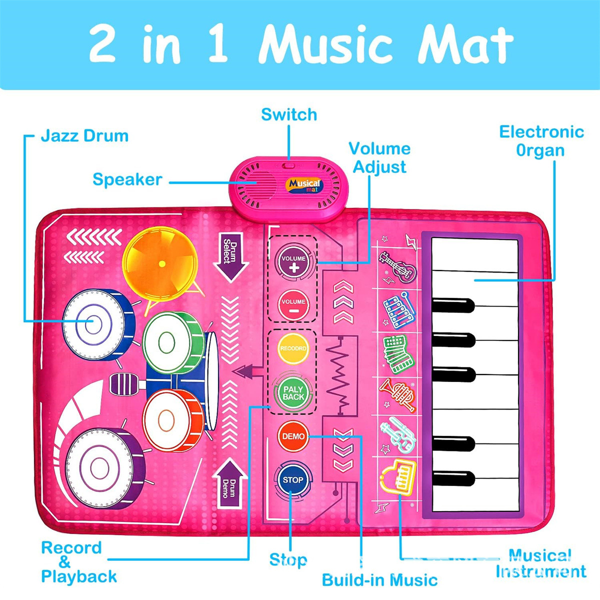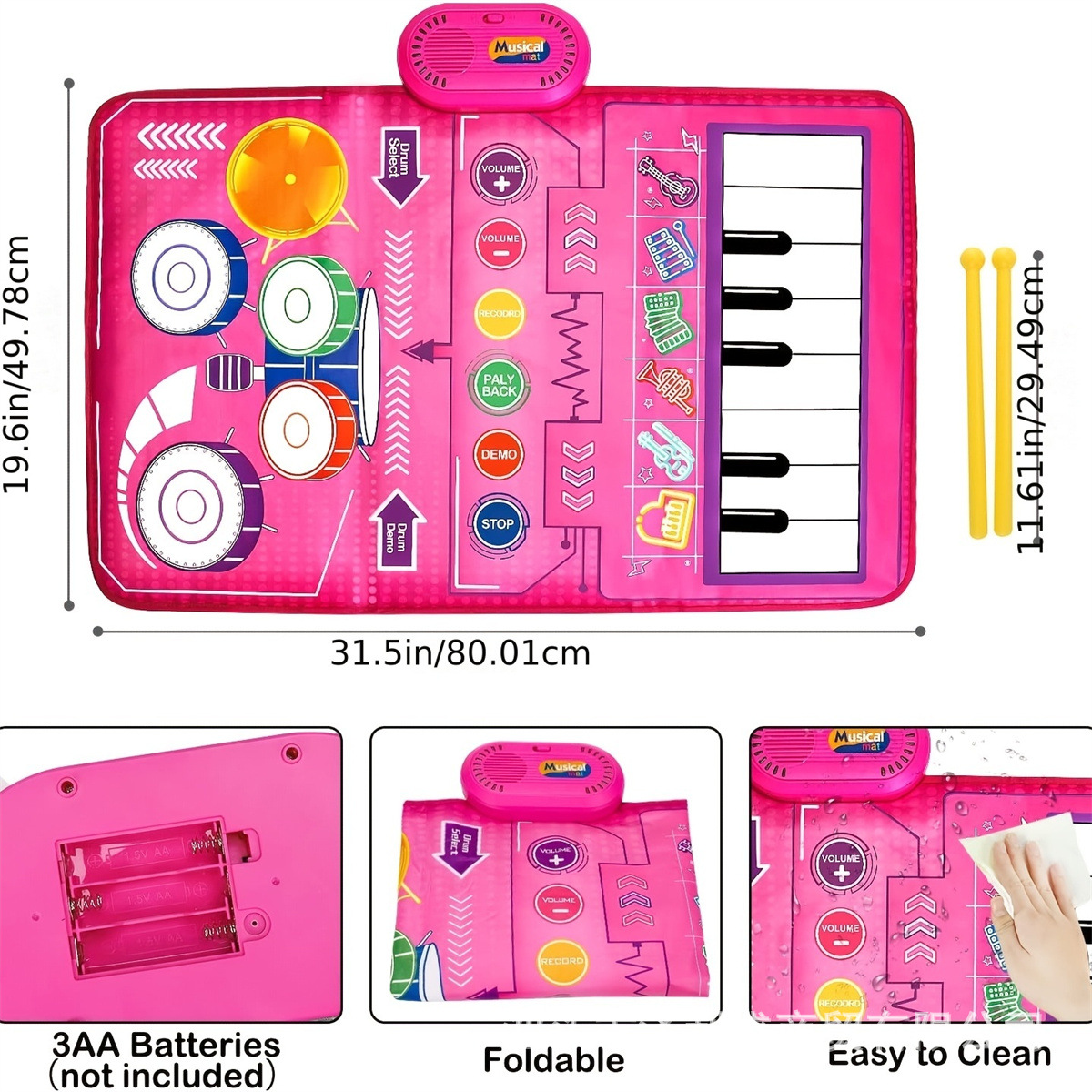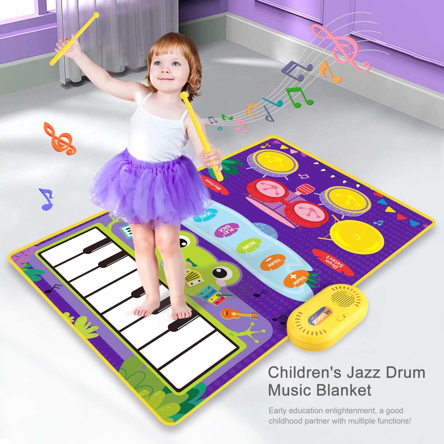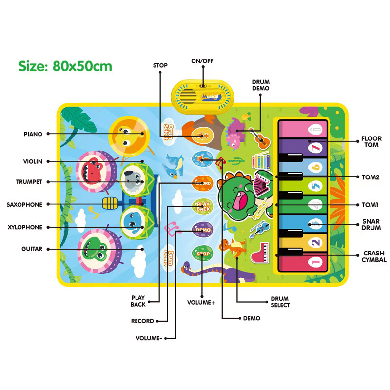 어린이 조기 교육 드럼 세트 음악 담요 교육 장난감 터치 피아노 패드 재즈 드럼 아마존 50*80cm