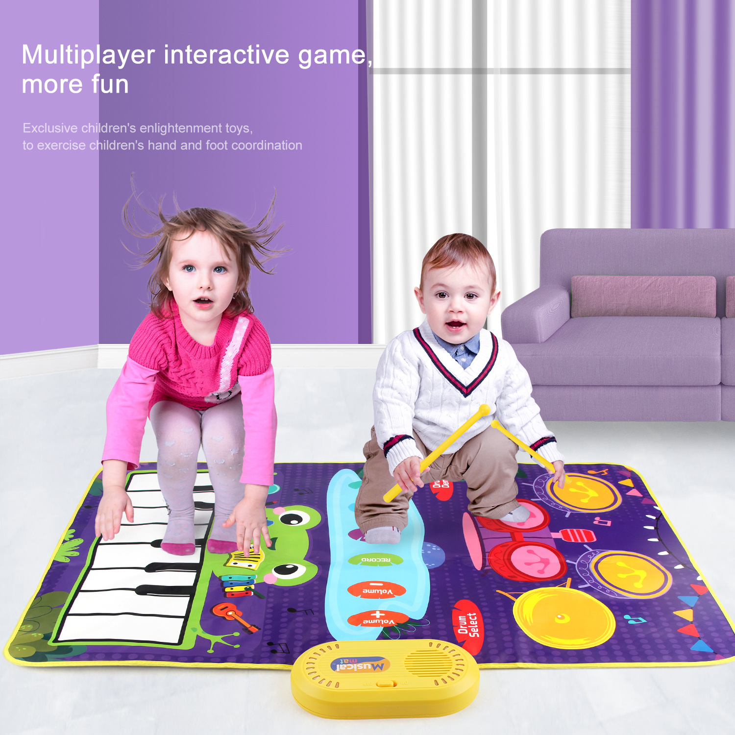 어린이 조기 교육 드럼 세트 음악 담요 교육 장난감 터치 피아노 패드 재즈 드럼 아마존 50*80cm스토어 가기