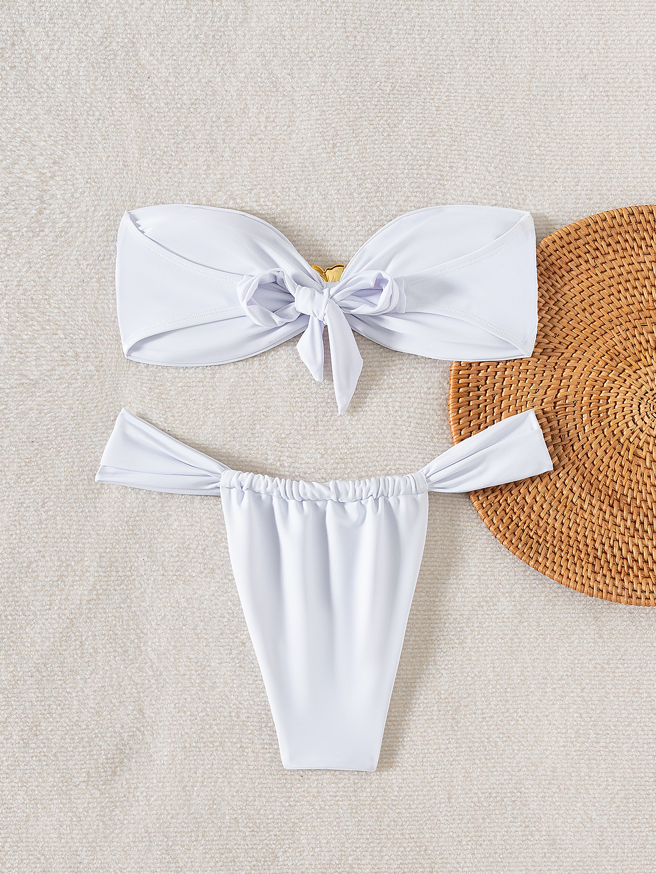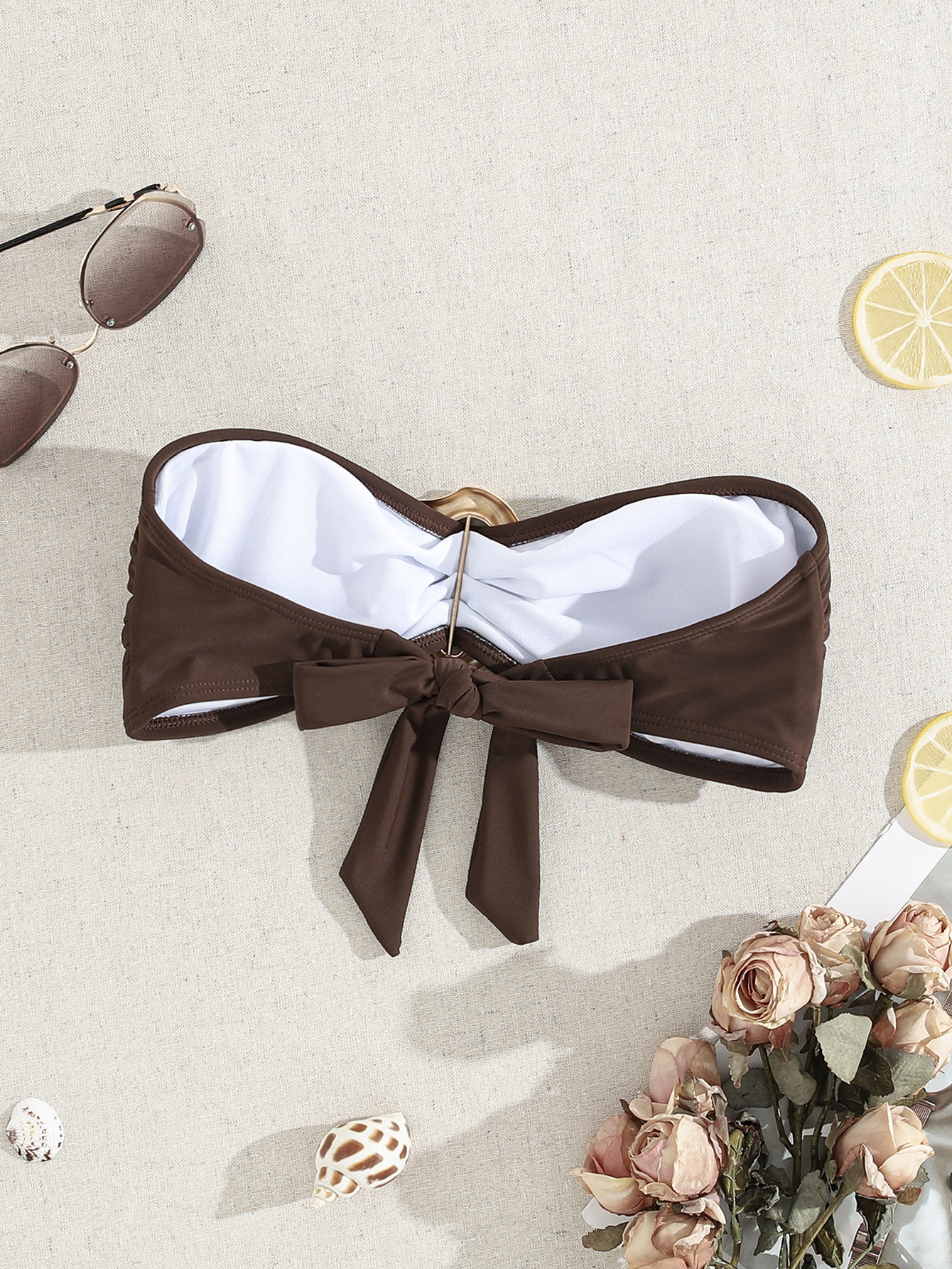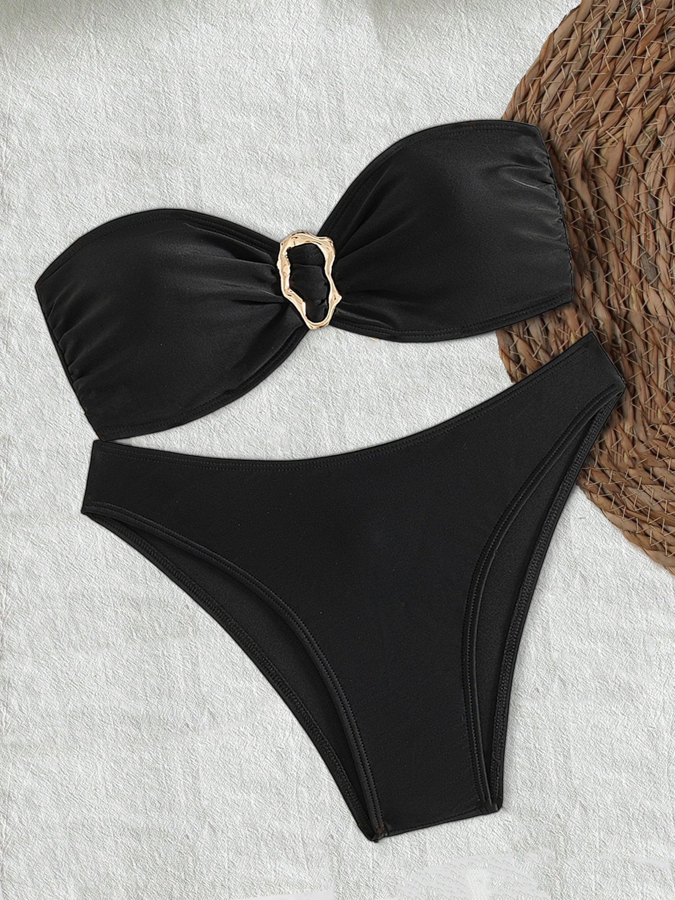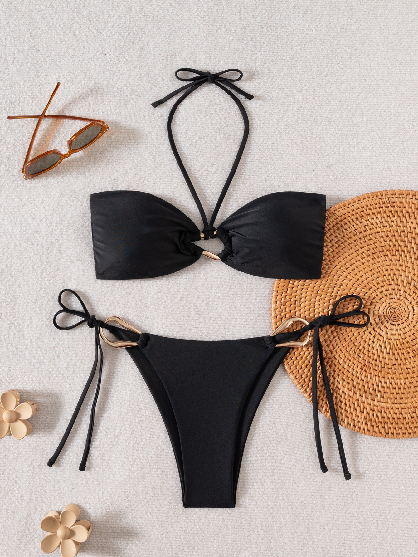 폭발적인 국경 간 유럽과 미국 분할 튜브 상단 교수형 목 금속 액세서리 수영복 세트 비키니 단색 순수한 욕망