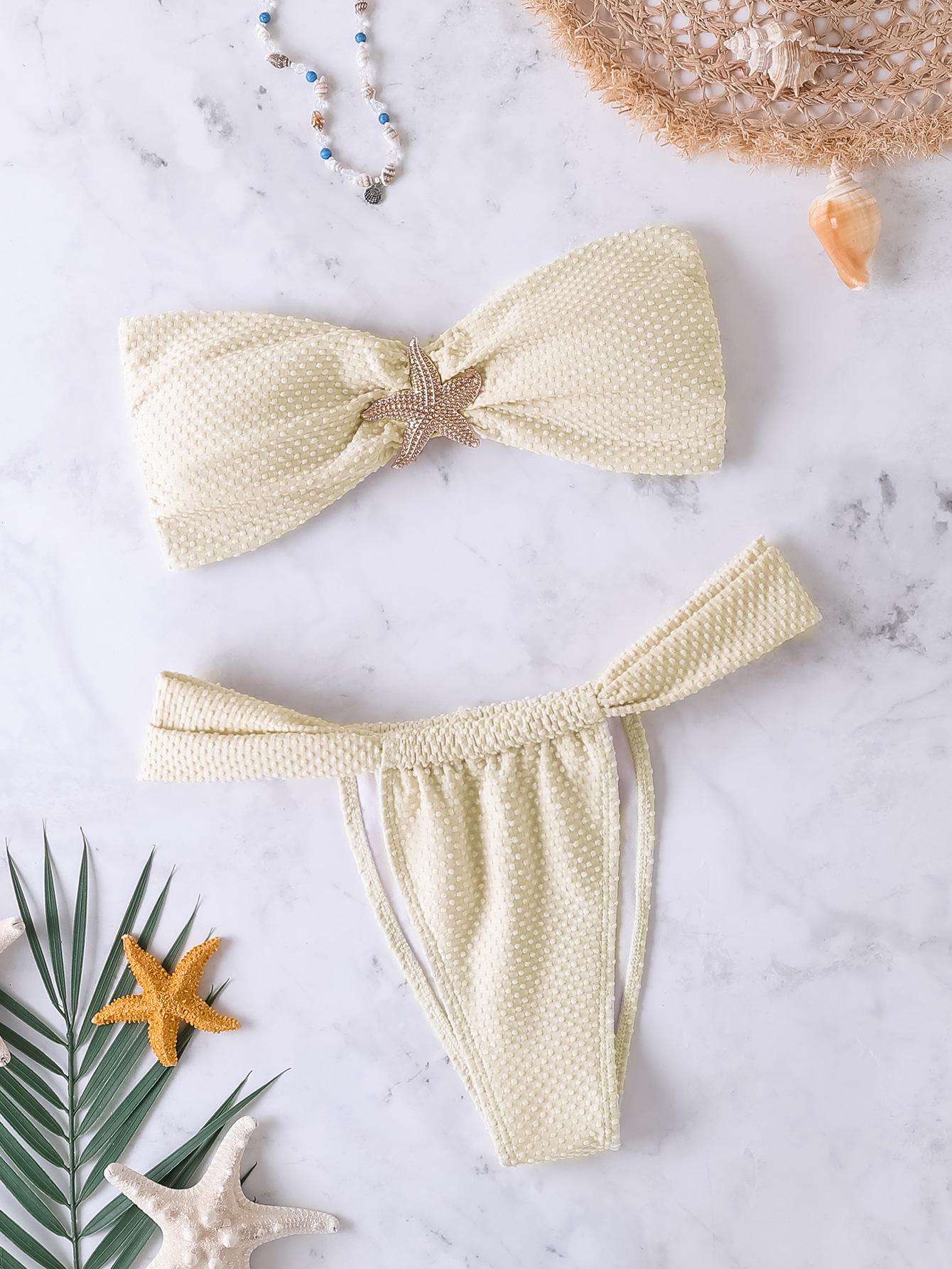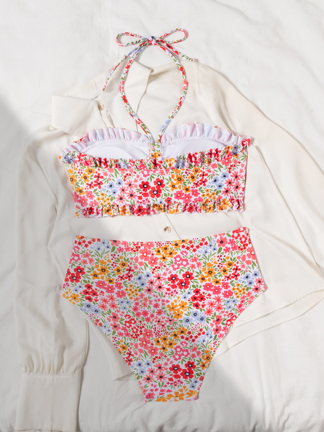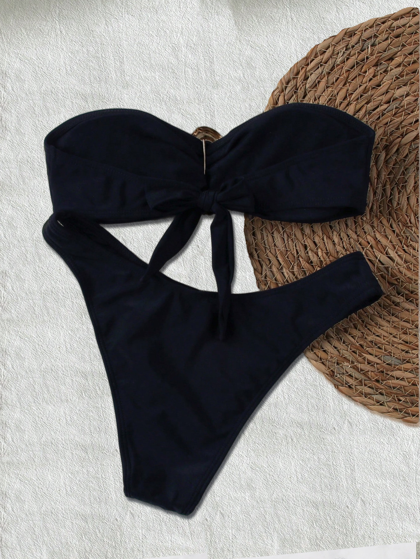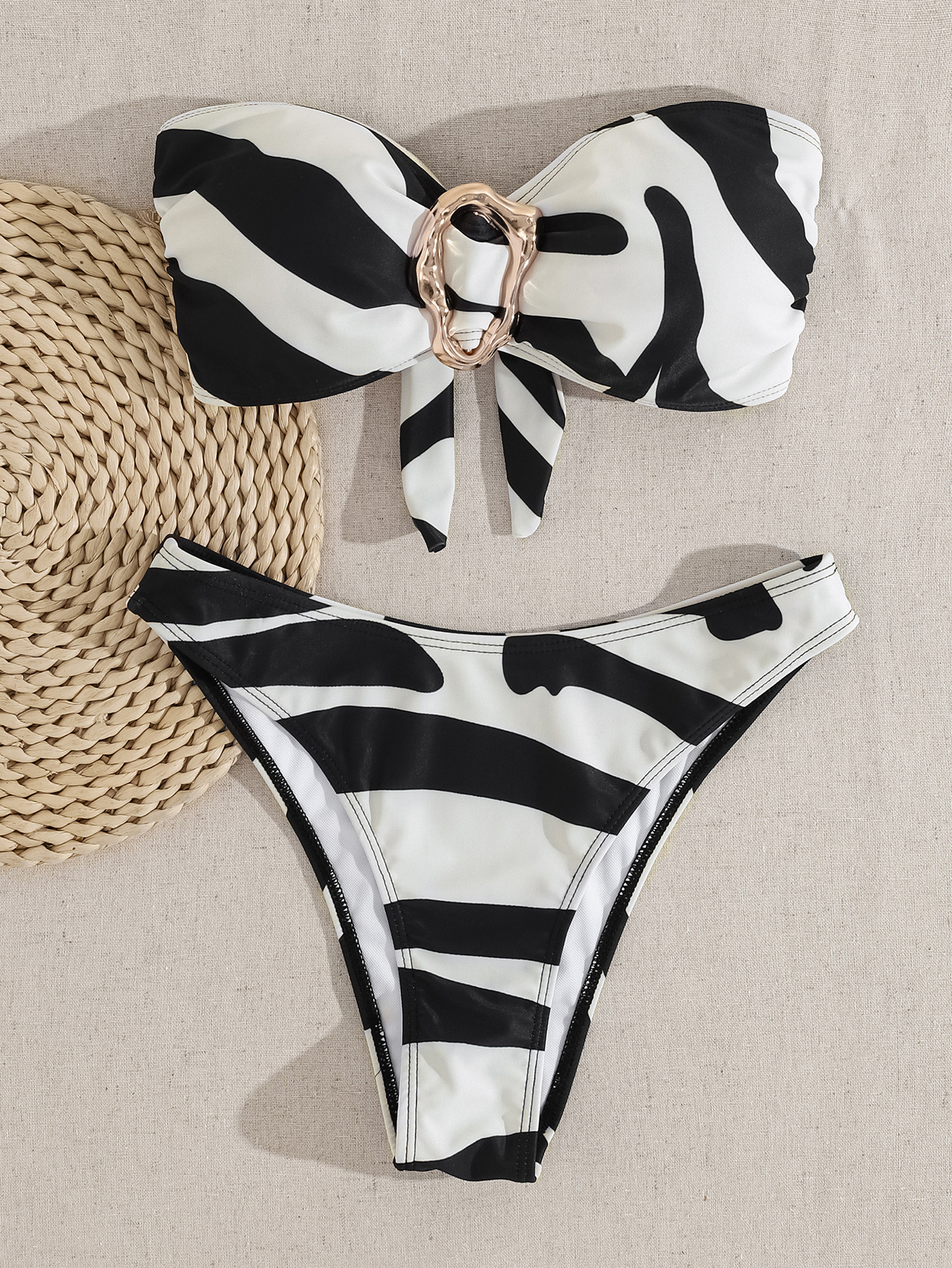 폭발적인 국경 간 유럽과 미국 분할 튜브 상단 교수형 목 금속 액세서리 수영복 세트 비키니 단색 순수한 욕망