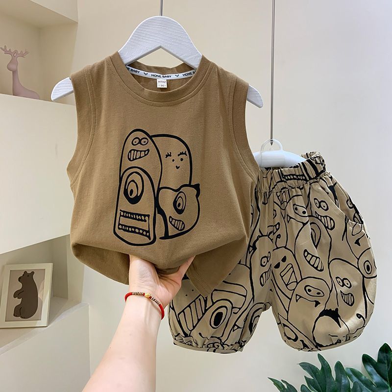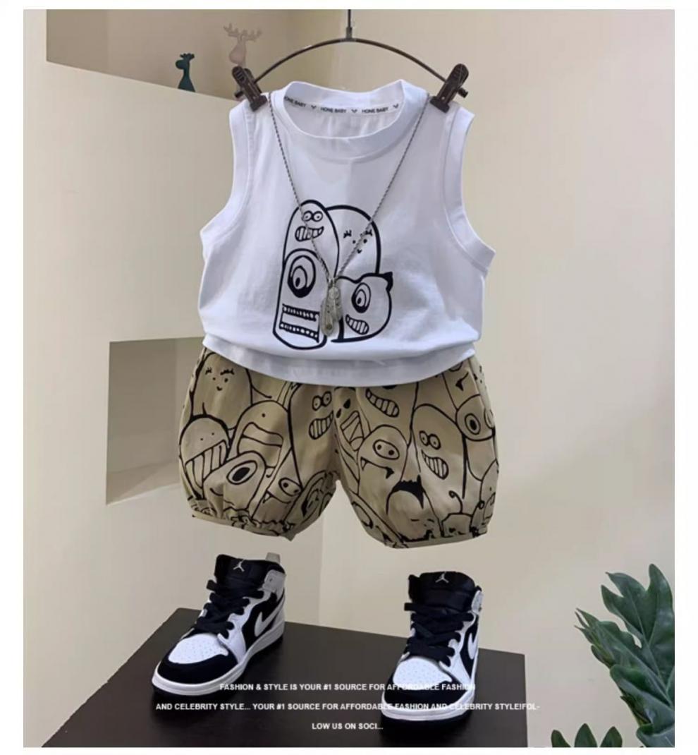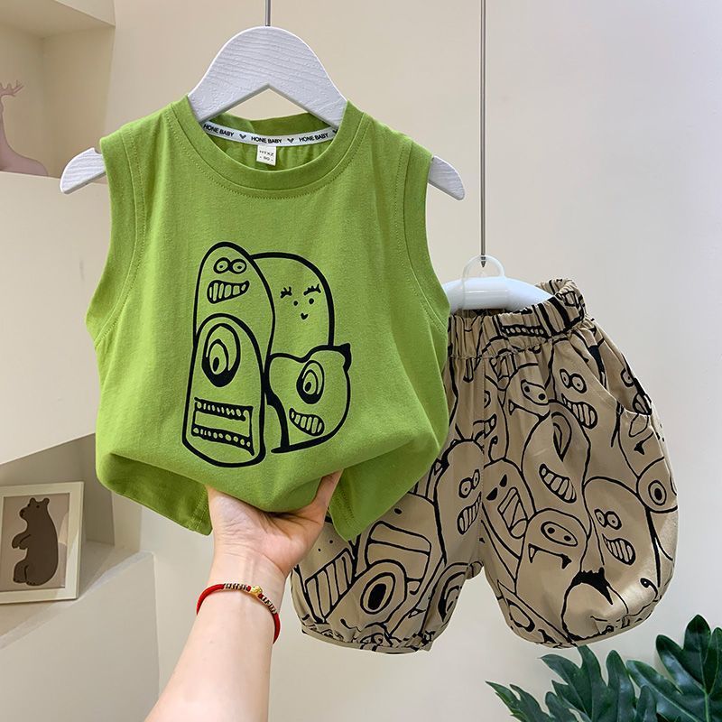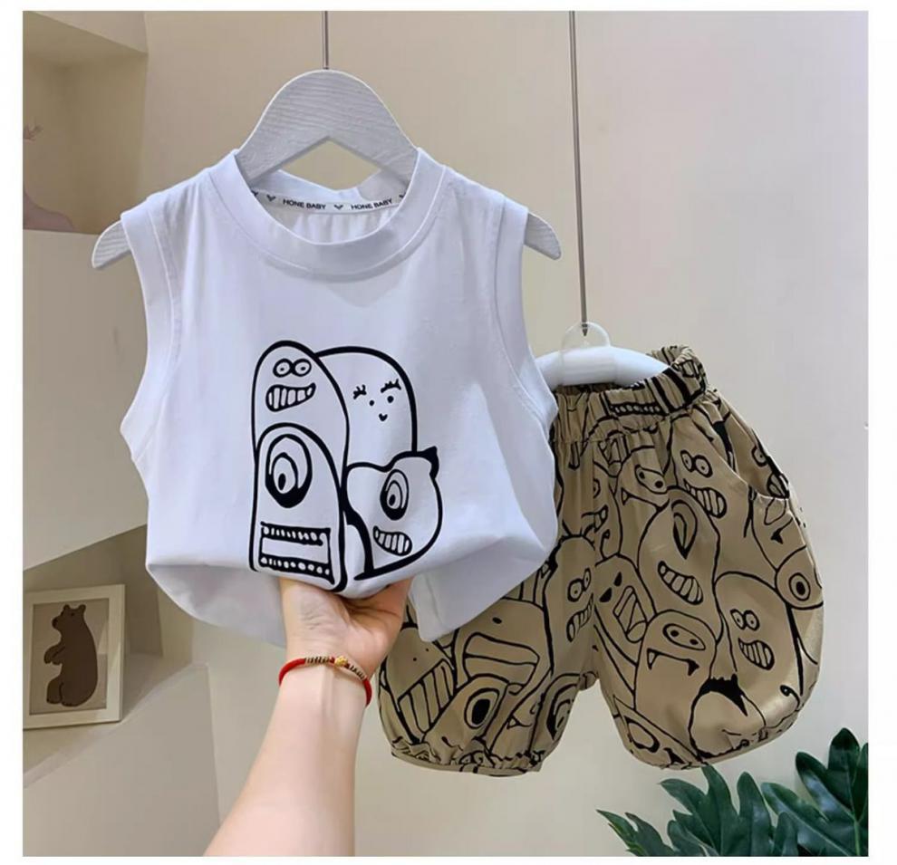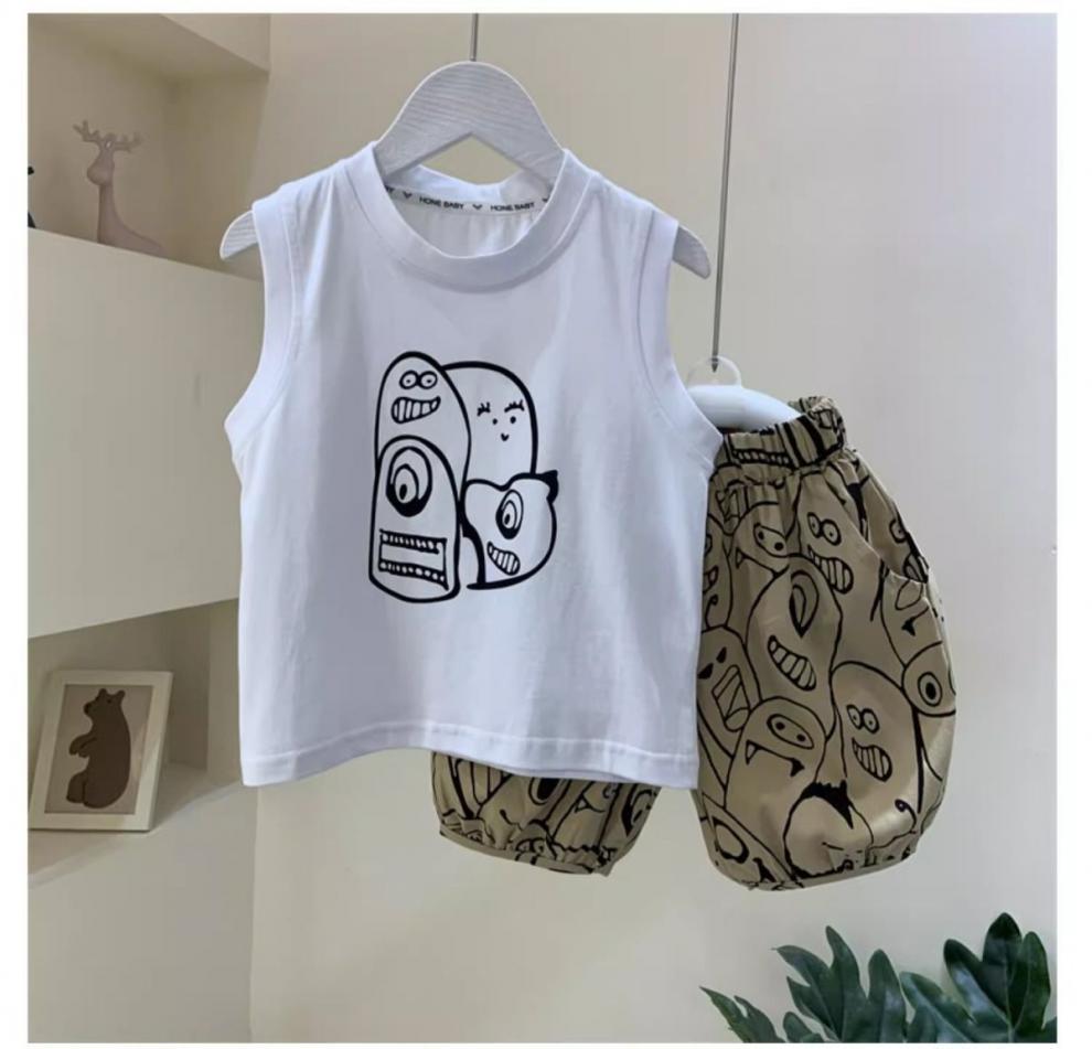 2024 새로운 여름 세트 얇은 풀오버 민소매 조끼 투피스 어린이 여름 아기 유행 옷스토어 가기