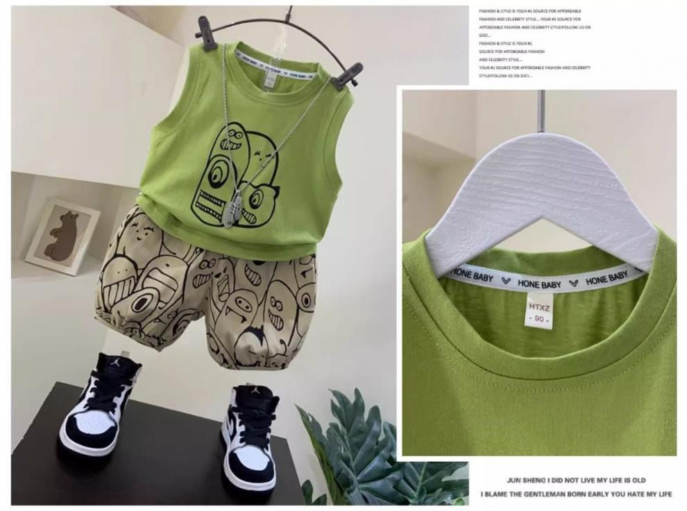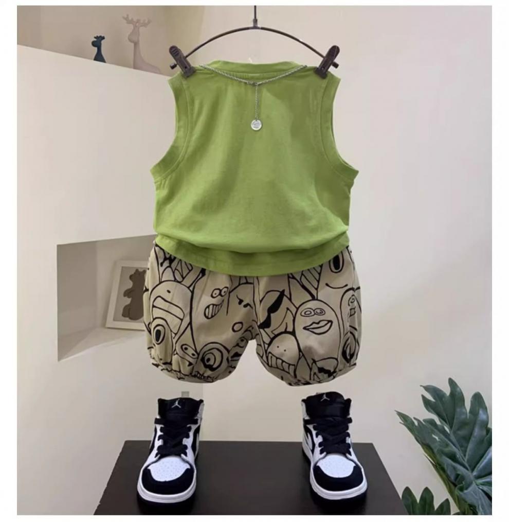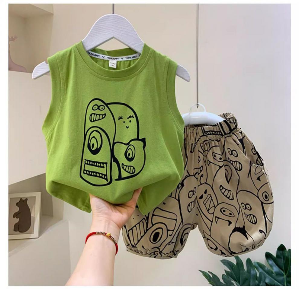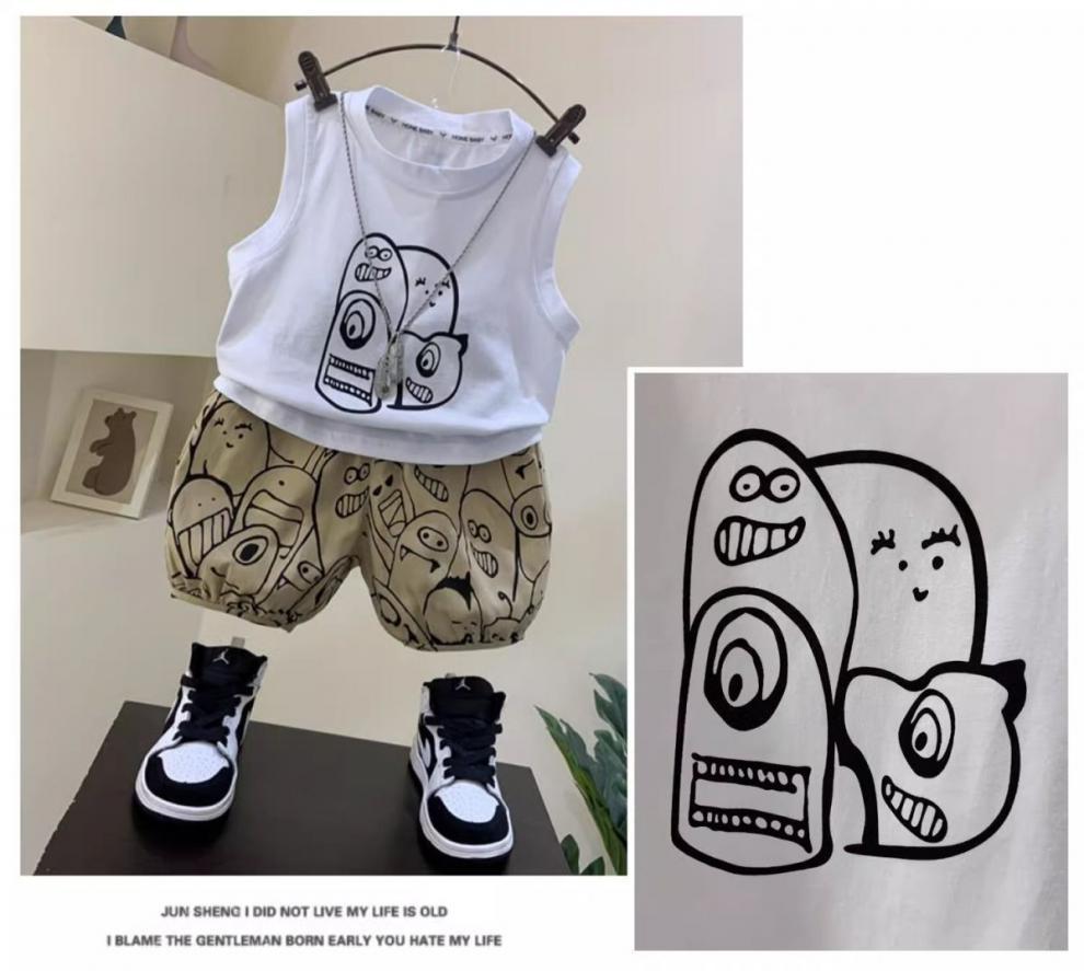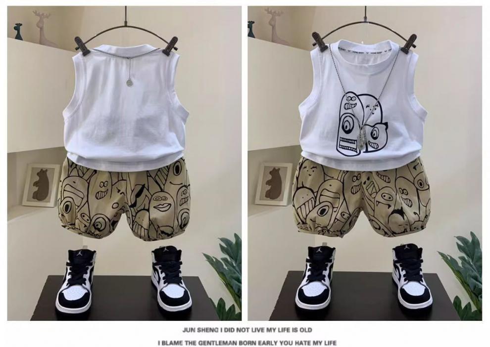 2024 새로운 여름 세트 얇은 풀오버 민소매 조끼 투피스 어린이 여름 아기 유행 옷스토어 가기