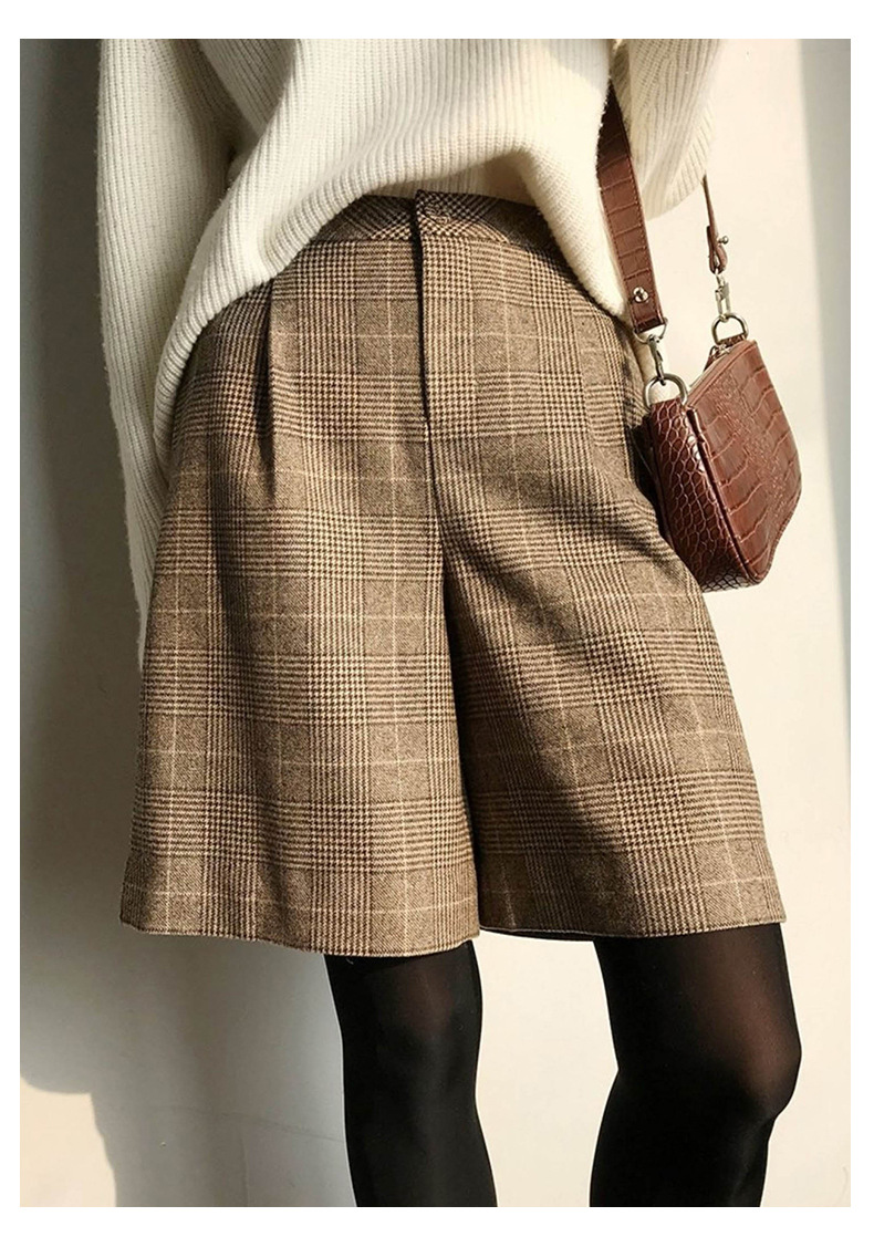 고급스러운 울 체크무늬 정장 커피색 캐주얼 팬츠 여성용 가을 겨울 신상 2025 레트로 다용도 반바지