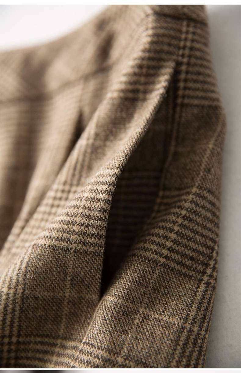 고급스러운 울 체크무늬 정장 커피색 캐주얼 팬츠 여성용 가을 겨울 신상 2025 레트로 다용도 반바지스토어 가기