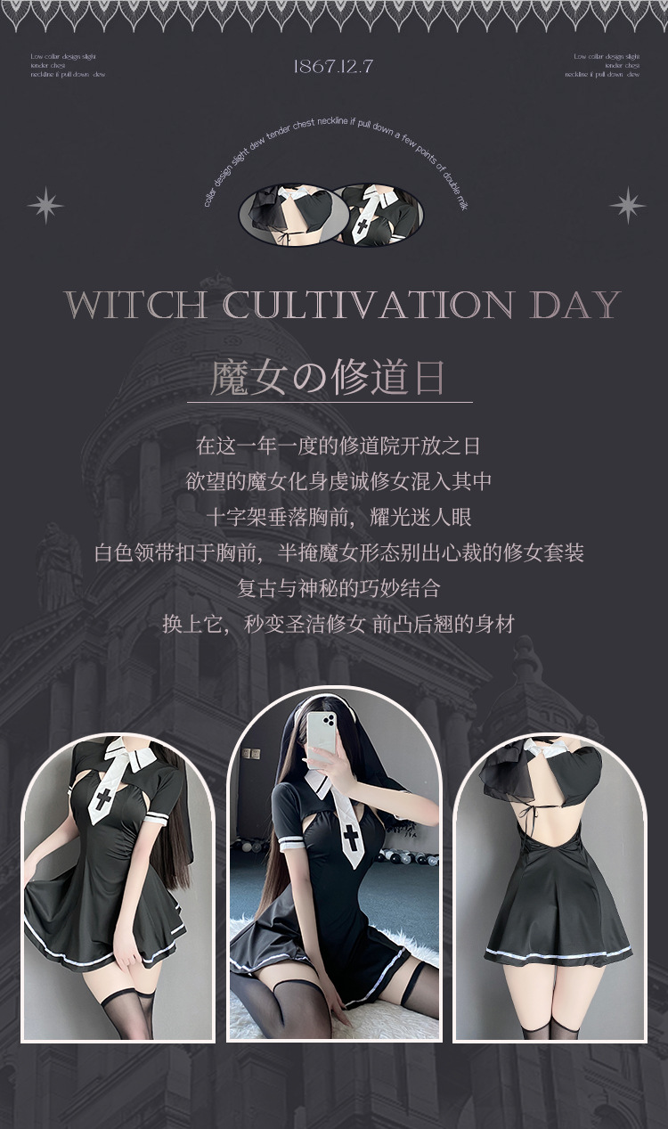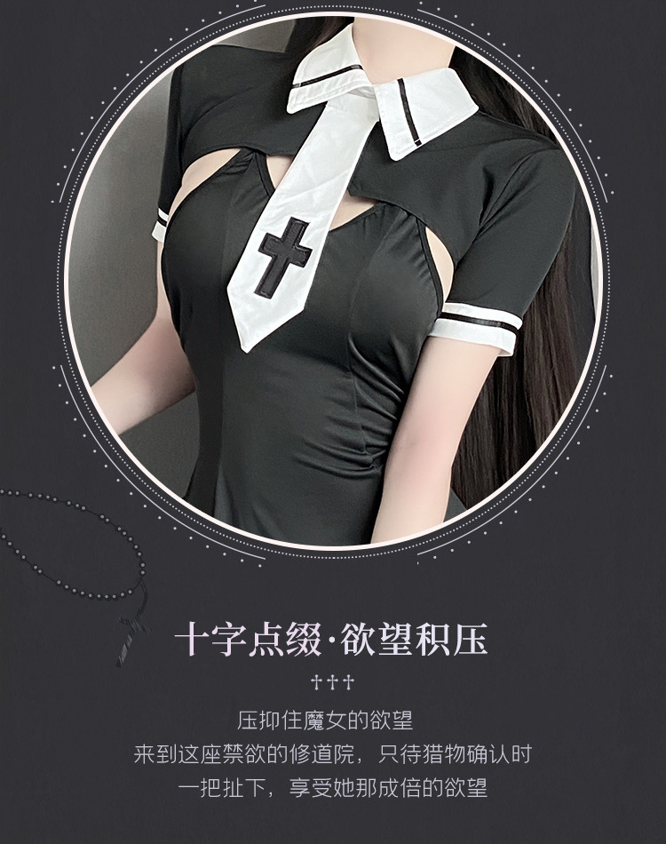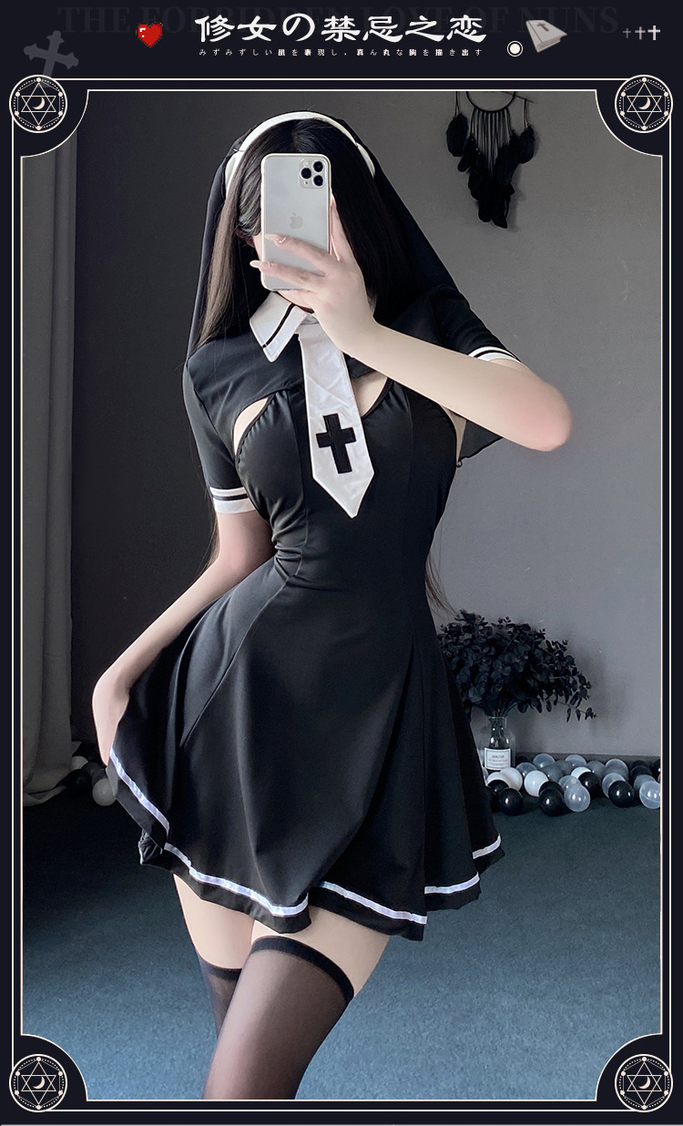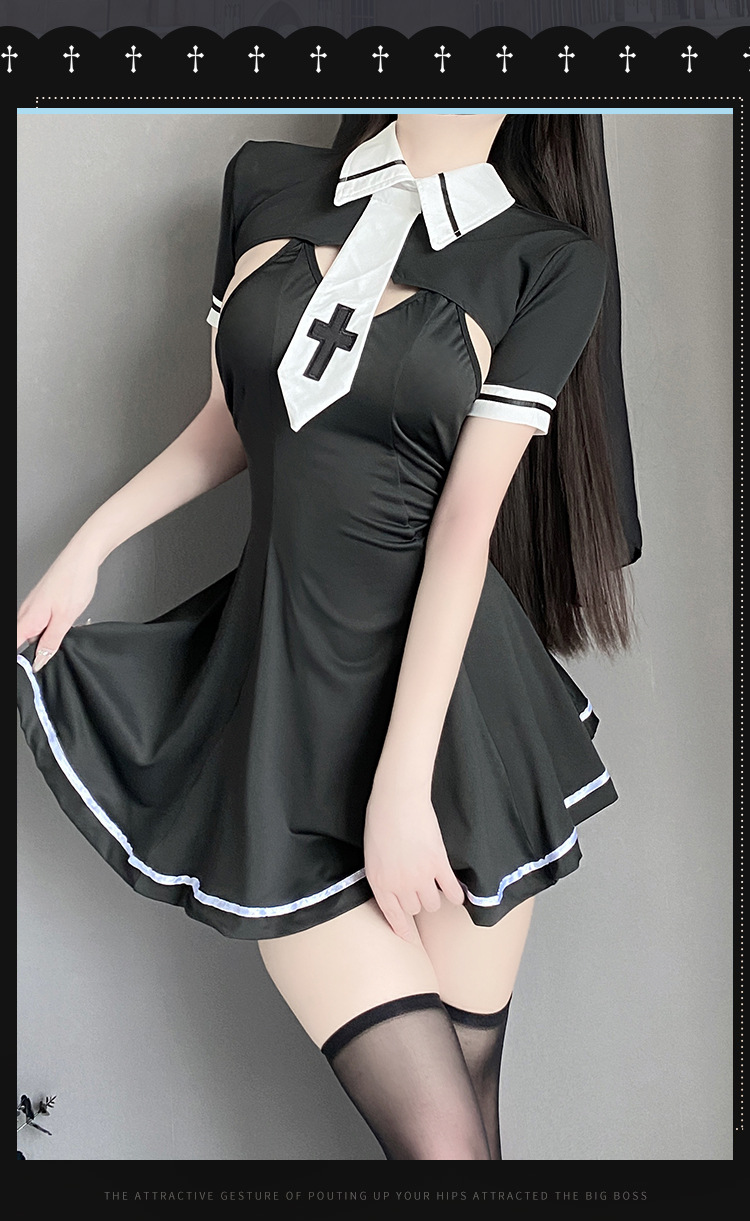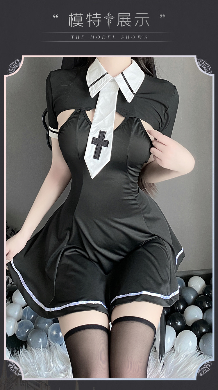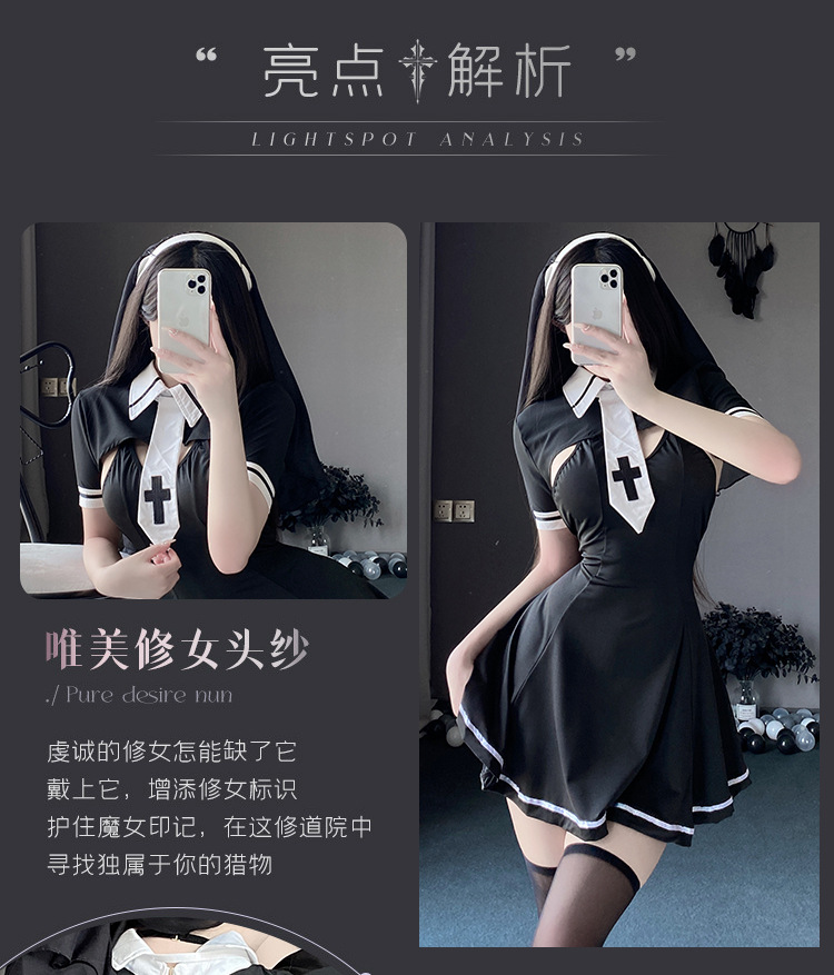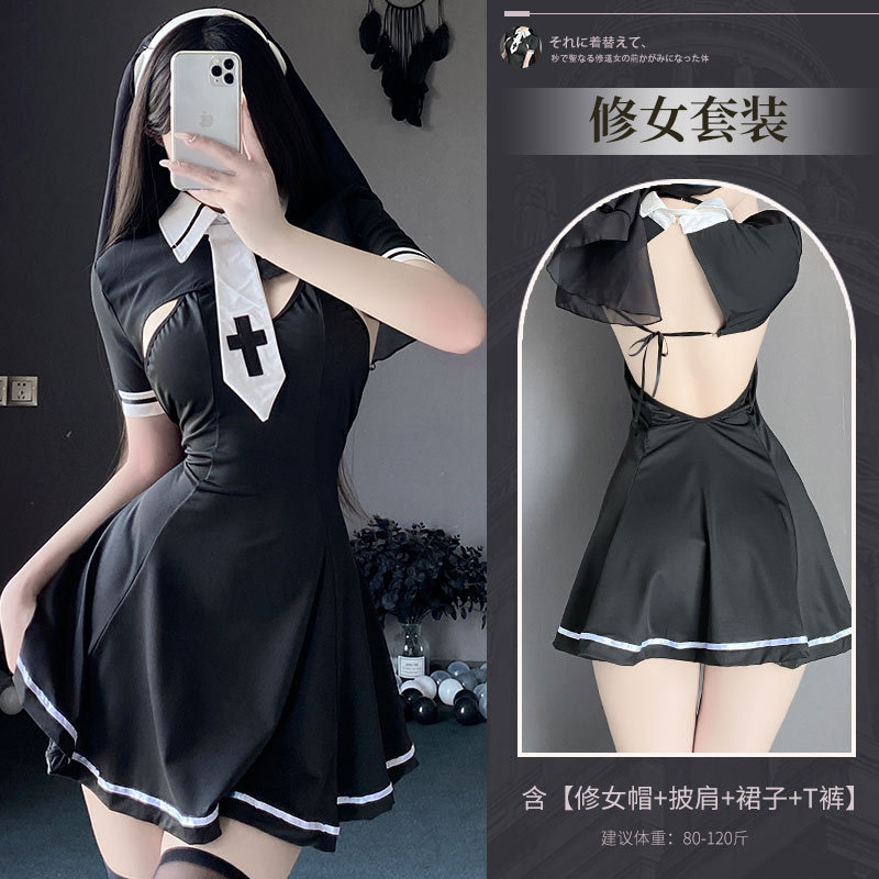 섹시한 란제리, 탈착 불가, 순수한 욕망, 수녀복 유혹, 작은 가슴 잠옷 세트 2750스토어 가기