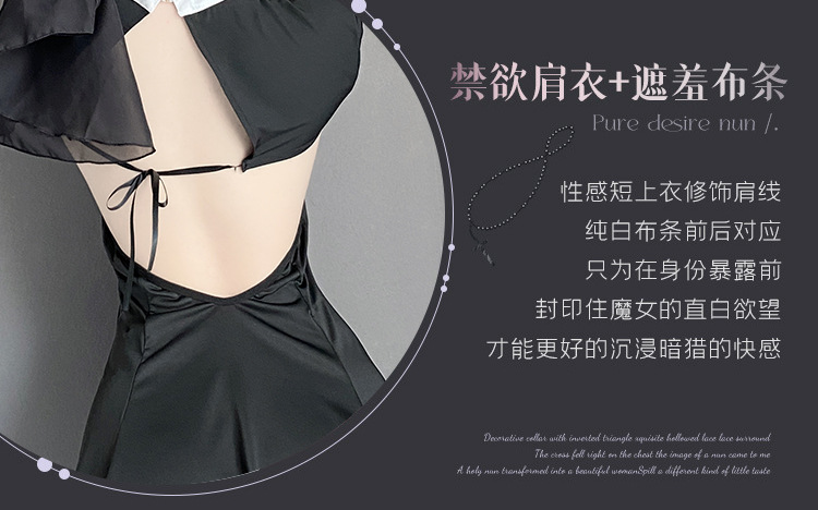 섹시한 란제리, 탈착 불가, 순수한 욕망, 수녀복 유혹, 작은 가슴 잠옷 세트 2750