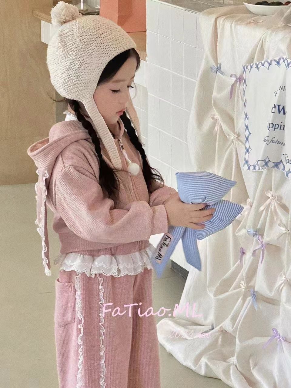 소녀 세트 봄 2024 새로운 어린이 유행 소녀 아기 봄과 가을 코트 바지 투피스 세트스토어 가기