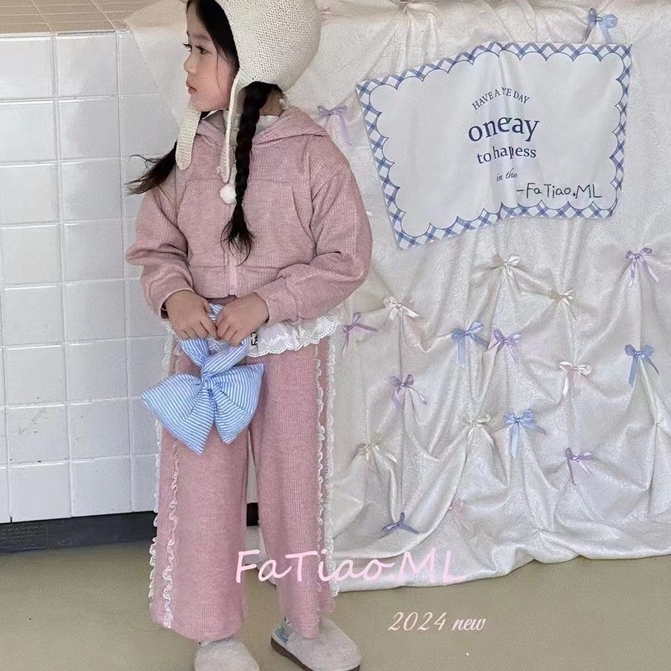 소녀 세트 봄 2024 새로운 어린이 유행 소녀 아기 봄과 가을 코트 바지 투피스 세트