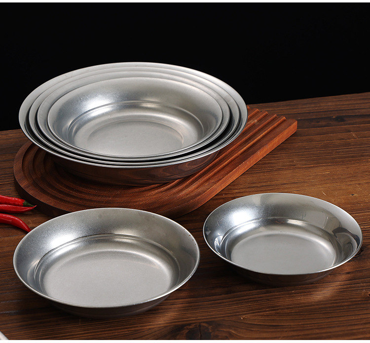 빈티지 오래된 스테인레스 스틸 플레이트 라운드 파스타 플레이트 바베큐 샐러드 스테이크 플레이트 크리에이티브 디저트 스낵 플레이트 디너 플레이트스토어 가기