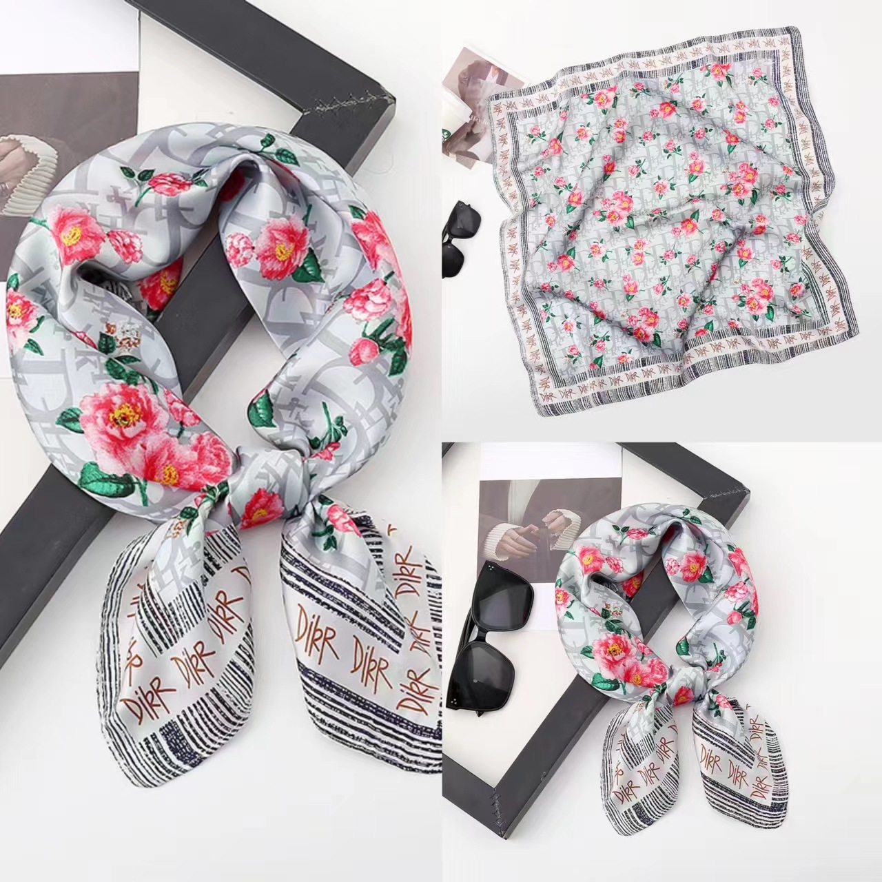 70 작은 광장 스카프 전문 실크 스카프 여성의 봄과 여름 스카프 한국 스타일 흑백 줄무늬 인쇄 스카프