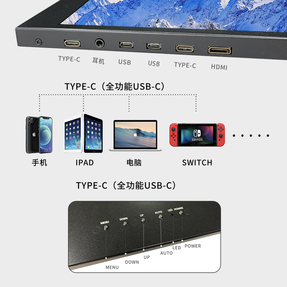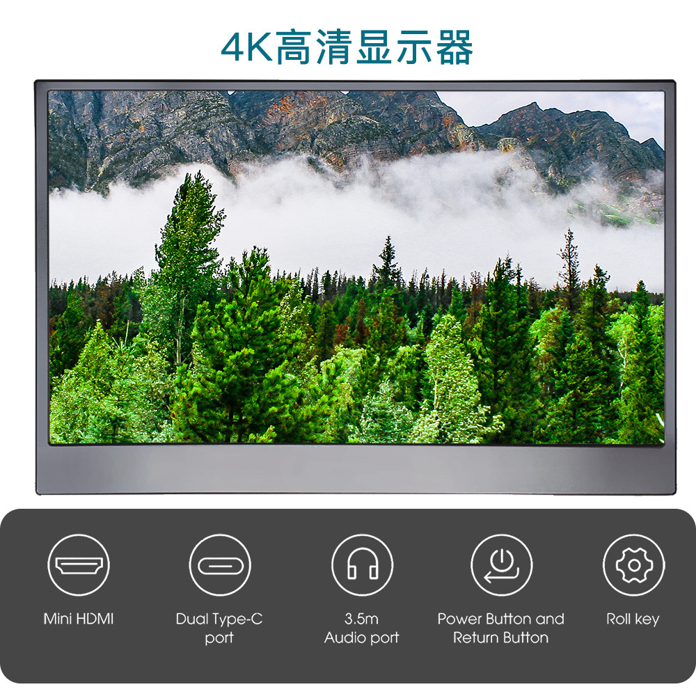 12.5인치 4K 초고화질 휴대용 화면 IPS LCD 디스플레이 외부 컴퓨터 노트북 보조 화면