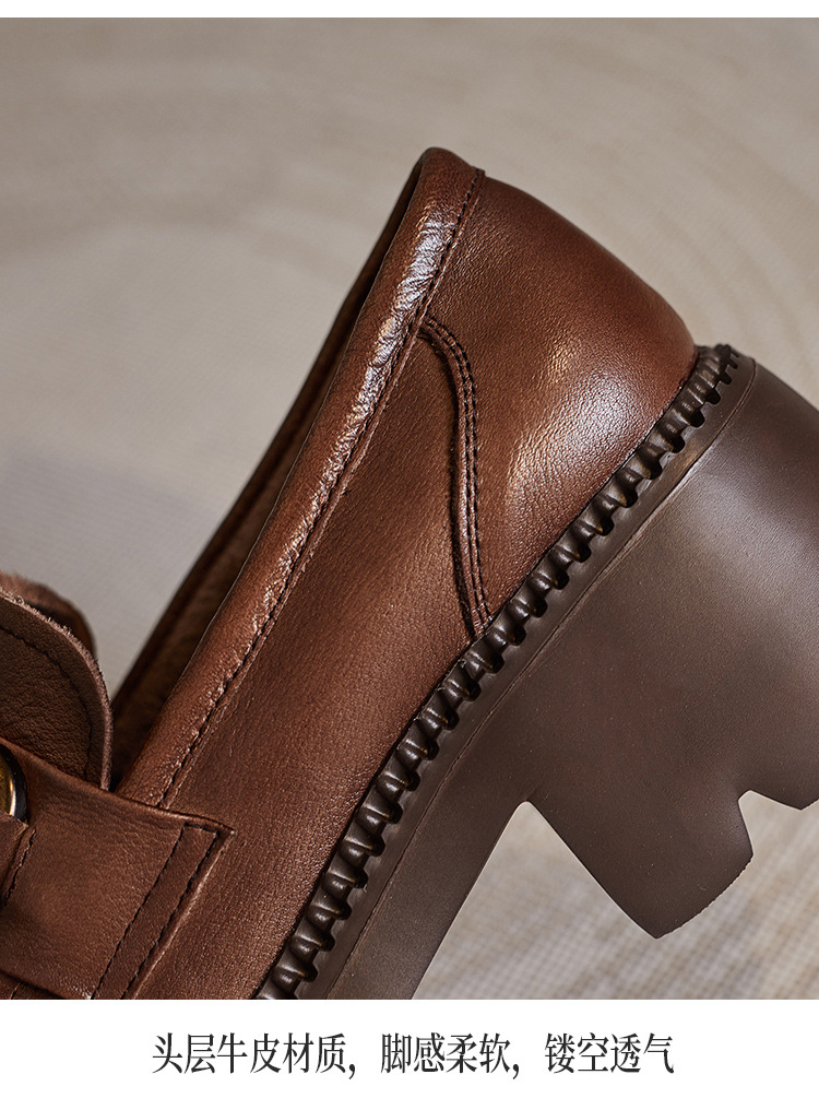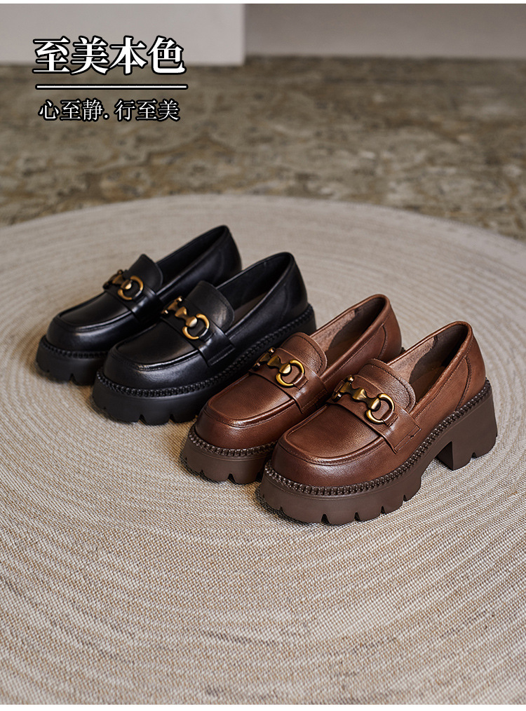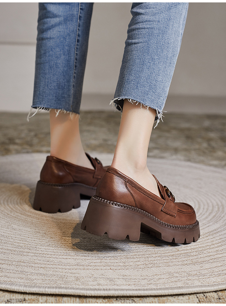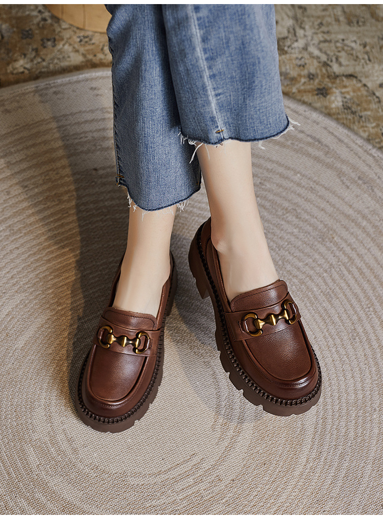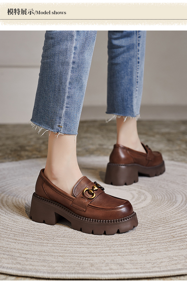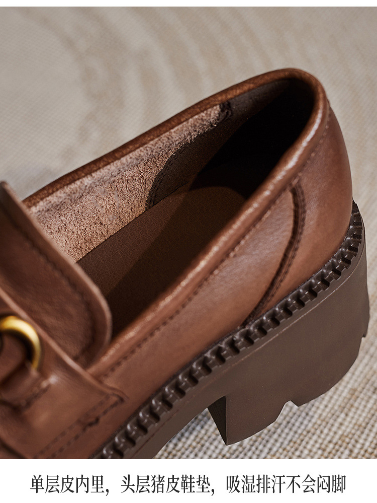 Lefu 신발 여성 영국 스타일 2024 가을 새로운 정품 가죽 두꺼운 단독 여성 신발 소프트 단독 다크 브라운 빈티지 싱글 신발 증가스토어 가기