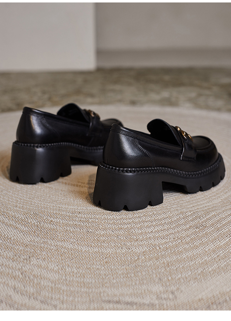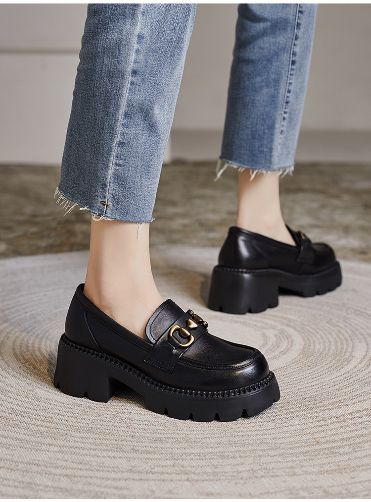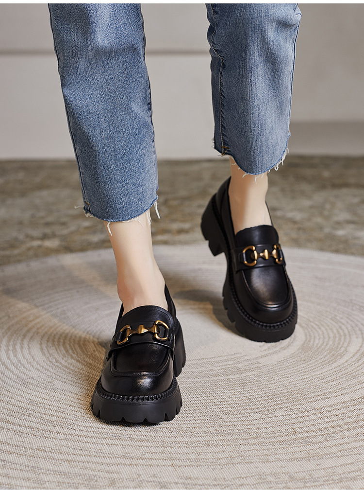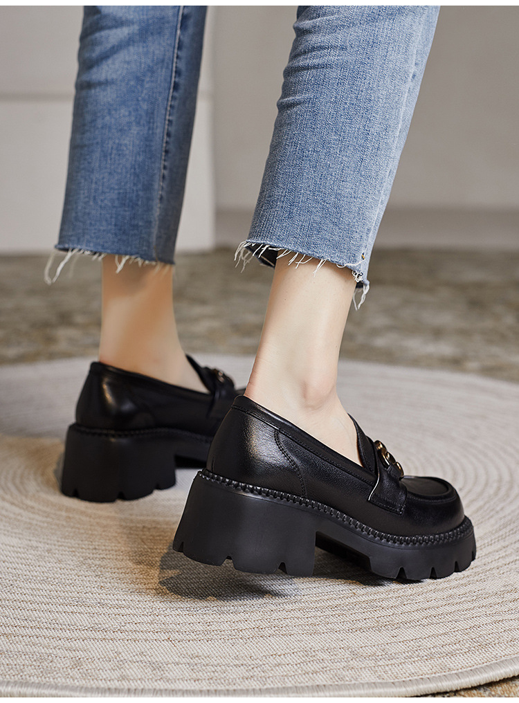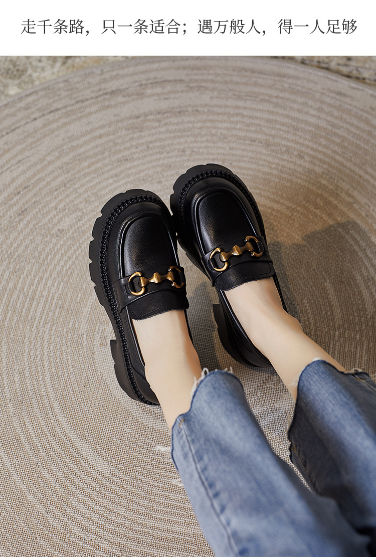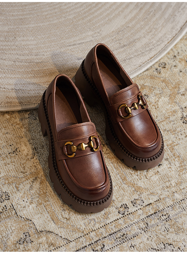 Lefu 신발 여성 영국 스타일 2024 가을 새로운 정품 가죽 두꺼운 단독 여성 신발 소프트 단독 다크 브라운 빈티지 싱글 신발 증가스토어 가기
