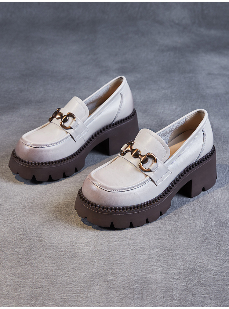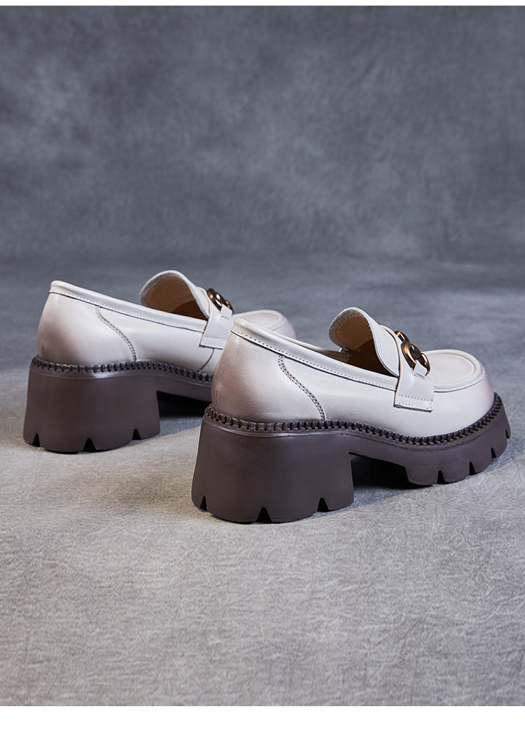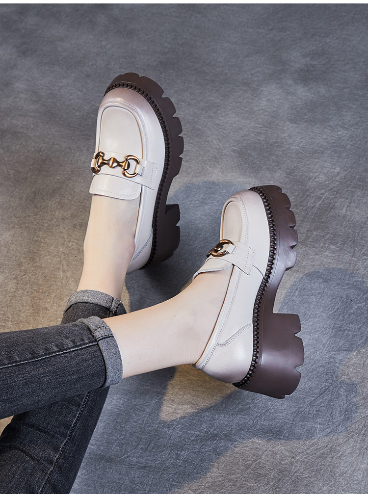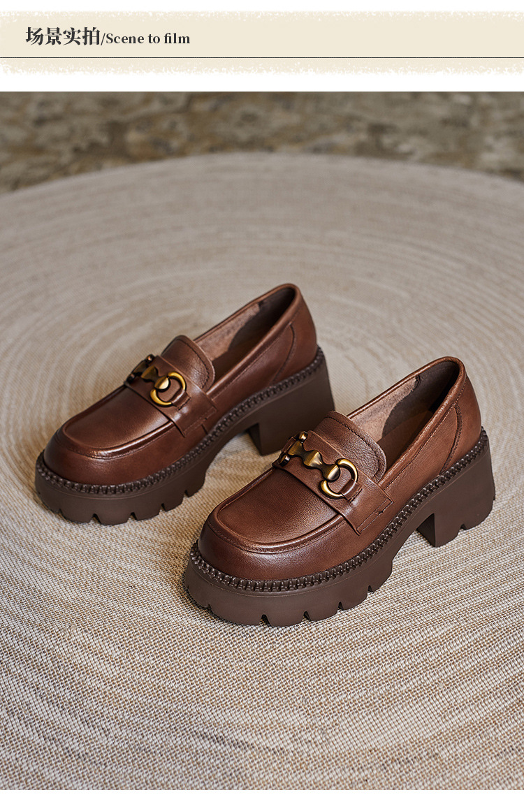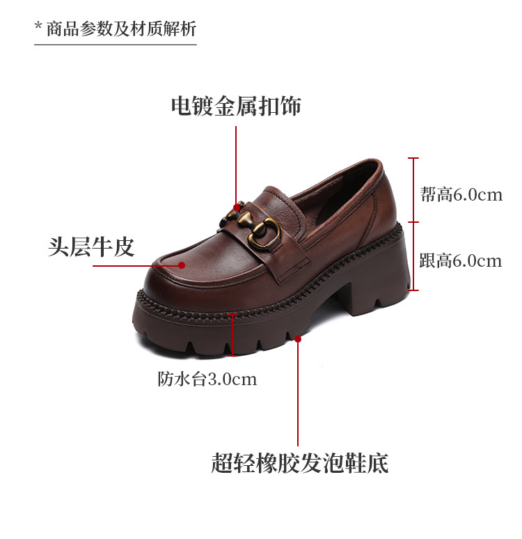 Lefu 신발 여성 영국 스타일 2024 가을 새로운 정품 가죽 두꺼운 단독 여성 신발 소프트 단독 다크 브라운 빈티지 싱글 신발 증가